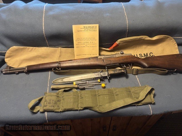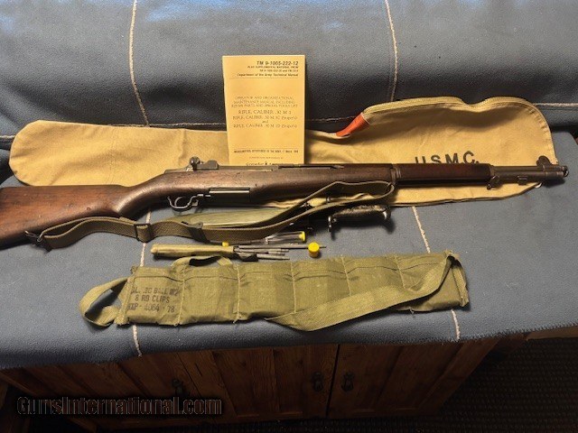 Description: 6 Diget Serial Number on Receiver, SA January 1942, Barrel SA January 1942. All original SA components. Stock is an original with the SA Cartouche. Stock is very good no cracks or large gouges. See pictures. Excellent condition for age thruout. Bore is very good. Comes with USMC Carry Case,Sling, Bayonet w/Scabbard, Butt Stock cleaning kit w/oil bottle & grease pot, M1 Garand Tech manual and 1 (one), Military surplus Bandoleer with 6 enbloc clips in original cardboard sleeves and 48 rounds of M1 ammo. Ammo must ship seperate. I am 81, US Army Veteran and my MOS was Group Armorer (gunsmith) and can assure you this is one you want for your collection. See my other listings on this site. Shipping is $80. Payment by USPS Money Order, Cashier's Check, VENMO or ZELLE. NO CALIFORNIA SHIPPING ! SOLD Curio/Relic: Yes Rifle Caliber: .30-06 Springfield Manufacturer: SPRINGFIELD Model: M1 GARAND Condition: VERY GOOD Metal Condition: VERY GOOD Wood Condition: VERY GOOD Bore Condition: VERY GOOD Action: SEMI-AUTO Manufacture Date: 1942