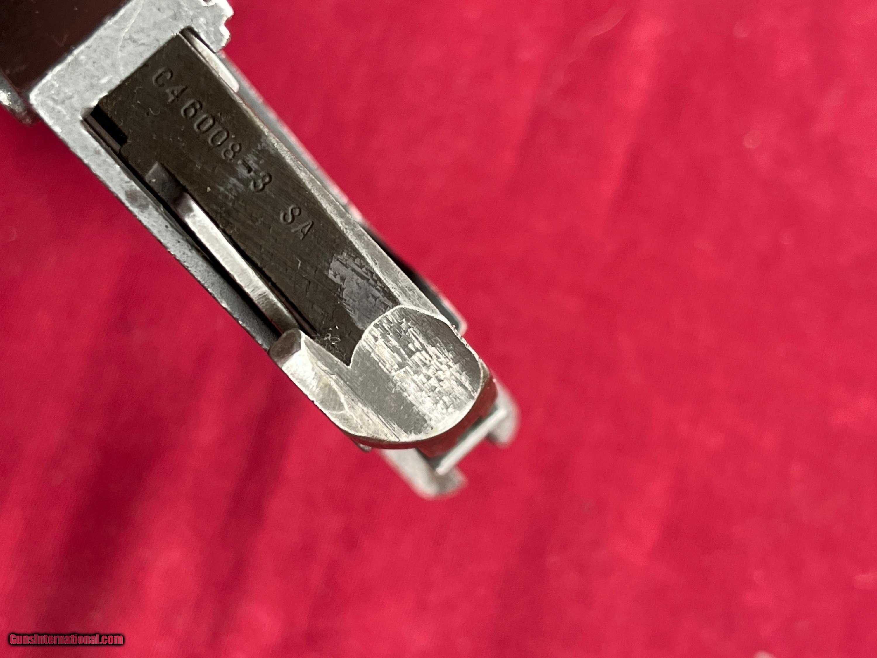 Description: SPRINGFIELD ARMORY M1 GARAND RIFLE . SER# 1118686 MADE 1942. CALIBER 30-06 , GOOD ORIGINAL FINISH , SA PARTS. STOCK SHOWS A VERY FAINT SA CROSS CANNON CATOUCHE. BORE SHOWS LIGHT FROSTY PITTING THROUGHOUT . MUZZLE GAUGES A 4+ , THROAT GAUGES 3.75. EASTERN BRANCH FIREARMS ADD 50.00 SHIPPING – NEXT DAY AIR SHIPPING ADD 50.00 SHIPPING – LONG GUNS GROUND OPTIONAL INSURANCE IS AVAILABLE AT 1.25 PER 100.00 Questions e-mail or call Glen at Eastern Branch Firearms 207-215-5021 TERMS – PLEASE READ BEFORE I DO NOT HAVE A LAYAWAY OPTION ( WE ACCEPT CREDIT CARDS ) -- I GET ALOT OF REQUEST FOR TRADES, I WOULD PERFER NOT TO DO TRADES ON MY INTERNET LISTINGS PAYMENT OPTIONS- We accept money orders, cashier’s checks , bank checks. sorry no personal checks. We accept all major credit cards please add 3% to the ’s cash discount price.(Shipping within the state of Florida - Florida Residents must pay sales tax) .Handguns and long guns do need to be shipped separate. PLEASE do not send payment via FED EX . USPS & UPS are fine. Thank you. We include a signed copy of our FFL with each firearm shipped. SAFTY NOTICE- Buyer is solely responsible for determining that a used gun is safe to shoot. The firearms offered have not been test fired but have been given a visual inspection only for purposes. It is a requirement that every used firearm is inspected by a qualified gunsmith before firing. By , the buyer agrees to hold seller harmless against damages, injury, or death caused by defective merchandise. RETURN POLICY- All firearms come with a 3-day non firing , non messing with ( turning srews ,taking apart,removing parts, scoping. firing, cleaning or messing with in anyway) inspection/return privilege.Inspection is based on a visual review of the gun to confirm the gun is in the condition stated. In the case of a return, buyer pays all shipping charges & if paid for with a credit card buyer absorbs the 3% credit card charges . So please ask questions BEFORE you bid. Thanks for Looking and Good Luck!! U.S. sales only, no exports…this includes antiques. I will ship to third party for exporting SOLD Curio/Relic: Yes |