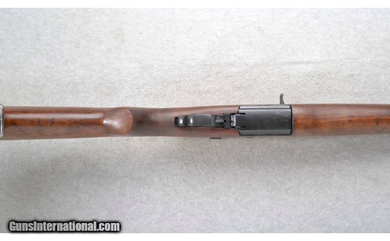 Description: This Springfield Armory U.S. Model M1 Garand is a right hand semi-auto rifle in .30-06 Sprg. Cal. It has a 24 inch barrel. A blade front sight and an adjustable aperture rear sight. The butt stock is a smooth grip hardwood pistol grip. The forearm is a smooth grip two piece hardwood. Serial Number 1134009 (1942). Barrel is stamped 1-S-A-11-44. .30-06 Springfield SOLD Curio/Relic: Yes Chambers: 8 round internal magazine. Metal Condition: Good. Appears coated. Wood Condition: Good. Many handling marks. Appears coated. Bore Condition: Good. Barrels: 24 inch. Stock Dimensions: LOP 13 inches. Fore End: Smooth grip two piece hardwood. Butt Pad: Checkered steel cap with a trapdoor storage compartment. Weight: 9 lb. 10 oz. Sights: Blade front with protective sides. Adjustable aperture rear. Item Location: Richfield, WI |