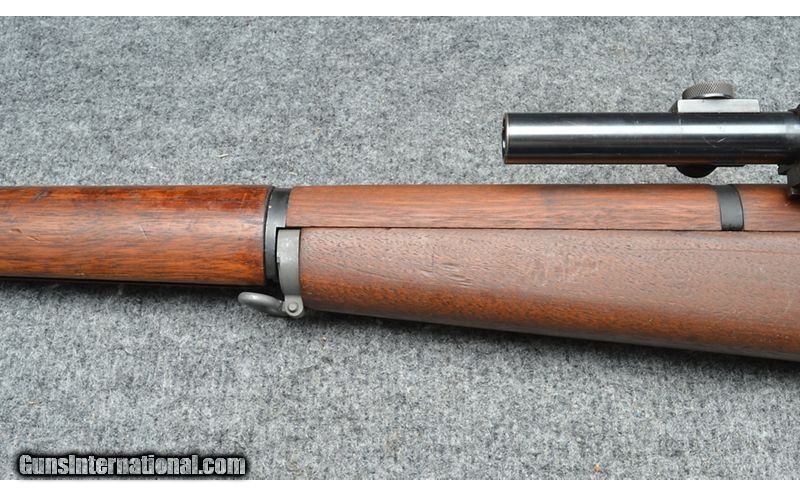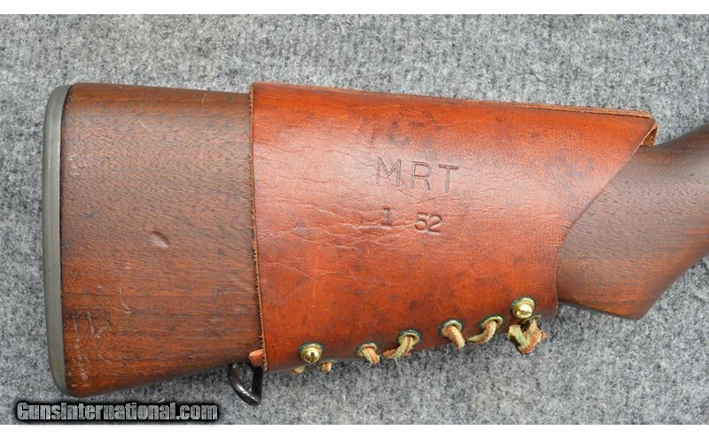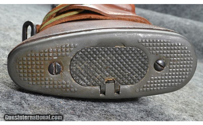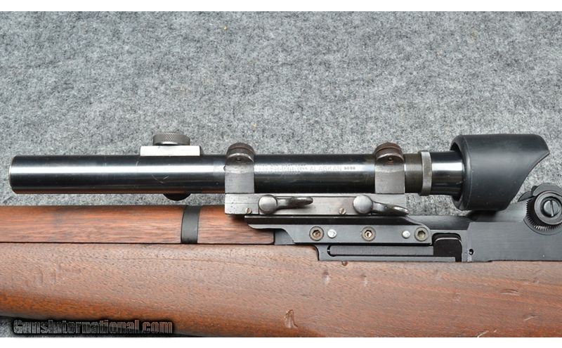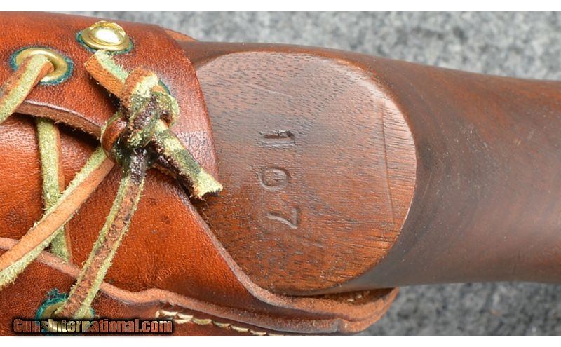 Description: This U.S. Rifle M1 Garand is in, overall, very good condition. This is a rare M1C "Sniper" variant of the rifle. The rifle is a Springfield Armory rebuild lacking any cartouches but does have a "107" on the bottom of the pistol grip. The wood is lightly pocked down the length, the bolt cycles smoothly with a clean bore and strong rifling. Includes a period correct cheek pad. .30-06 Springfield SOLD Curio/Relic: Yes Metal Condition: Very good Wood Condition: Very good Bore Condition: Very good Barrels: 24 Stock Dimensions: 13" LOP Fore End: Smooth two piece hardwood grip. Butt Pad: Checkered steel cap with a trapdoor storage compartment. Weight: 11 pound 8 oz Sights: Wing protected front post with adjustable aperture rear. Lyman Alaskan scope with Griffin and Howe mount. Item Location: Gainesville, VA |