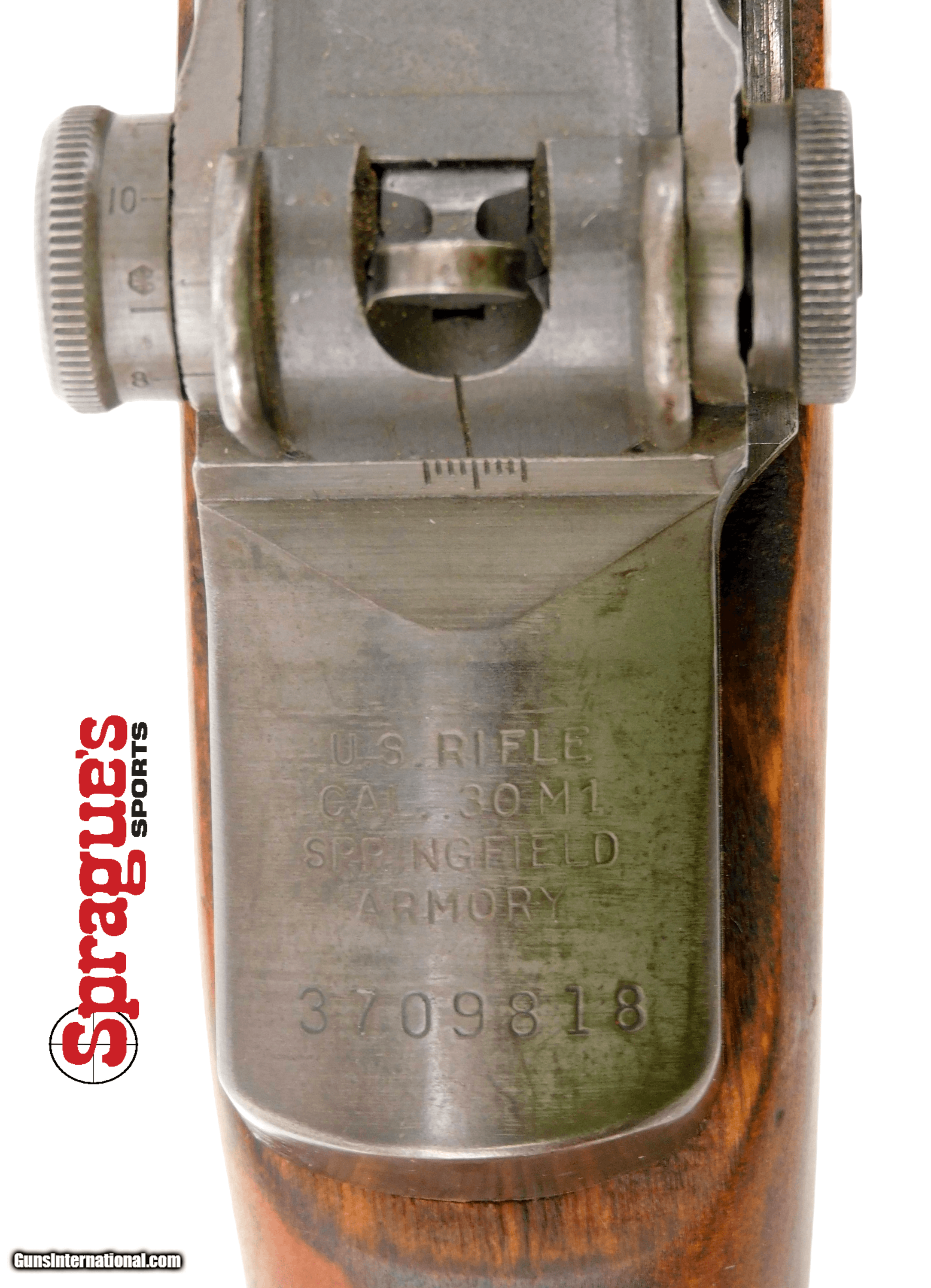 Description: Make: Springfield Armory Model: US Rifle .30 Cal M1 Serial Number: 3709818 Year of Manufacture: 1945 Caliber: .30-06 Springfield Action Type: Semi Auto, En Bloc Clip Fed Markings: There is no import mark. Receiver: “U.S. RIFLE CAL. .30 M1 SPRINGFIELD ARMORY 3709818” Trigger Group: “6628290-SA” Barrel: 1-S-A-4-45 Bolt: “d28287-128SA.” Barrel Length: Approximately 24 Inches Sights / Optics: The front sight is a blade set between two protective wings. The rear sight is a fully adjustable aperture sight set between two protective wings. The windage knob is marked “LEFT arrow” twice. Stock Configuration & Condition: The hardwood stock has a pistol grip, metal nose caps, stacking loop, two sling loops and a metal buttplate with hinged door for storage in the butt. The buttplate shows scratches, and discoloration. The covers show numerous scrapes, scratches, and compression marks. First cover has a “50” stamped just in front of the action. Most of these marks have been oiled over. The grip stock has been lightly sanded smoothing out but a few moderate handling marks. The cartouche on the left side of the stock is showing 3 stars and eagle in box. The LOP measures 13 inches from the front of the trigger to the back of the buttplate. The stock rates in about Good overall condition. The interior of the grip is marked with a Circle “P” Bore Condition: The grooves are grey and the rifling is deep. There is fouling and intermittent erosion in the grooves and at the muzzle. Overall Condition: This rifle retains about 80% -90% of its metal finish. The top rear of the receiver has some pinprick surface erosion showing through the (rebuild) finish. Mechanics: The action functions correctly. We did not fire this rifle. As with all used firearms, a thorough cleaning may be necessary to meet your maintenance requirements. Box, Paperwork & Accessories: N/A Overall Condition: This rifle retains about 80% -90% of its metal finish. Mechanics: The action functions correctly. We did not fire this rifle. As with all used firearms, a thorough cleaning may be necessary to meet your maintenance requirements. Box, Paperwork & Accessories: N/A ++++++++++++++++++++++++++++++++++++ Add 3% for Credit Card Shipping will be actual cost with insurance +++++++++++++++++++++++++++++++++++ This rifle will be a GREAT addition to your COLLECTION and future outings! In-house pictures are of the item(s) being sold and the item(s) that will be shipped to the buyer! If there are no boxes, documentation, accessories, etc. shown in the pictures or described in the description, they are not included. Any stock pictures will be labeled as such. PRIOR TO PURCHASE!!! We will do our best to answer all questions Monday through Saturday during business hours, but are CLOSED ON SUNDAY. PLEASE ALLOW 7-10 BUSINESS DAYS FOR PROCESSING PRIOR TO BEING SHIPPED ONCE PAYMENT AND FFL INFORMATION HAVE BEEN RECEIVED. Buyers are responsible to ensure that you have fully reviewed the listing before purchase. Buyers are responsible to know and ensure that they are in compliance with local, state, and federal regulations/laws and are of legal age for items purchased. We have not test fired any firearms unless specifically noted in the description. Have a GREAT SAFE HEALTHY day! SOLD |