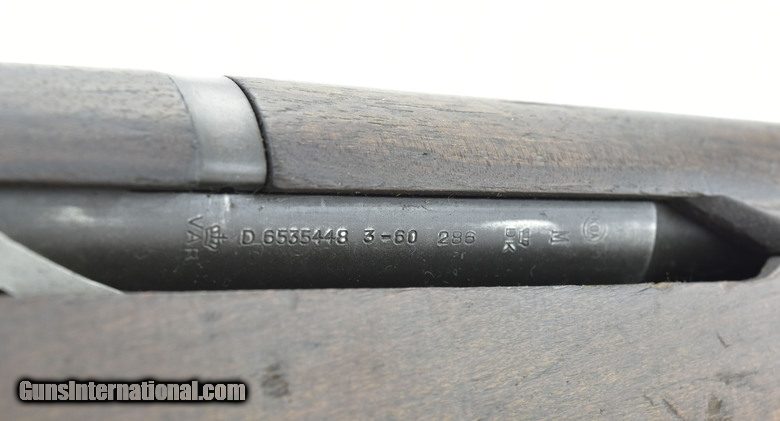 Description: Springfield M1 Garand .30-06 caliber rifle. WWII era, arsenal refurbished post-war. Has a Danish made barrel. Bore has strong rifling with frosting. Good overall condition.