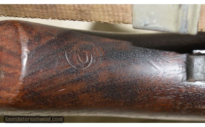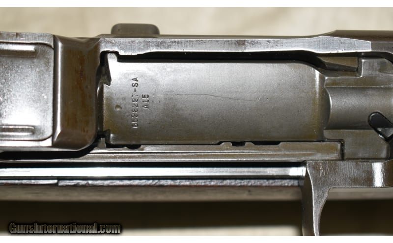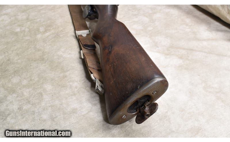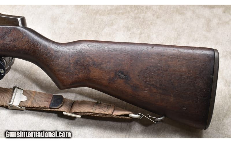 Description: This Garand was manufactured in 1953. It has mostly Springfield parts, but at least the barrel appears to be aftermarket.The stock is in good shape and the cartouches are quite sharp. .30-06 Springfield SOLD Curio/Relic: Yes Chambers: 8 rounds Metal Condition: Very good. A large number of handling marks. Wood Condition: "Good condition. It has a number of scratches, dents, and digs. The wood is quite dark from oil. Bore Condition: A little dark but shiny and good rifling. Barrels: 24-inch Triggers: Factory trigger Stock Dimensions: 13-inch LOP Fore End: Walnut 3/4 length military stock with heat shield. Butt Pad: Steel plate with storage port. Weight: 9 lb - 15 oz Sights: Guarded post and peep military sights. Item Location: Rogers |