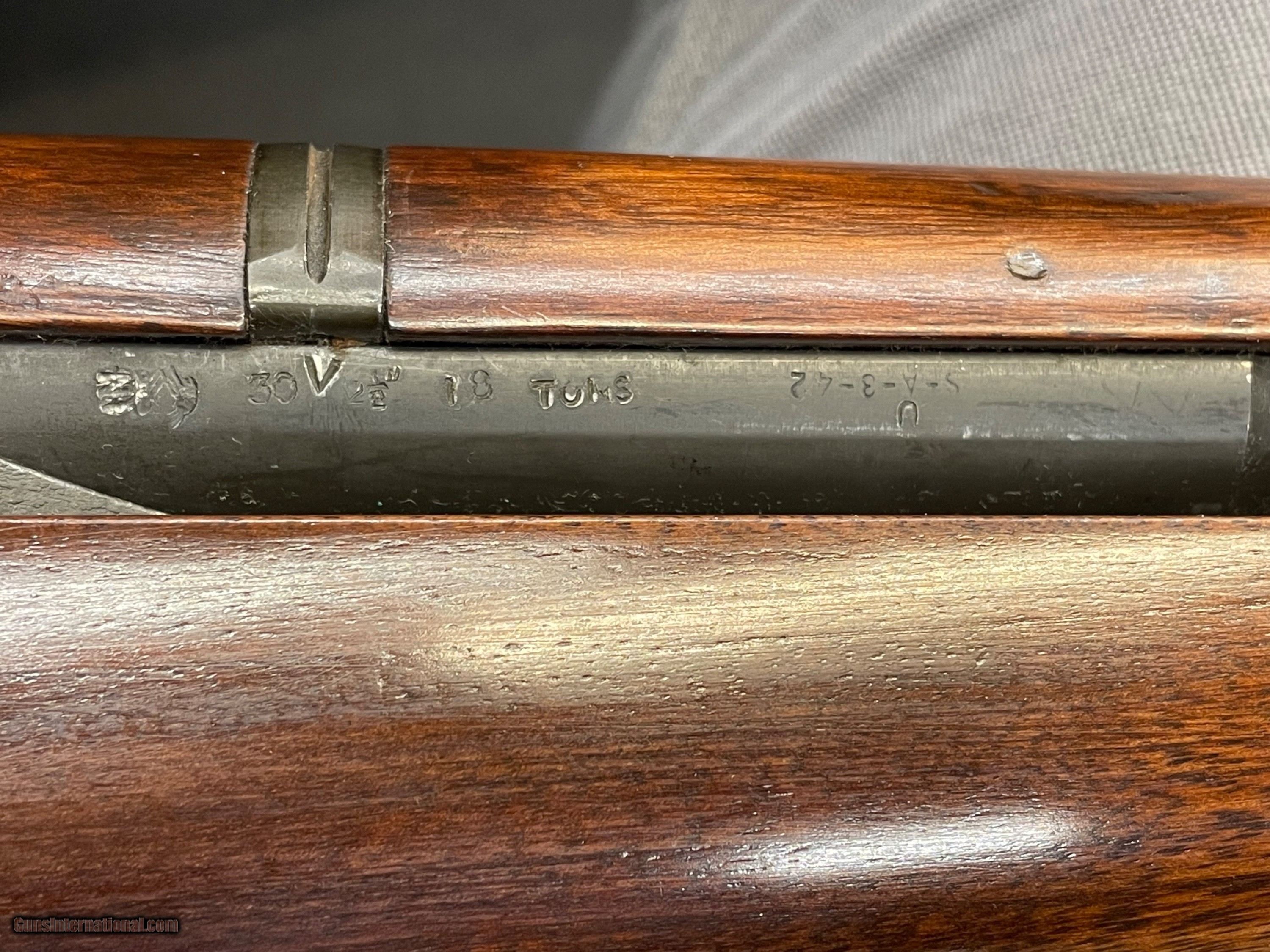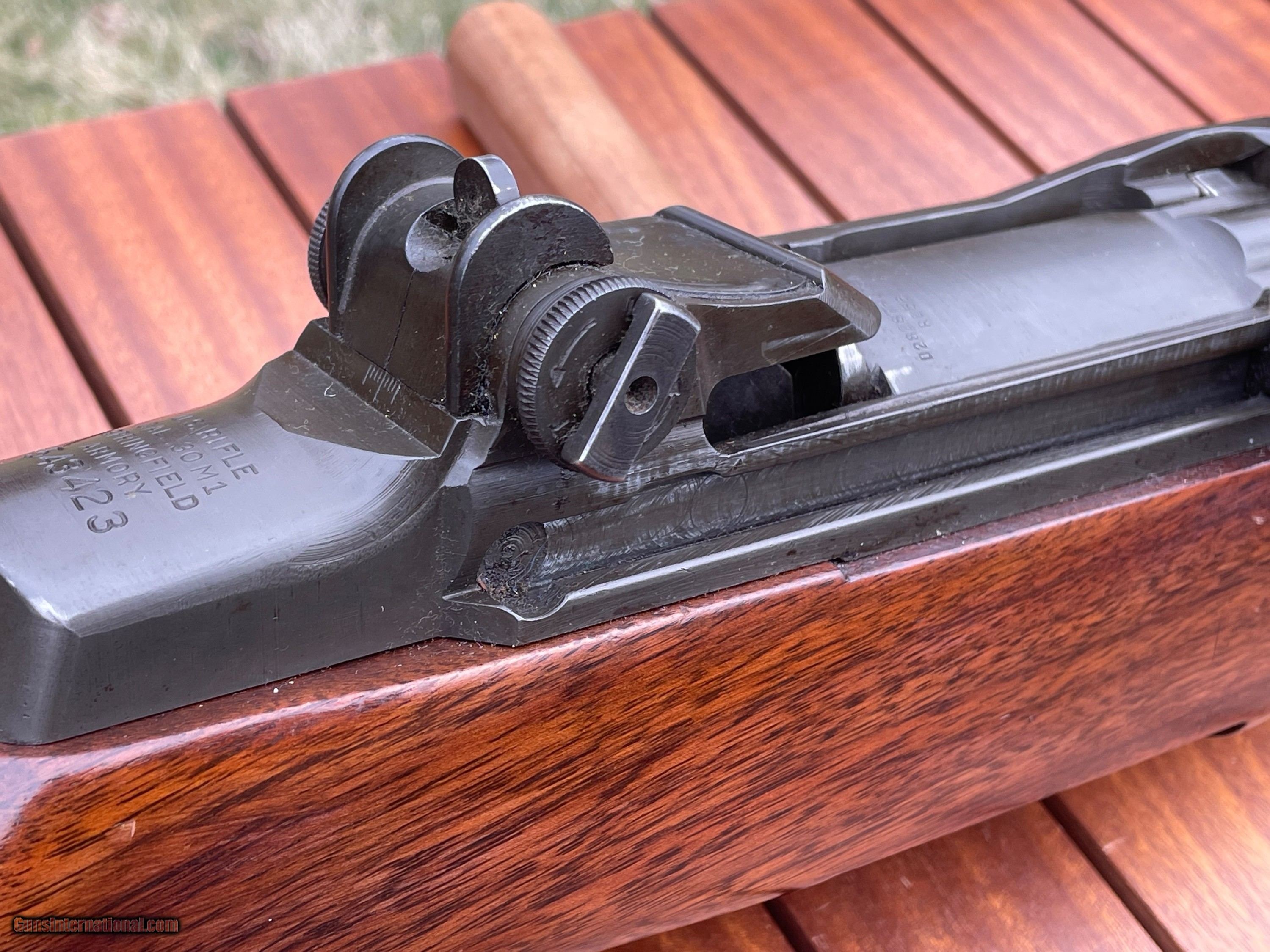 Description: Springfield M1 Garand in 30-06. Excellent condtion! Although the stock appears to have been refinished, the parkerizing on the metal is just about new. S/n 543423. March/April 1942 Bolt markings designate Heat Lot number RE5B D28287-12SA Trigger guard also is marked C-46025-3-SA Barrel stamp S-A-3-42 (March 1942) SA Refering to Springfield Armory will ship to a FFL in well packed box Rifle Caliber: .30-06 Springfield Manufacturer: Springfield Armory Price: $2,500.00 Shipping: $60.00 Contact Seller |