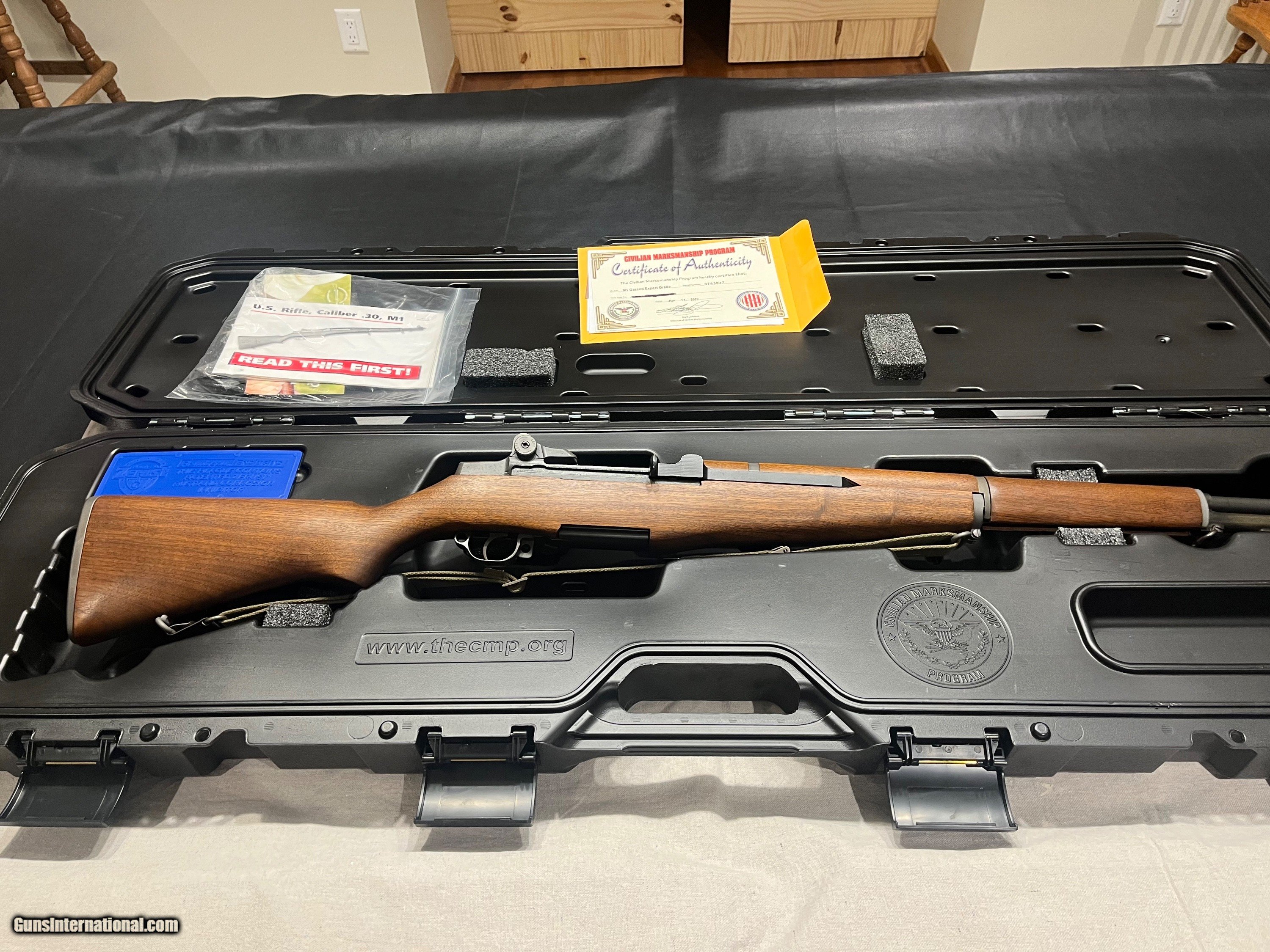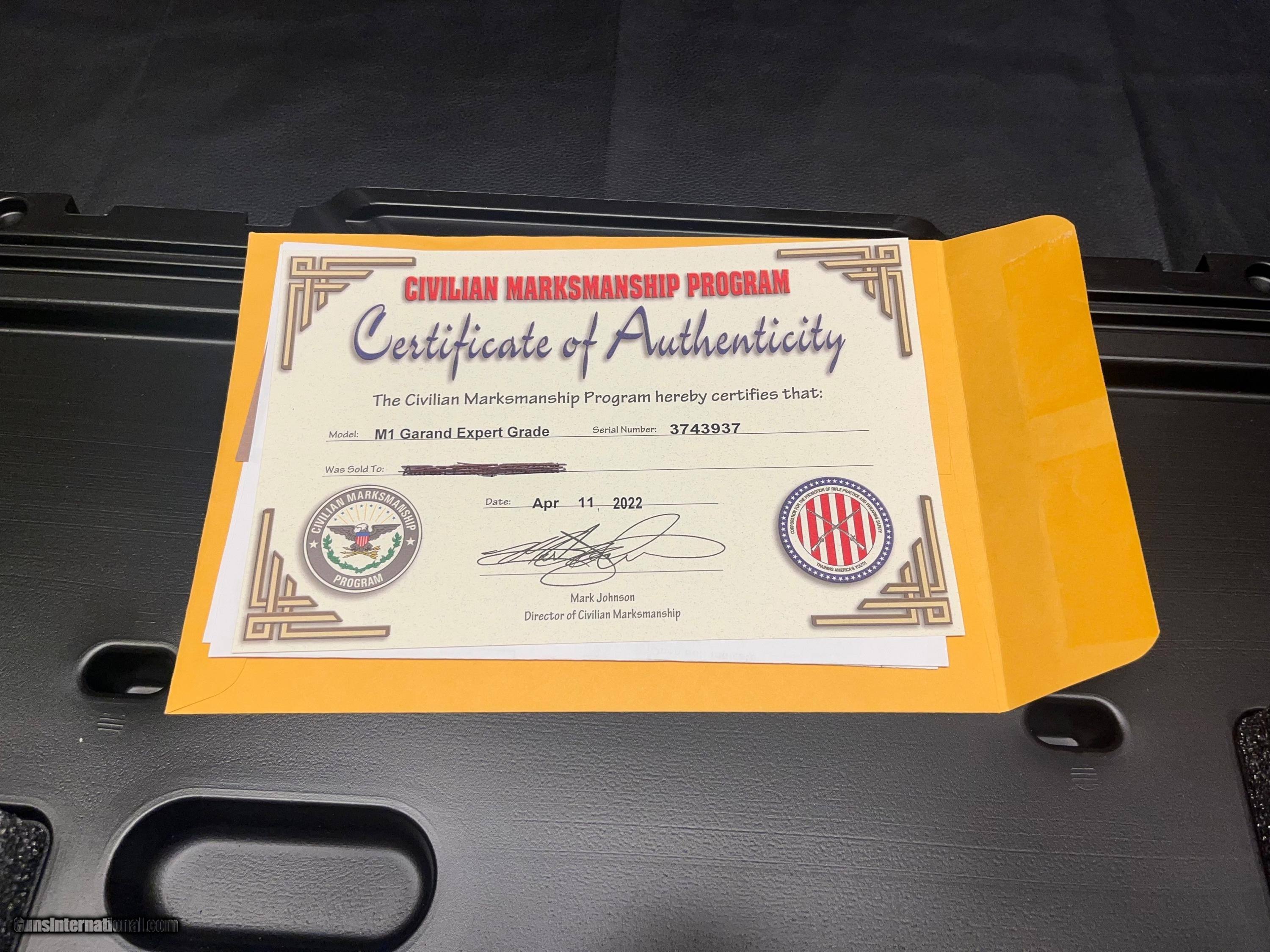 Description: This Springfield M1 Garand serial number dates to Aprill/May, 1945. It was received from The Civilian Marksmanship Program (CMP) and is "Expert Grade" meaning the black walnut stock and the barrel are brand new. The stock has (4) coats of Boiled Linseed Oil finish and is gorgeous. This rifle has only 16 rounds fired through the new barrel and is very accurate. This is a great rifle and example of the M1 Garand. This must be shipped to an FFL dealer. SOLD Curio/Relic: Yes Rifle Caliber: .30-06 Springfield Manufacturer: Springfield M1 Garand Model: M1 Garand Serial Number: 3,743,937 Bore: New Condition: Good Metal Condition: Good Wood Condition: New Bore Condition: New Action: Semi-Auto Stock: New Sights: Factory Case: Yes |