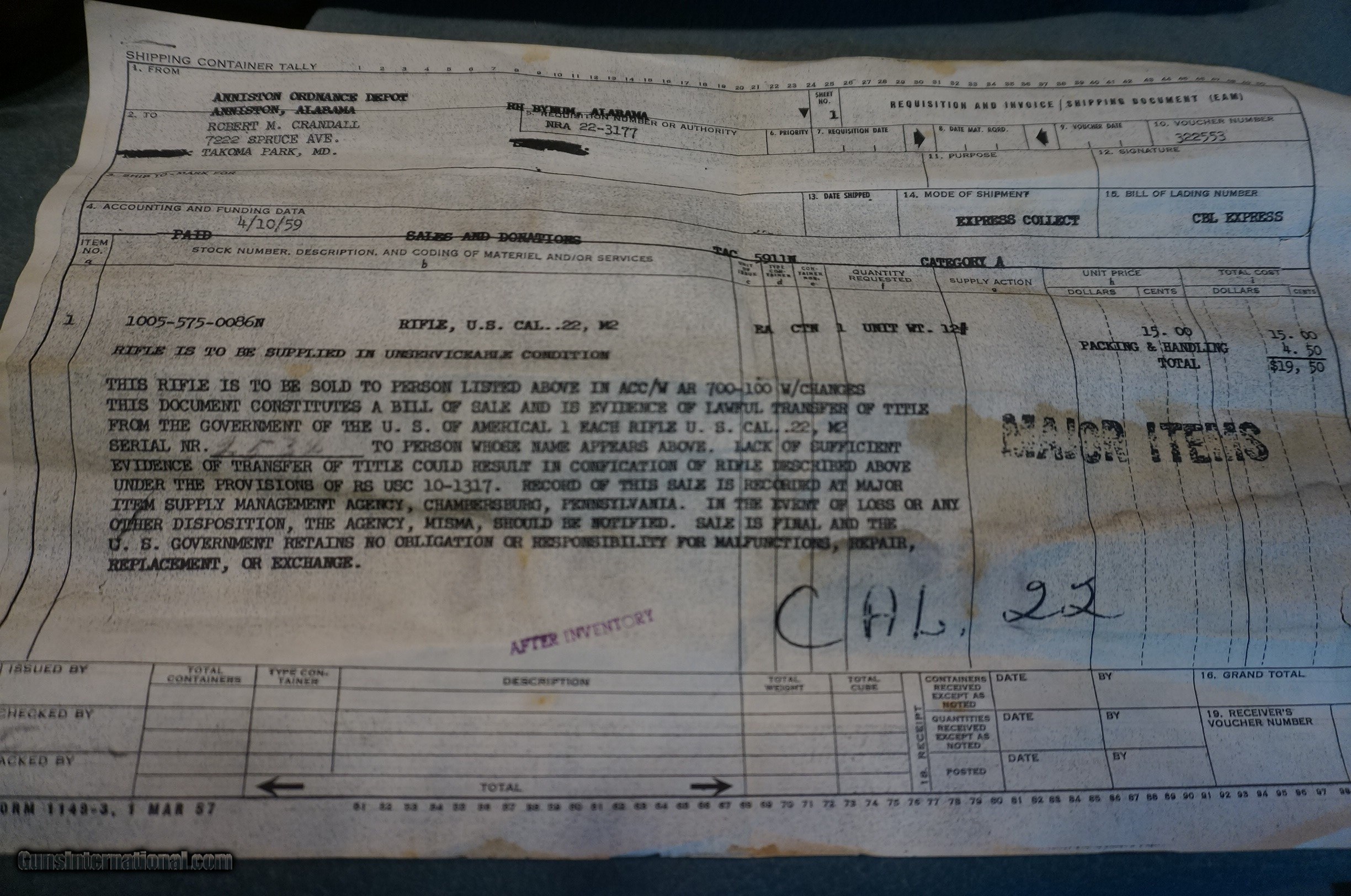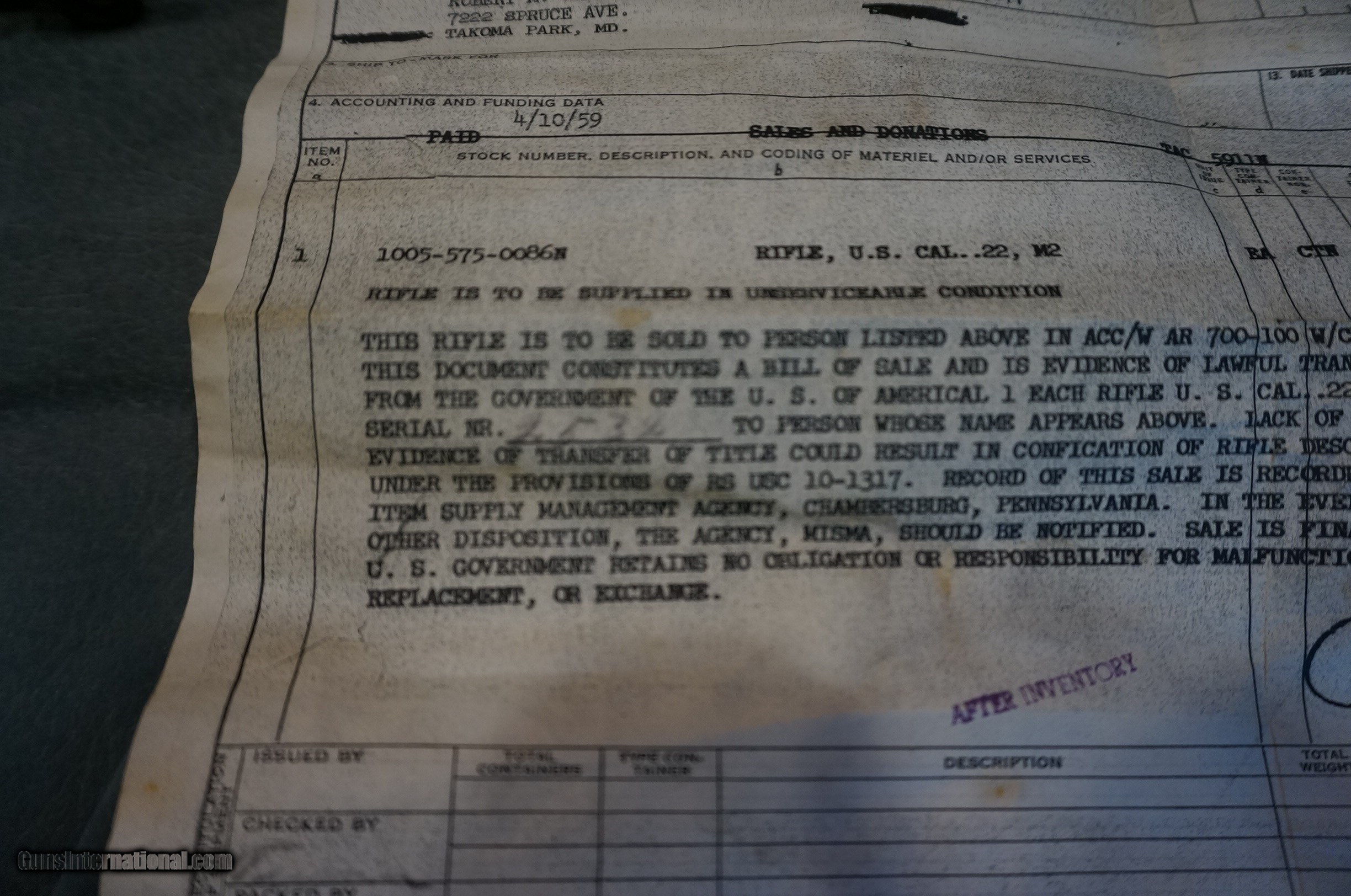 U.S.Springfield Armory 22 M2 22 Long Rifle with Armory receipt and box from 1959!