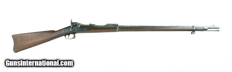 Springfield U.S. Model 1884 Trapdoor .45-70 caliber rifle. U.S. Military rifle. Metal has approximately 65-70% blue with speckling. Bore is excellent. Cartouche is sharp and is dated 1886. Very good overall condition.