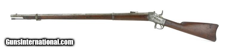 Description: U.S. Model 1871 Springfield Armory Rolling Block .50-70 Rifle. The metal has a gray patina, smooth not rusted. The wood has marks and wear, overall very good. The bore is near excellent, bright with strong rifling. Very faint cartouche on left side of wrist. Good-very good overall condition. SOLD Antique: Yes |