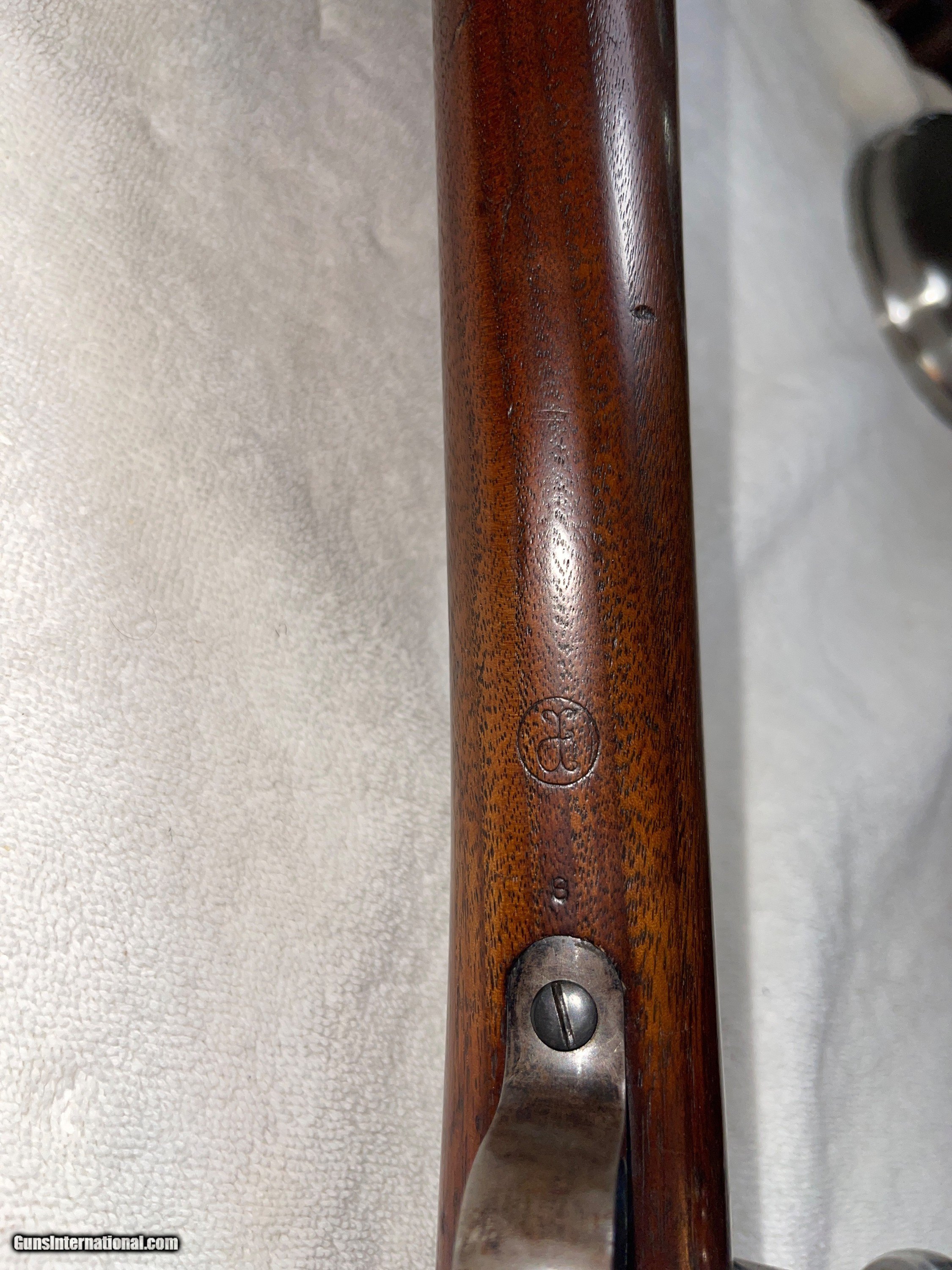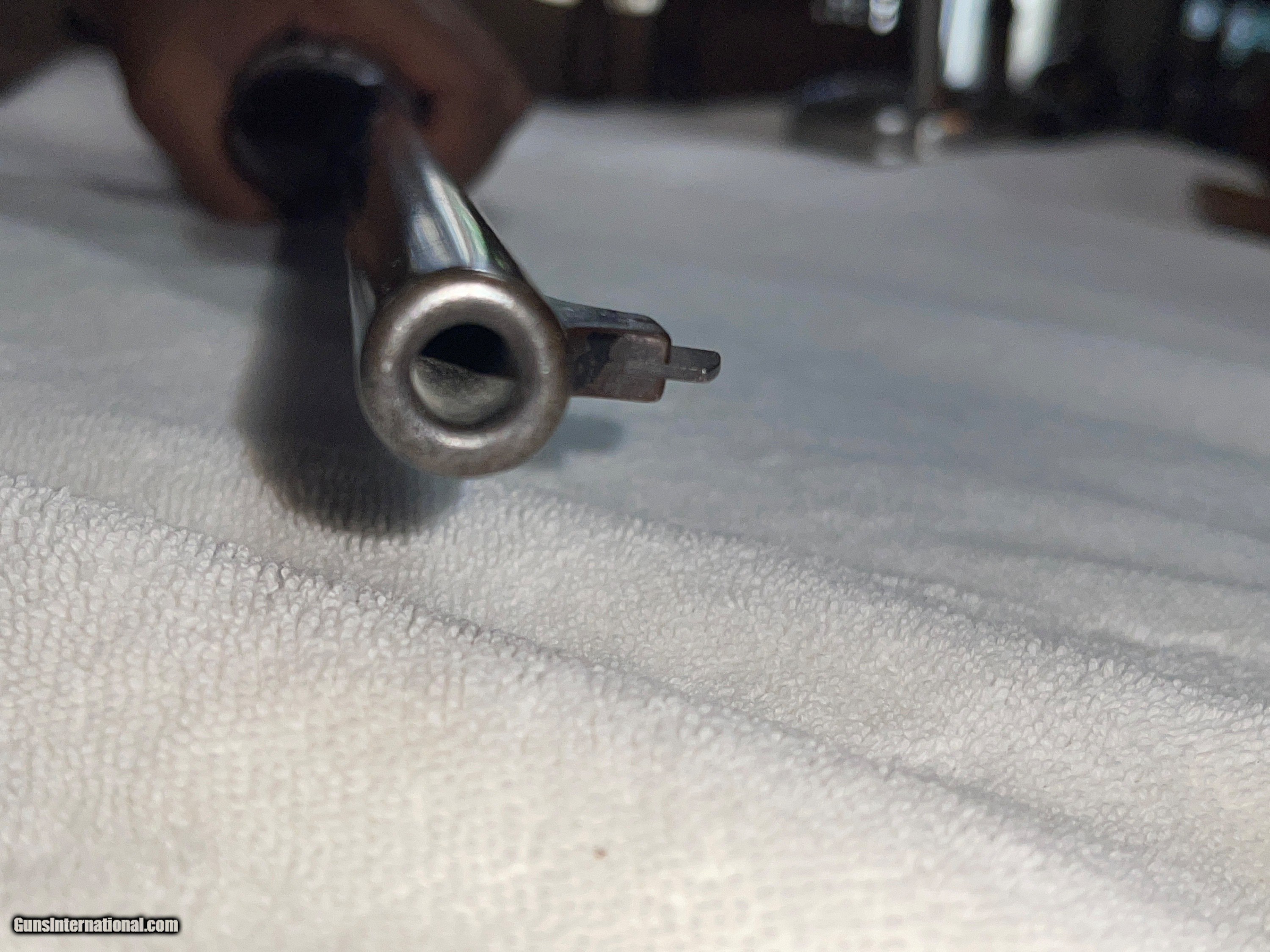 Description: EXTREMELEY RARE U.S. TEST KRAG JORGENSEN CARBINE ONE OF LESS THAN 100 MADE WITH CARBINE WITH PARKHURST STRIPPER CLIP PATENT. Cal.30-40 serial . 280770. Sit down its an unbelievable story. In 1899 a commission was put together to decide whether the "Krag" would benefit from the faster loading of a stripper clip. They set aside only 100 carbines and 100 rifles for the test. They then acquirred a small batch of a stripper clip assemby designed specifically for installing at the rear of the krag magazine. Then they proceeded to make a small nunmber of stripper clips designed for the 30-40 cartridge, and finally installed the parkhurst patent to a small quantity of rifles and carbines a part called the "Parkurst patent device was installed. When the tests were finished it was decided stop the test and move forward with the adoption 1900-03 springfield. Of the 100 test carbines . 90 were destroyed it is estimated that about ten were put on the civilian market. This one of ten.. This minty rarity appears to be unfired. It has retained about 95+% of the original arsenal finnish. The little loss there is seems to be entirely from age fading. There are no rust patches, scratches or blemishes of any type. The wood stock is similiar in condition, almost pristine.. The left side has the "Springfield cartouche" /dated 1900.. On the pistol grip has the inspectors stamp and the "Circle p proof. All parts are original to the gun.** the slide rail, bolt face, follower and feed ramp show little if any use .The bore is quite bright with sharp well defined rifling and some very slight scattered frost. It comes with the patent drawings and the article describing the army tests ???and the reason it was not adopted. This is a rare chance for the very critical collector who who wants a great investment opportunity and an awesome centererpice for his collection . Investment priced....$14,950.*** OBO ** The harmless white crayon is to show that all markings are correct. It is easily removed with lighter fluid and a brush. We will do it on request. *** 100% of the gun's price is satisfaction guaranteed for 5 days after receipt. Curio/Relic: Yes Rifle Caliber: .30-40 Krag Price: $14,950.00 Contact Seller |