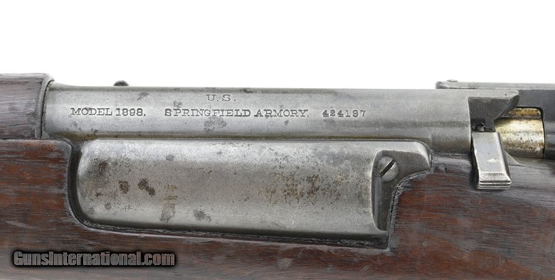 Description: Springfield 1898 .30-40 Krag caliber rifle. U.S. military rifle. Stock has a nice 1902 dated cartouche. Bore has strong rifling with some minor frosting. Very good overall condition.
