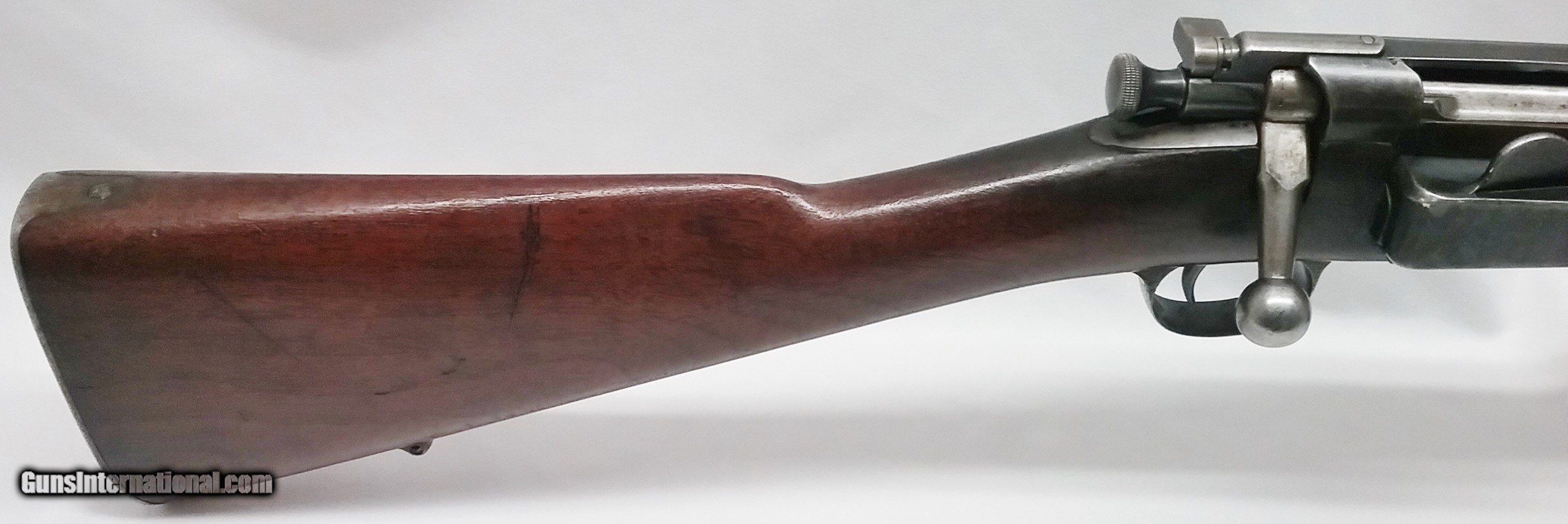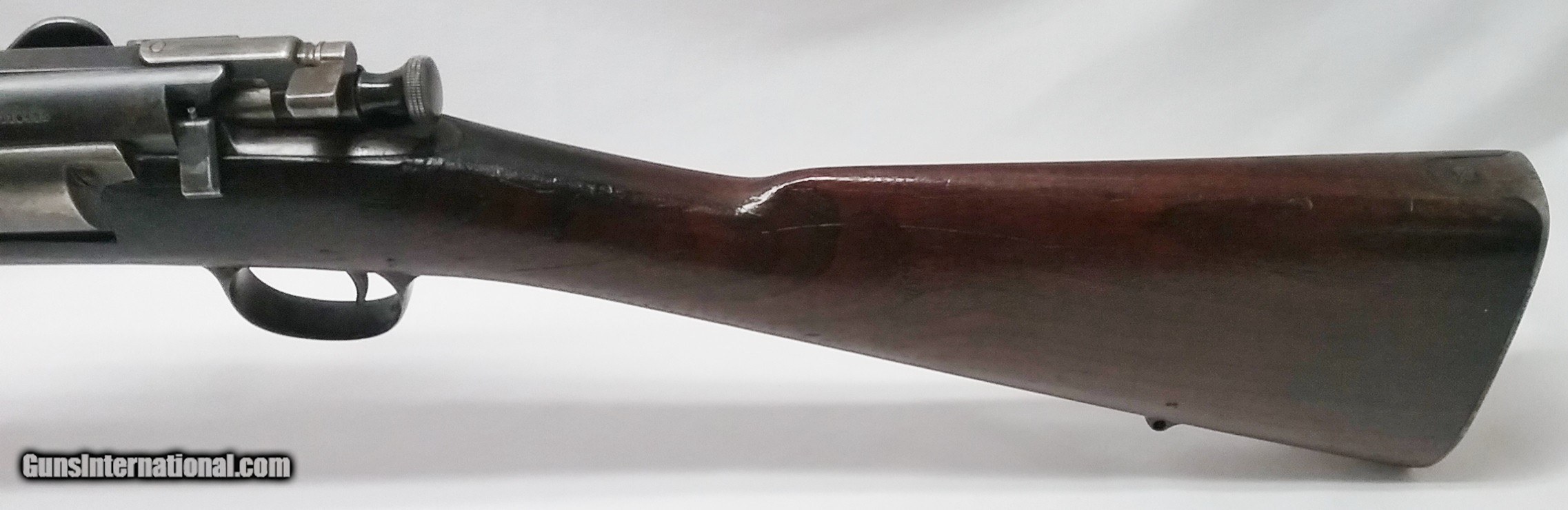 Description: C315 Springfield – 1898 – 30-40 Krag - Stk #C315 This 30-40 Krag Springfield 1898 rifle has a 24” blued tapered round barrel. The metal and finish are in good condition with the exception of sporadic pitting throughout. The bore is in excellent condition with clean sharp rifling. The rifle has an after-market rear sight and front blade. The receiver and trigger guard metal show signs of some finish wear and minor pitting. The Walnut stock is in good condition with the exception of handling and usage marks and features a trap door compartment (empty) for a cleaning kit. The original stock has been sporterized and barrel has been shortened. Length of pull is 13-1/2”, overall length is 43-1/4”, and weight is 7.4 lbs. Our stock number is #C315. Will ship to any FFL in the United States, buyer pays freight and insurance. SOLD Curio/Relic: Yes Rifle Caliber: .30-40 Krag Manufacturer: Springfield Model: 1898 Bore: Rifled Chambers: 1 Ejectors: Yes Condition: Good Metal Condition: Good Wood Condition: Good Bore Condition: Excellent Barrels: One Barrel Type: Tapered Round Action: Bolt Action Triggers: 1 Stock: Walnut LOP: 13-1/2 in Weight: 7.4 lbs. Sights: Adjustable Item Location: OR - Oregon |