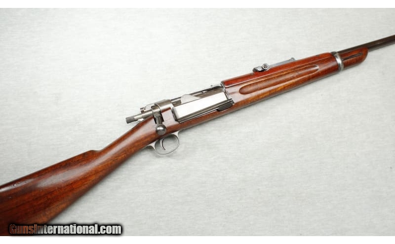 Description: Springfield 1899 Carbine Krag Jorgensen chambered in .30-40 Krag. Krag Model 1898 Rifle was the first smokeless powder repeating firearm adopted by the United States. This rifle also marked the beginning of the change from large caliber/low muzzle velocity ammunition to smaller caliber/higher energy rounds for military applications. It was used in the Boxer Rebellion, Spanish-American War and in the Philippine-American War before it was replaced by the Model 1903 Springfield. The carbine shared the features of the Krag rifle, but with a 22-inch barrel and shortened stock. .30-40 Krag SOLD Metal Condition: Very good. Appears to be refinished at some point. Wood Condition: Very good Bore Condition: Bright with strong rifling Barrels: 22 Inches Triggers: Factory Stock Dimensions: LOP 13 1/2 Inches Fore End: Grooved hardwood Butt Pad: Steel pad Weight: 7 Lbs 14 Oz Sights: Ladder rear and front blade sight Item Location: La Vista, NE |