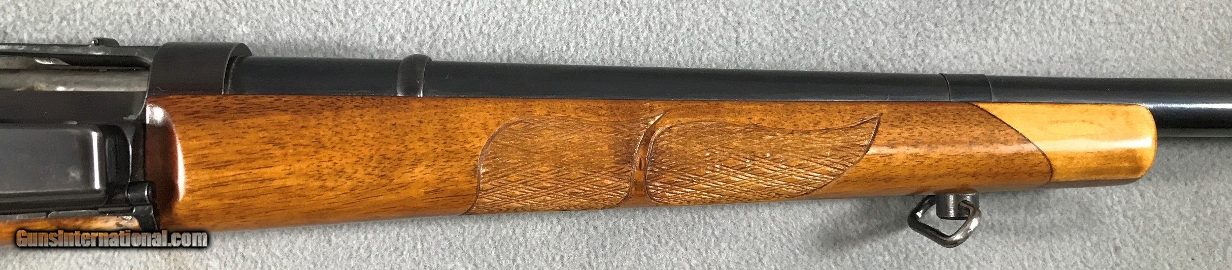 Description: Springfield 1898 Custom Sporter .30-40 Krag 22 1/2" Barrel 7lbs 6oz L.O.P. 13" Lyman 57K Receiver Sight Mfg. 1901 Steel is in very good as refinished condition, barrel has been cut and sporting sights added. There is some wear to the bluing with some rub spots, small scratches and nicks. Stock is sleek with a slim wrist and skipline checkering, and is in very good to excellent condition with minor handling marks. Action is "Krag Smooth" and functions properly, bore is bright with strong rifling. Overall a really neat mid-century sporter that would be a lot of fun to deer hunt with. $50.00 S&H SOLD Curio/Relic: Yes Rifle Caliber: .30-40 Krag Manufacturer: SPRINGFIELD ARMORY Model: 1898 KRAG SPORTER Serial Number: 320892 Barrel Length: 22 1/2 Condition: VERY GOOD/EXCELLENT Metal Condition: VERY GOOD Wood Condition: VERY GOOD/EXCELLENT Bore Condition: EXCELLENT Action: BOLT Stock: WALNUT LOP: 13 Finish: BLUED Weight: 7lbs 6oz Sights: RECEIVER Manufacture Date: 1901 |