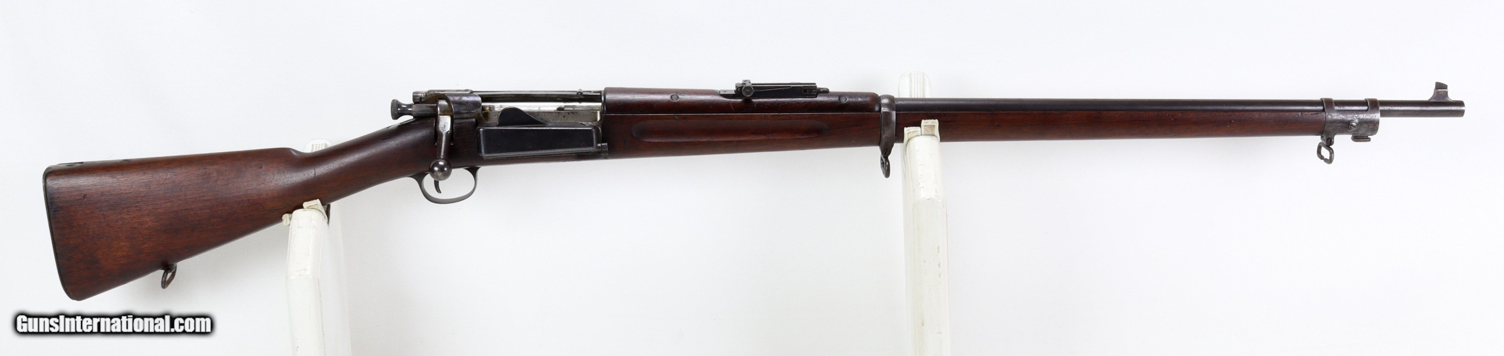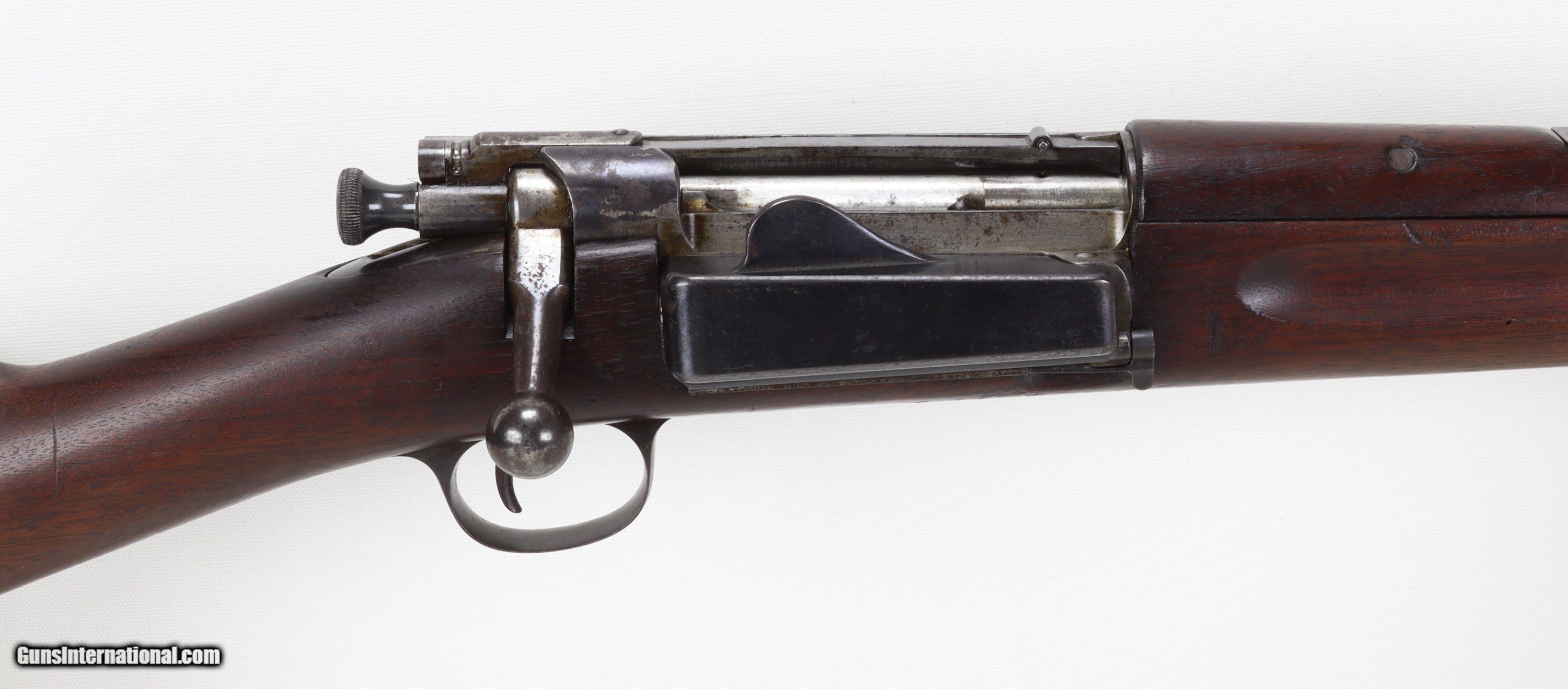 Description: Springfield Armory 1898 Krag-Jorgensen Rifle in great original condition, serial number 168021, mfr'd in 1899 so an FFL is required. 30" barrel has an excellent bore with strong rifling. Metal is in good condition with bluing at approximately 85% with some patina. Wood has been reworked at some point. 1901 Type 3 rear sight. $70.00 insured shipping to the lower-48. SOLD Curio/Relic: Yes Rifle Caliber: .30-40 Krag |