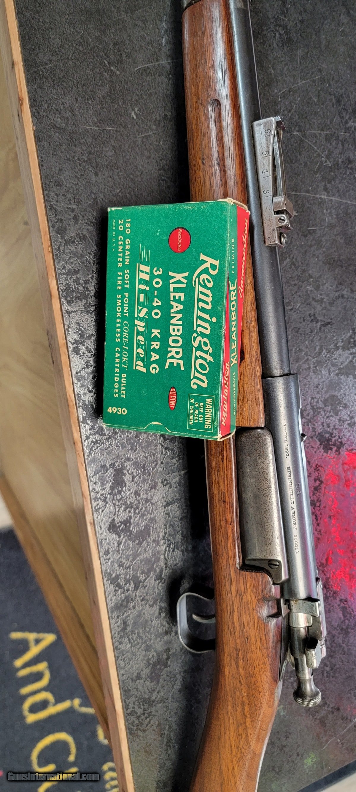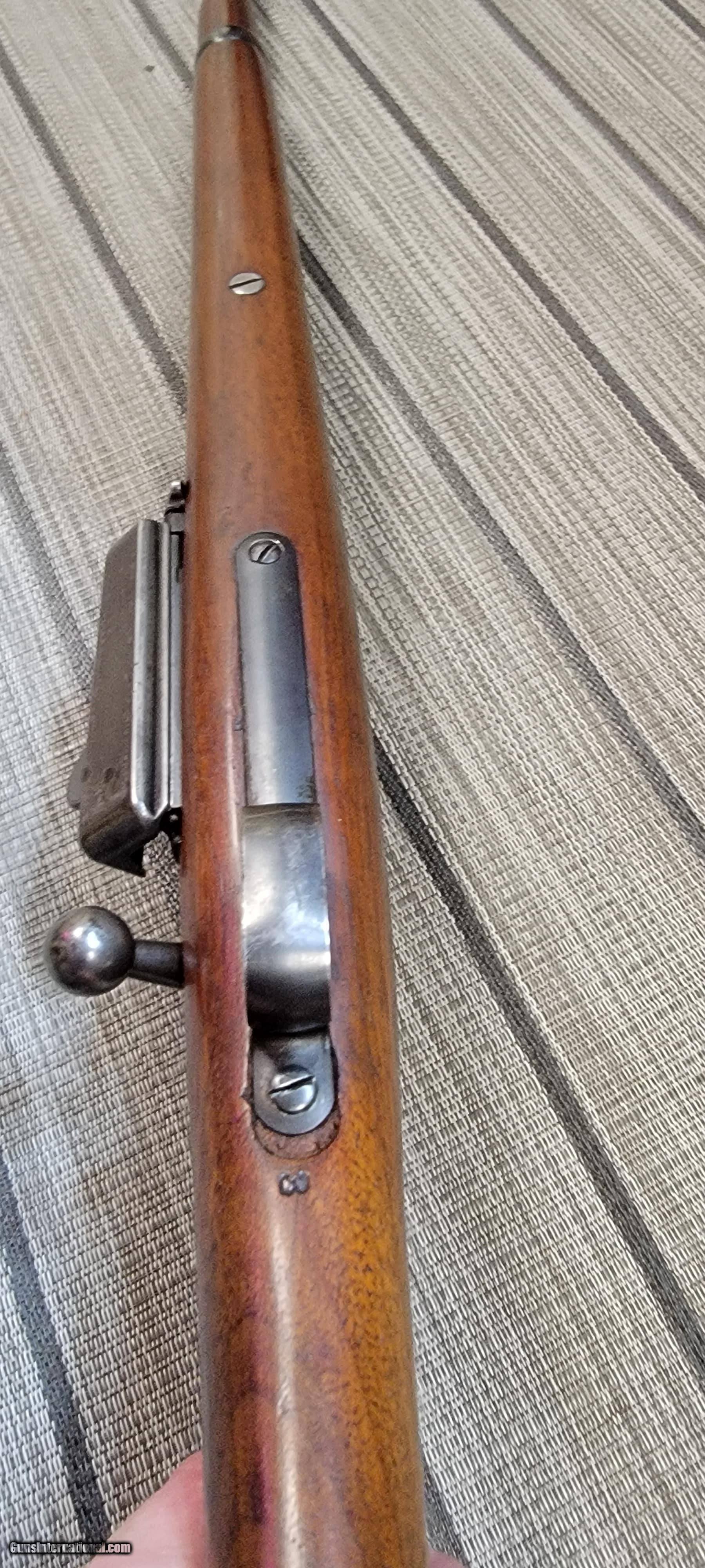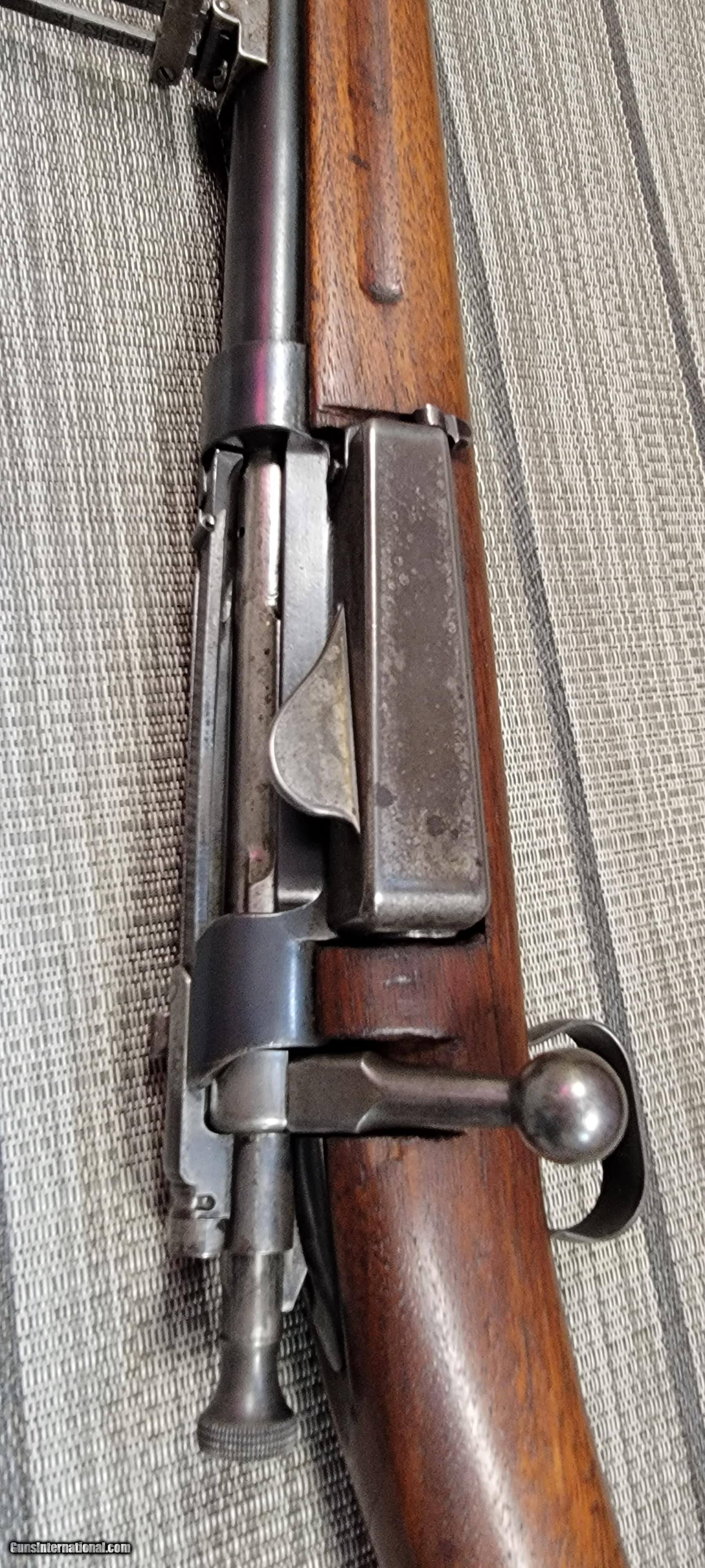 Description: Guns Listing ID: 478490 For your consideration is a Springfield Model 1899 bolt action rifle chambered in .30-40 Krag. The Springfield Model 1892–99 Krag–Jørgensen rifle is a Norwegian-designed bolt-action rifle that was adopted in 1892 as the standard United States Army military longarm, chambered in U.S. caliber .30-40 Krag. All versions and variants were manufactured under license by the Springfield Armory between 1892 and 1903 and famously served as the longarm during the Spanish–American War. This rifle utilizes a 22” round blue’d barrel with front sight and rear adjustable rear sight. The left side of the receiver is marked “U.S. Model 1899 Springfield Armory”. The .30-40 Krag caliber designation is on the left of the barrel. The straight grain walnut stock shows good condition and has checkering on the fore grip and the pistol grip. The loading gate shows good condition. SN 280011 *****Includes 1 BOX OF AMMO******* SOLD Curio/Relic: Yes Manufacturer: SPRINGFIELD ARMORY Model: 1899 KRAG SPORTERIZED Caliber Info: 30-40 KRAG Condition: Used - Non-Certified Barrels: 22 BARREL Finish: BLUE |