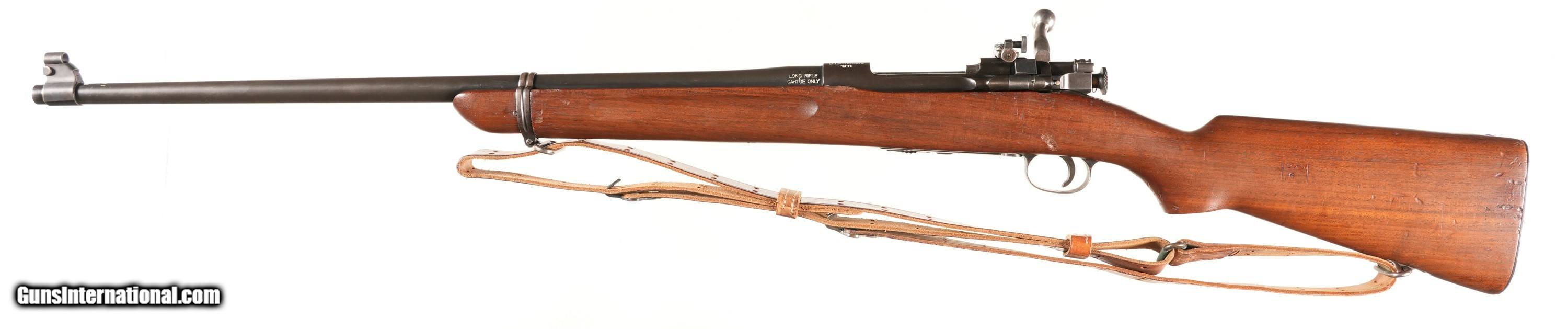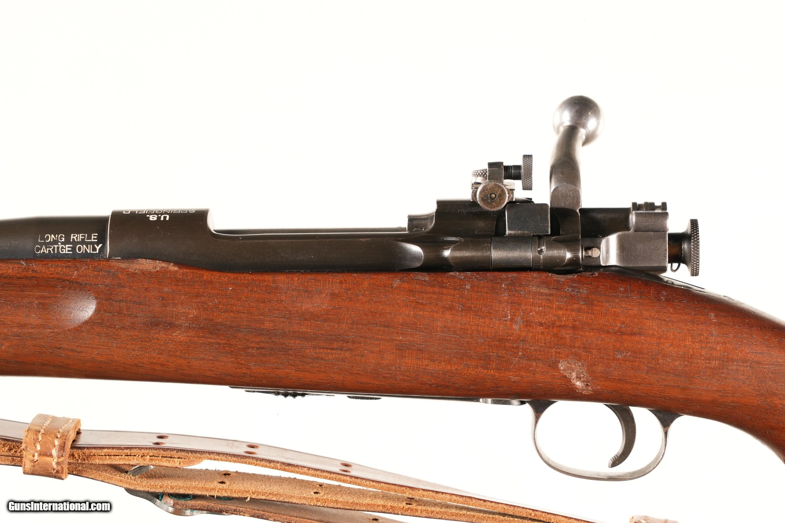 Description: Springfield M1922 22LR rifle with 11-33 dated Bbl. SA cartouche on stock Numbers matching bolt, undated pattern 1905 sling with iron hardware. Condition. Excellent with bright bore. No drilled holes 97% parkerized finish with excellent stocks and proper checkered buttplate. • Free Shipping, No Credit Card Fees. • Lay-a-way available for this firearm. • 1/3 Down, a 1/3 in 30 Days, 1/3 in 60 Days. SOLD Curio/Relic: Yes Rifle Caliber: .22 Long Rifle Manufacturer: Springfield Armory Model: M1922 Serial Number: 3607 Barrel Length: 24 Bore: 22 Long Rifle Condition: Extremely Fine Metal Condition: Extremely Fine Wood Condition: Extremely Fine Bore Condition: Bright Barrels: 24 Barrel Type: Round Action: Bolt Stock: Walnut Butt Pad: Checkered Steel Finish: Parkerized Sights: Target peep w/ blade front Manufacture Date: 11-33 Extras: Pattern 1905 sling |