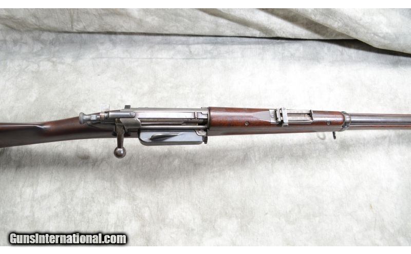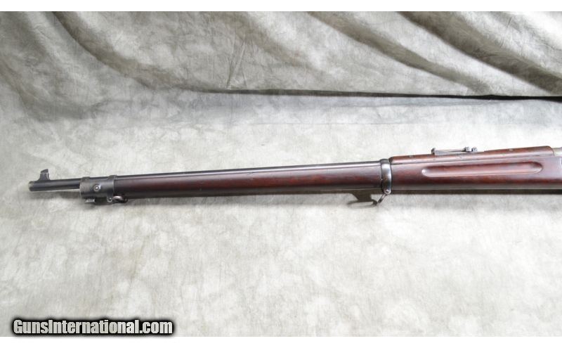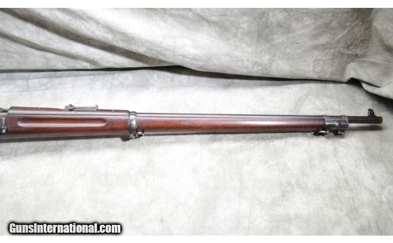 Description: This rifle features the smooth Krag-Jorgenson bolt action in a straight grip walnut stock. It has post and ladder type notch open sights. The stock cartouches are all sharp and clear. SOLD Curio/Relic: Yes Caliber Info: .30-40 Krag. Chambers: 3 round internal magazine. Metal Condition: Very good to excellent. Some wear around the muzzle and the receiver has faded a bit, tending toward a nice patina. There is some shallow pitting on some of the receiver surfaces. Wood Condition: Very good. All cartouches are sharp and clear. Bore Condition: Shiny and bright with good rifling. Barrels: 30 inch barrel with military sights. Triggers: Factory military trigger. Stock: Straight grip musket length walnut. Stock Dimensions: 13 - 1/4 Inch LOP. Butt Pad: Steel plate with cleaning kit port, kit included. Weight: 9 lb. - 1 oz. Sights: Post and ladder style notch iron sights. Item Location: Rogers,, MN |
