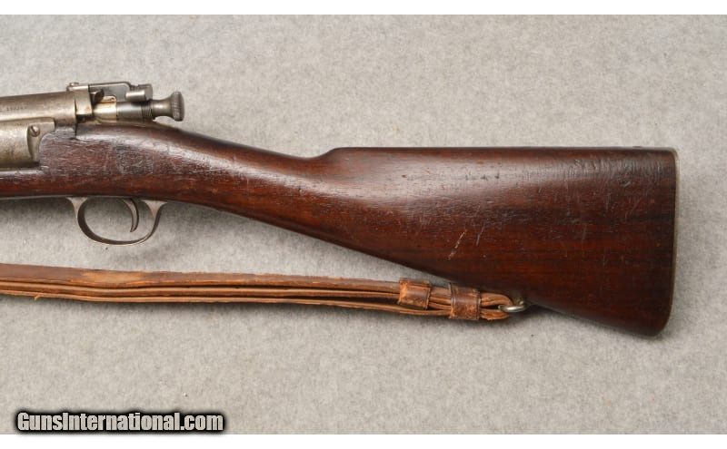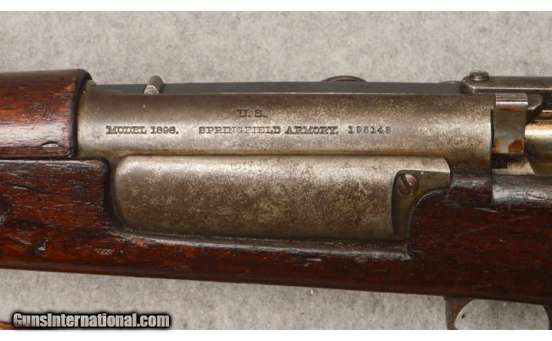 Description: This Springfield Armory Model 1898 Krag-Jorgensen bolt action rifle in .30-40 Krag is in good condition. The blued barrel and receiver frame are good with 50 to 60% of the finish remaining. The blued 30" barrel is excellent with sharp clear rifling in its bore. The trigger is firm and smooth with a crisp release. The factory stock has the usual battle scarring and handling marks of a 100+ year old U.S. issued rifle. There were 500,000+ Krags manufactured from 1894 to 1904, while being in service from 1892 to 1907. The Model 1898 Krag was replaced by the Springfield Model 1903 after ample inventory was built up. This Model 1898 was manufactured in 1898. This Springfield Armory rifle does come with a period correct looking sling, but does not have a box or any other accessories. .30-40 Krag SOLD Curio/Relic: Yes Metal Condition: Good Wood Condition: Good Bore Condition: Excellent Barrels: Blued 30 Triggers: Blued Curved Smooth Stock Dimensions: LOP 13 1/2" Height 6 1/2" Length 49 1/4 Fore End: Matching One-Piece Smooth Dark Walnut Butt Pad: Smooth Steel Butt Plate with Access Door Weight: 9 Lbs 6 Oz. Sights: Front Fixed Blade with Rear Adjustable Ladder Item Location: West Chester, OH |