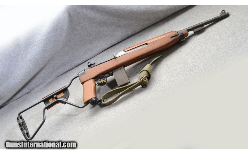 Description: SOLD Manufacturer: S/N SC124xx Caliber Info: .30 Carbine Metal Condition: Good to very good. Has some fading of the blue and some surface corrosion. Wood Condition: Good to very good. Bore Condition: Bright and shiny. Barrels: 18 Inch marked "UNDERWOOD...12-42... Stock: Paratrooper style folding wire stock Fore End: Low Wood" style walnut Butt Pad: Textured steel plate Weight: 6 lbs. - 3 oz Sights: Combat style post and peep. Extras: One mag, sling Item Location: Rogers,, MN |