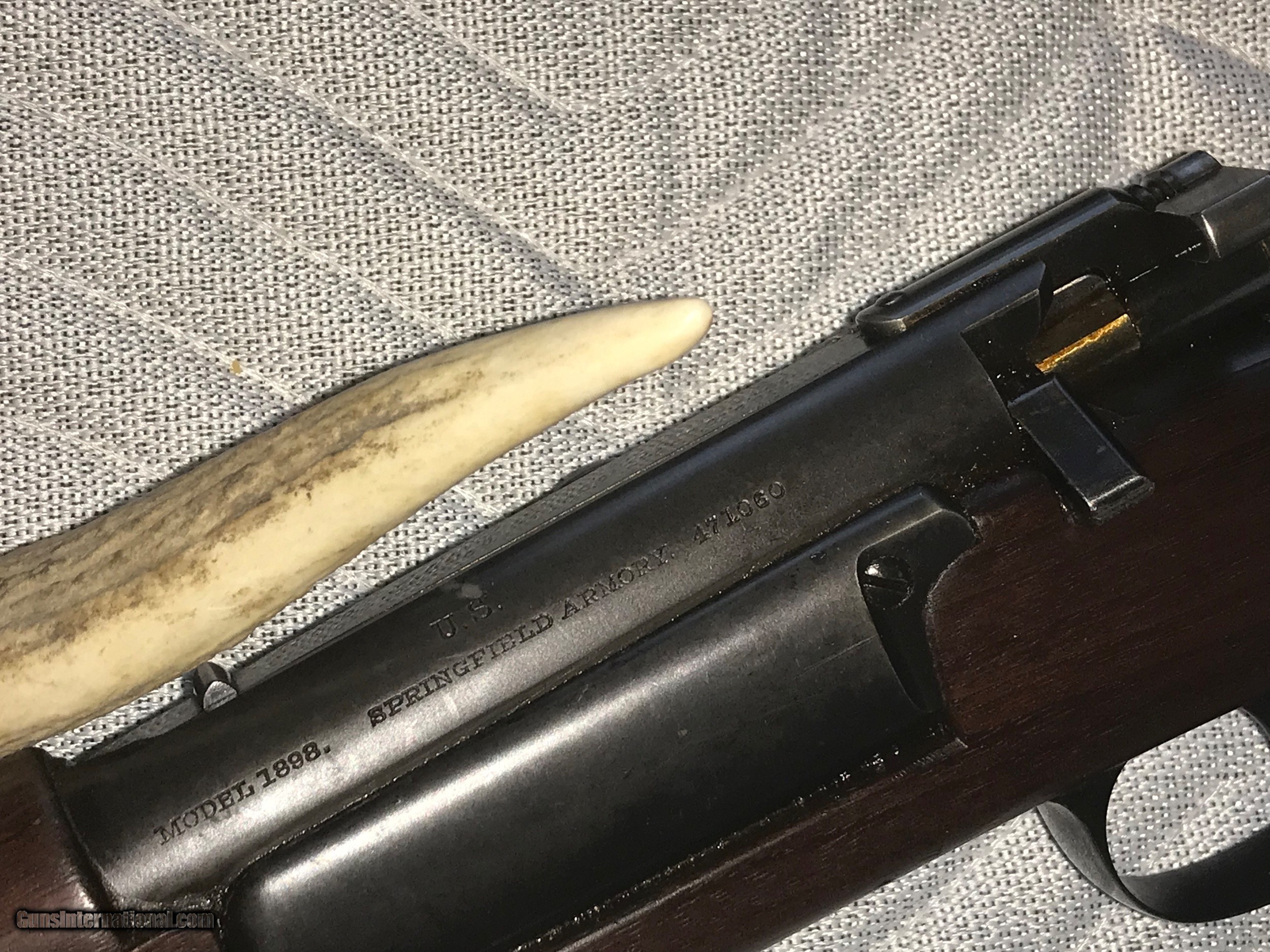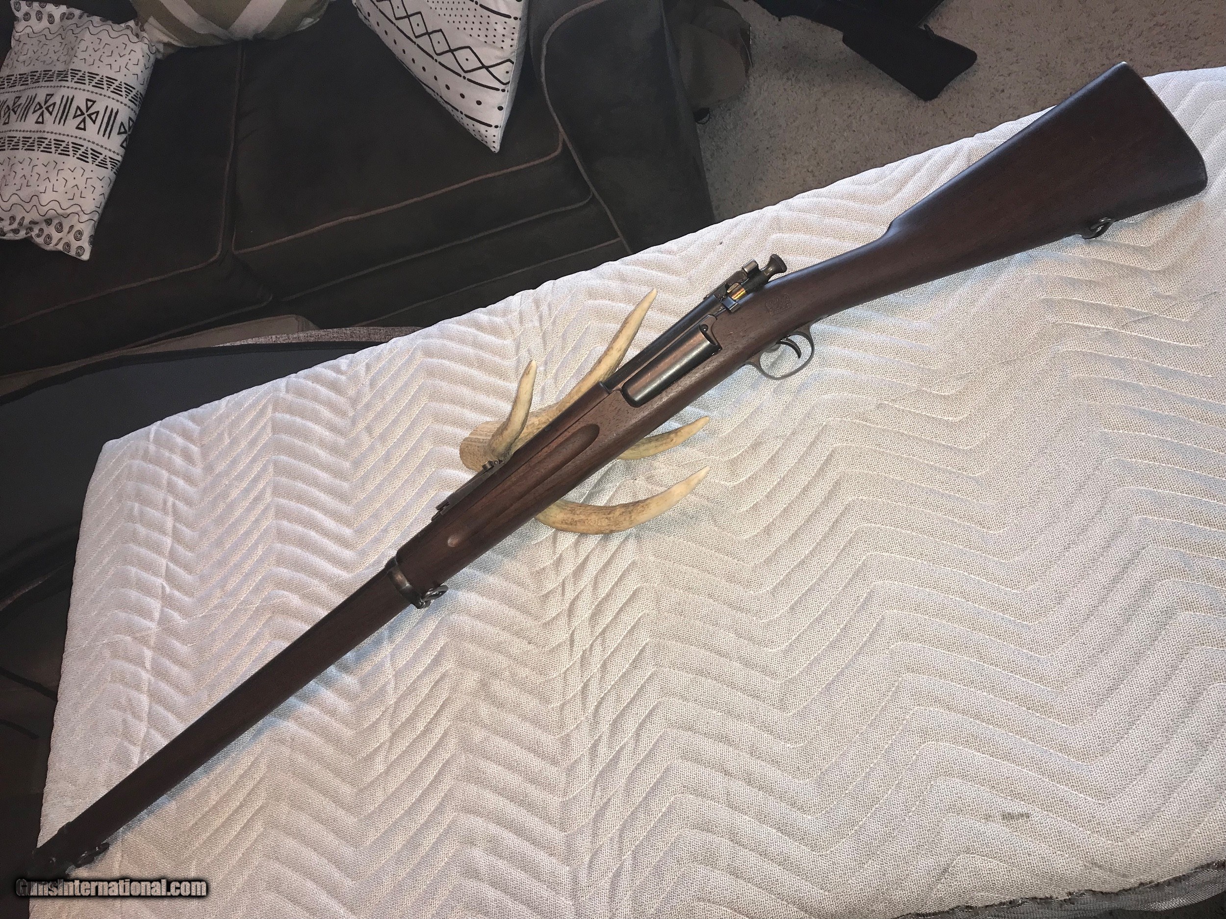 Description: *Sold pending funds to Tom in Delaware* Rifle is as new, possibly unissued, outside has been cleaned of cosmoline, however, the inside is still filled with cosmoline. 1903 stock cartouche. Shipping cost will be assessed at time of sale. Shipping insurance is at buyers request and cost. Firearms must be shipped to an FFL unless they are considered an antique firearm, seller will determine what is and isn’t an antique firearm and what states allow antique firearms to be shipped direct. Will not sell a firearm to anyone who asks me to bypass shipment to an FFL. Buyers FFL must accept from a private individual, seller is a private individual selling personal property. Will ship to communist states provided receiving FFL in the communist state contacts seller stating purchased firearm will be legally accepted by FFL. In some circumstances seller can transfer firearm to an FFL for shipment at a cost of $50 plus FFL’s fees and FFL’s shipping cost. Buyer is responsible to know their local laws of the firearm they are purchasing. Buyers who cannot pass a background check and take possession of the firearm they purchased is not the sellers problem. Request additional pictures and ask questions. Buyers remorse is buyer’s problem. Seller accepts personal checks, bank checks and postal money orders. $2600.00 plus shipping SOLD Manufacturer: Springfield Model: 1898 Condition: As new, used Metal Condition: As new Wood Condition: As new |
