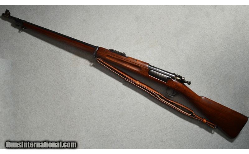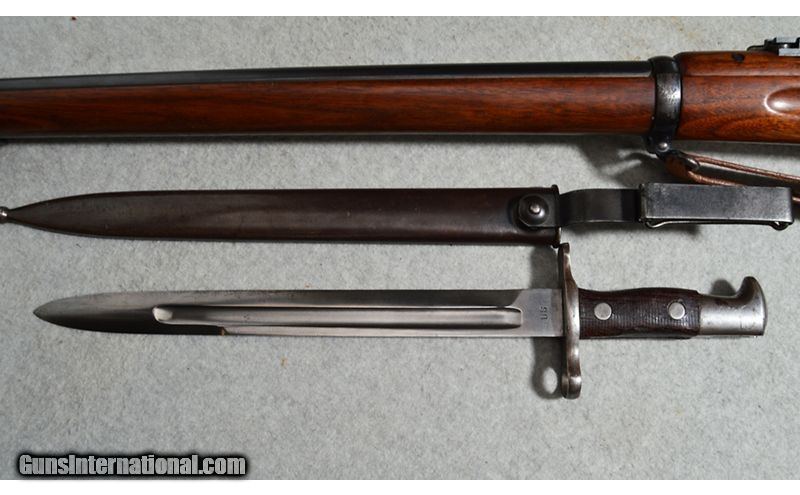 Description: M1898 Krag-Jørgensen rifle chambered in .30-40 Krag. A symbolic US military rifle that was one of the first small caliber, bolt-action, magazine-fed, smokeless powder rifles to serve in the US Army. From 1894 to 1904, the Springfield Armory in Springfield, Mass. produced 500,000 of various model Krags. The serial number of this rifle (446682) dates the production to 1903-1904 and places it toward the end of production before the M1903 rifle was adopted. Overall, in very good condition for a firearm of its age. An excellent opportunity to own an historic firearm that was symbolic of the Spanish-American War. Includes period-correct bayonet and scabbard. .30-40 Krag SOLD Curio/Relic: Yes Metal Condition: Good with Handling Marks Wood Condition: "Good with Minor Wear, Dents, & Scratches Bore Condition: Clear with Good Rifling Barrels: 30 inch Weight: 9 Lbs 10 oz Sights: V-notch rear and front post Item Location: Fort Worth, TX |