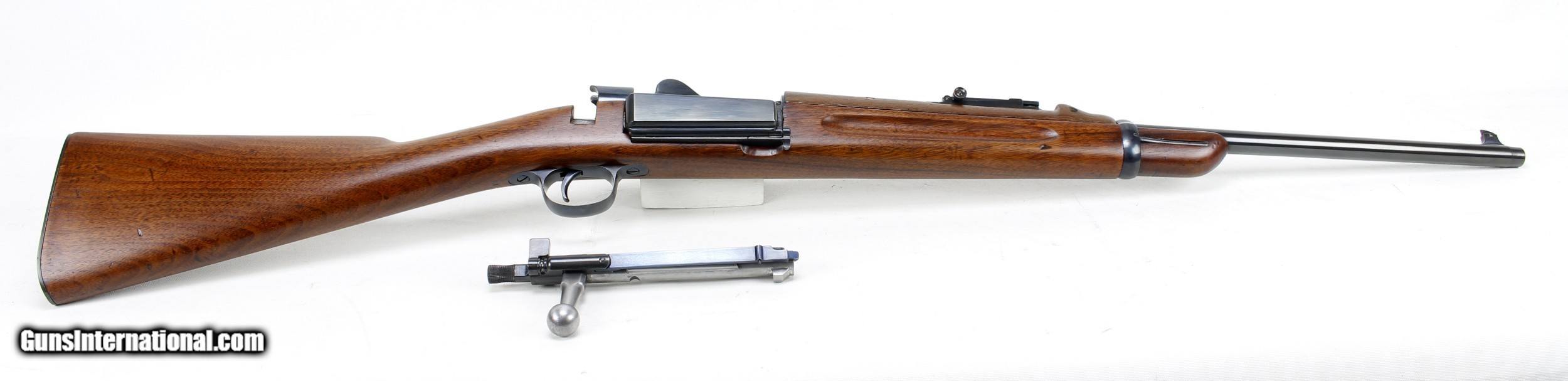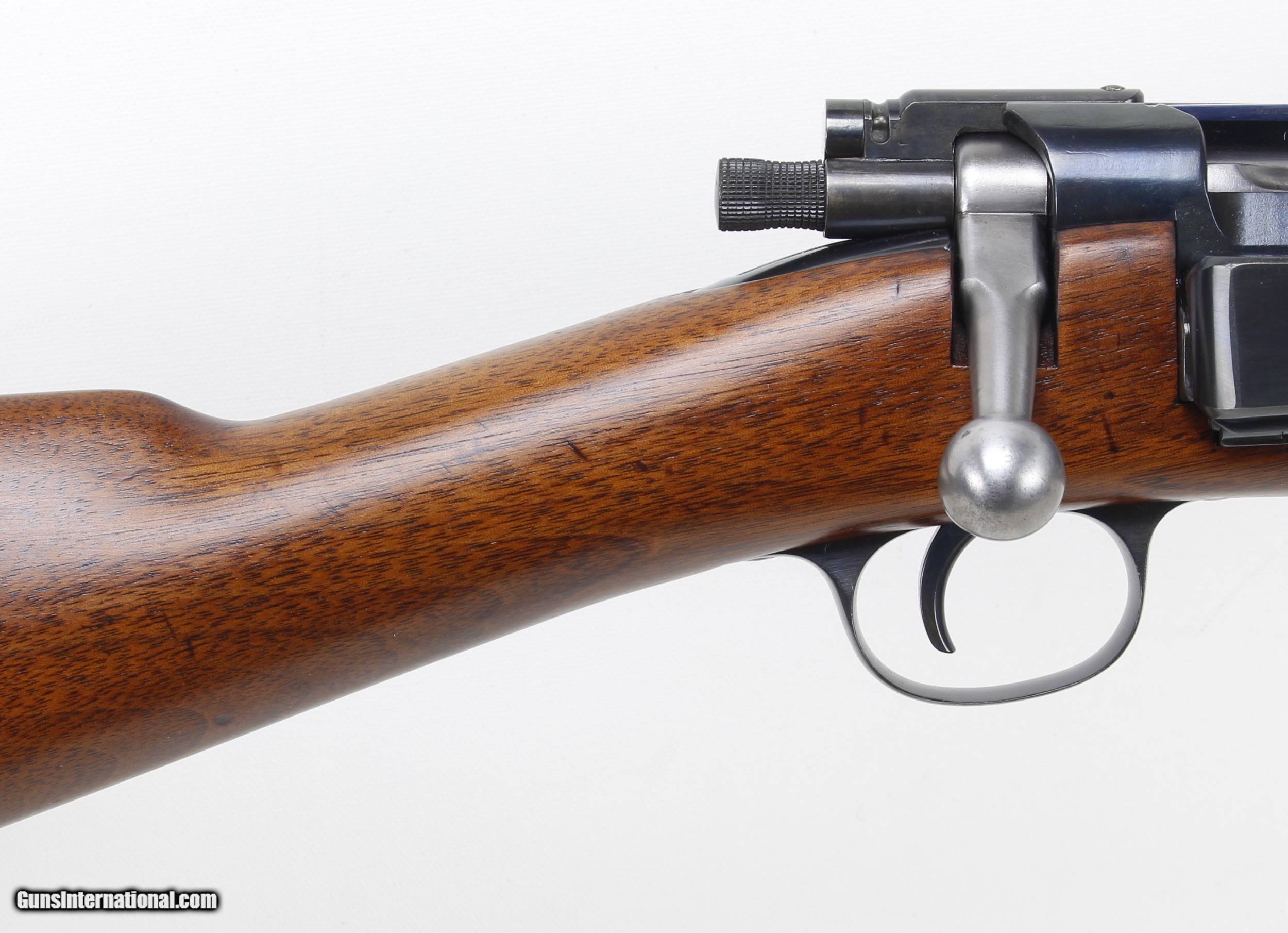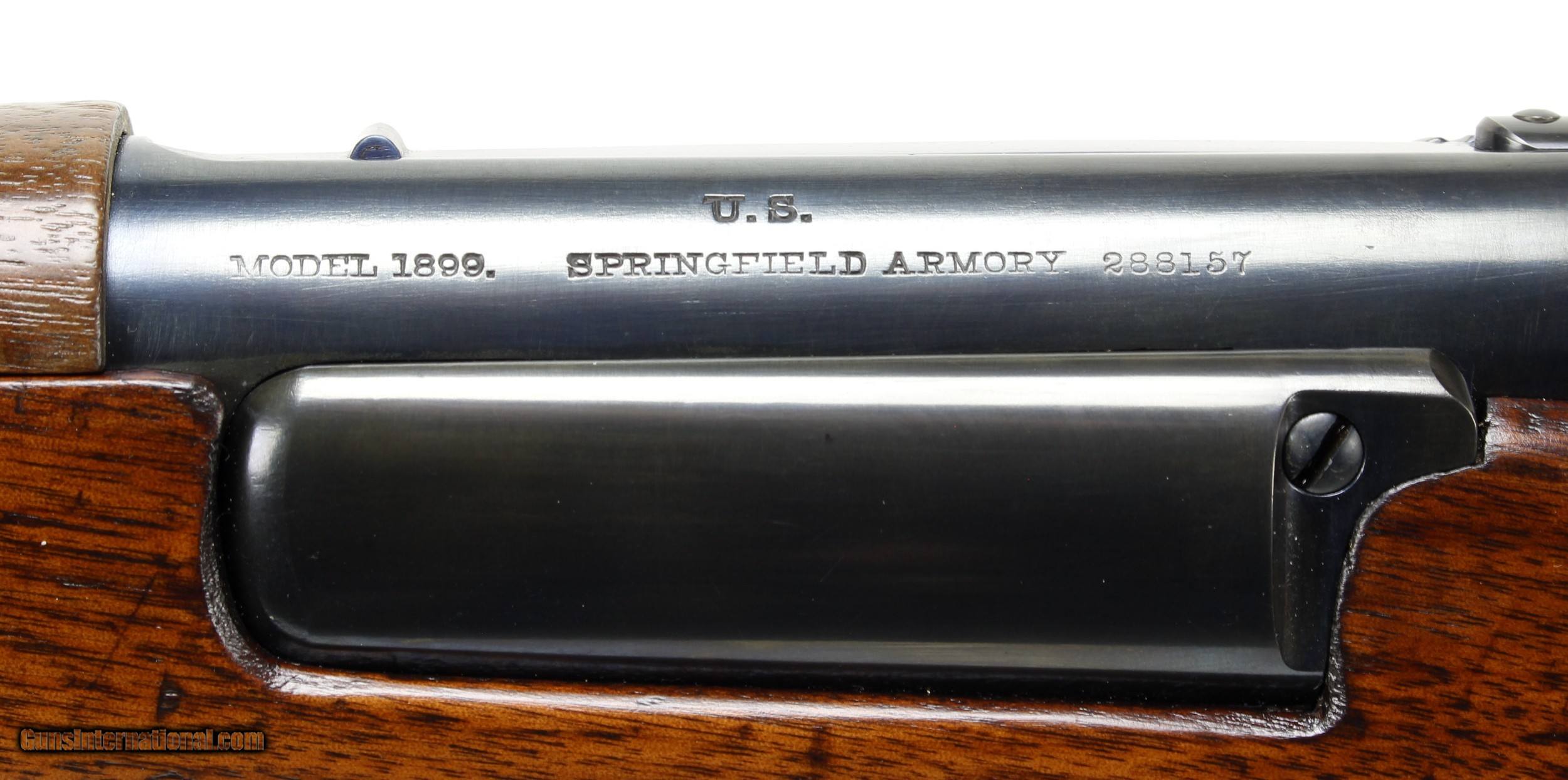 Description: Springfield Krag-Jorgensen Model 1899 Carbine in .30-40 Krag. SN #288157. Mfg. in 1900. LOP 13 1/2". 22" Barrel with an EXCELLENT Bore for it's age. Slightly Frosted with STRONG RIFLING. Both the Blued Metal and Walnut Stock and Forend have been FULLY RESTORED by SHOOTER'S EXCHANGE and LOOK GREAT. Steel buttplate with trapdoor containing cleaning rods and oiler. Smooth Action. Weight: 8.1 lbs. Trigger Pull: 4 1/2 lbs. *** RESTORATION BY SHOOTER'S EXCHANGE $350.00- $450.00 *** More photos available upon request. Ships to Lower 48 W/ Insurance $60.00. SOLD Curio/Relic: Yes Rifle Caliber: .30-40 Krag Manufacturer: Springfield Armory Model: 1899 Krag Carbine Serial Number: 288157 Barrel Length: 22 Condition: Excellent Metal Condition: Refinished Wood Condition: Refinished Bore Condition: Excellent For Age Action: Bolt LOP: 13 1/2 Finish: Blue Weight: 8.1 lbs Manufacture Date: 1900 |
