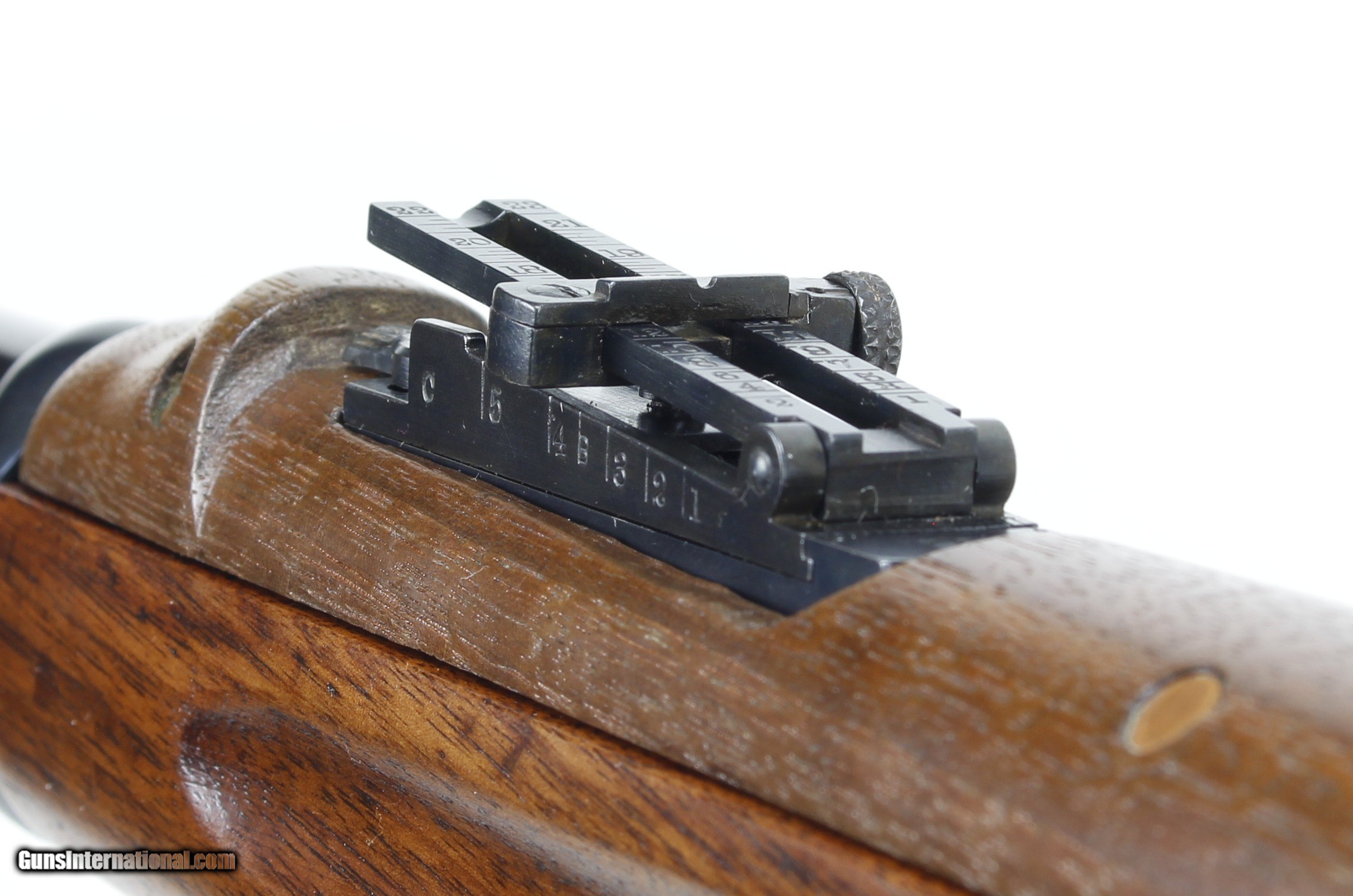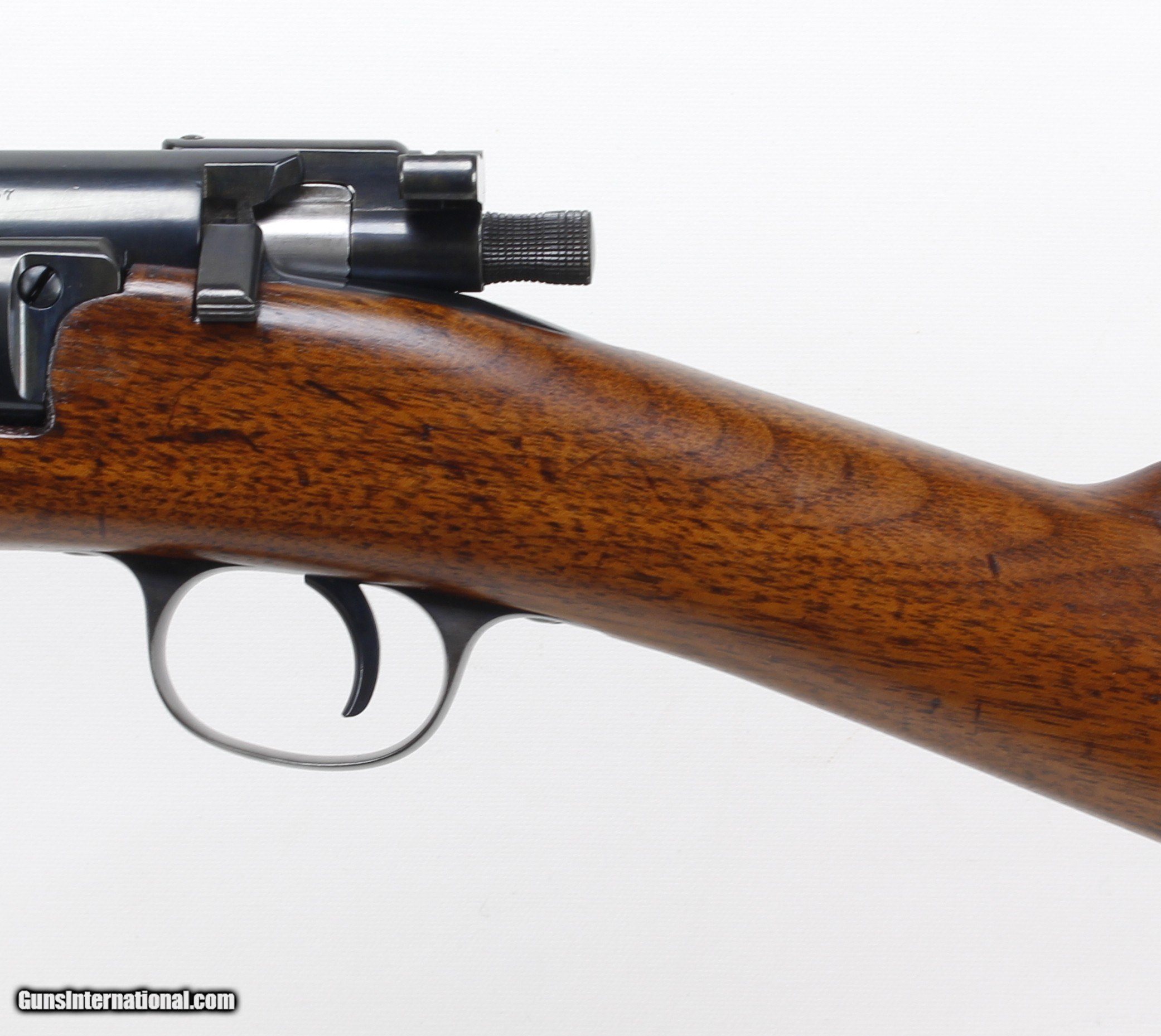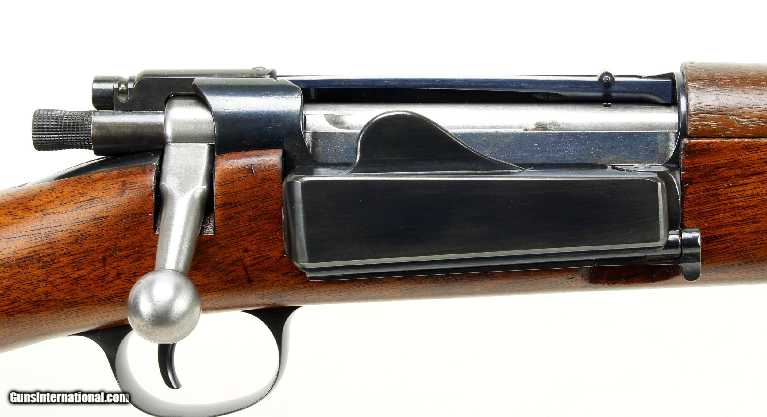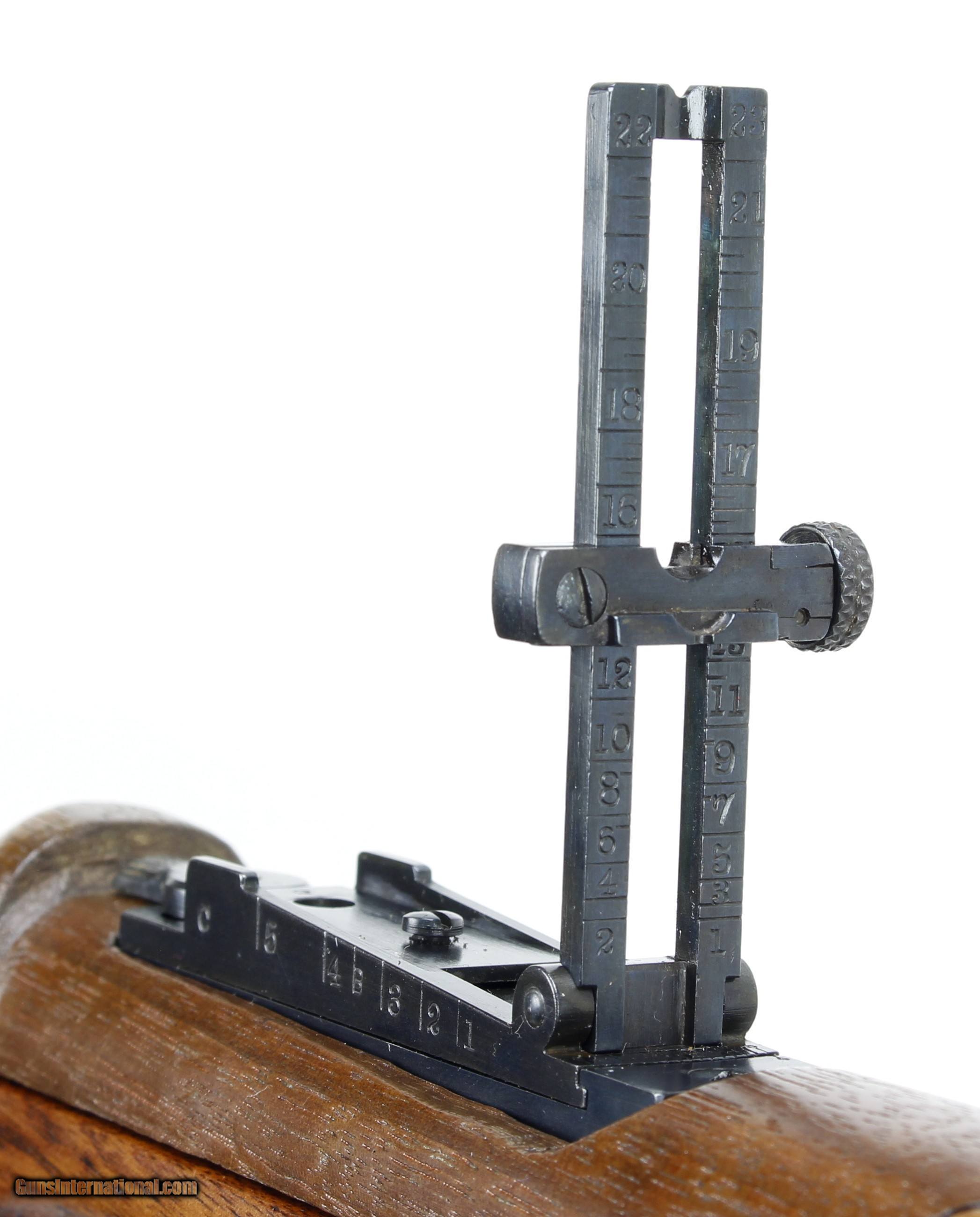 Description: Springfield Krag-Jorgensen Model 1899 Carbine in .30-40 Krag. SN #288157. Mfg. in 1900. LOP 13 1/2". 22" Barrel with an EXCELLENT Bore for it's age. Slightly Frosted with STRONG RIFLING. Both the Blued Metal and Walnut Stock and Forend have been FULLY RESTORED by SHOOTER'S EXCHANGE and LOOK GREAT. Steel buttplate with trapdoor containing cleaning rods and oiler. Smooth Action. Weight: 8.1 lbs. Trigger Pull: 4 1/2 lbs. *** RESTORATION BY SHOOTER'S EXCHANGE $350.00- $450.00 *** More photos available upon request. Ships to Lower 48 W/ Insurance $60.00. SOLD Curio/Relic: Yes Rifle Caliber: .30-40 Krag Manufacturer: Springfield Armory Model: 1899 Krag Carbine Serial Number: 288157 Barrel Length: 22 Condition: Excellent Metal Condition: Refinished Wood Condition: Refinished Bore Condition: Excellent For Age Action: Bolt LOP: 13 1/2 Finish: Blue Weight: 8.1 lbs Manufacture Date: 1900 |