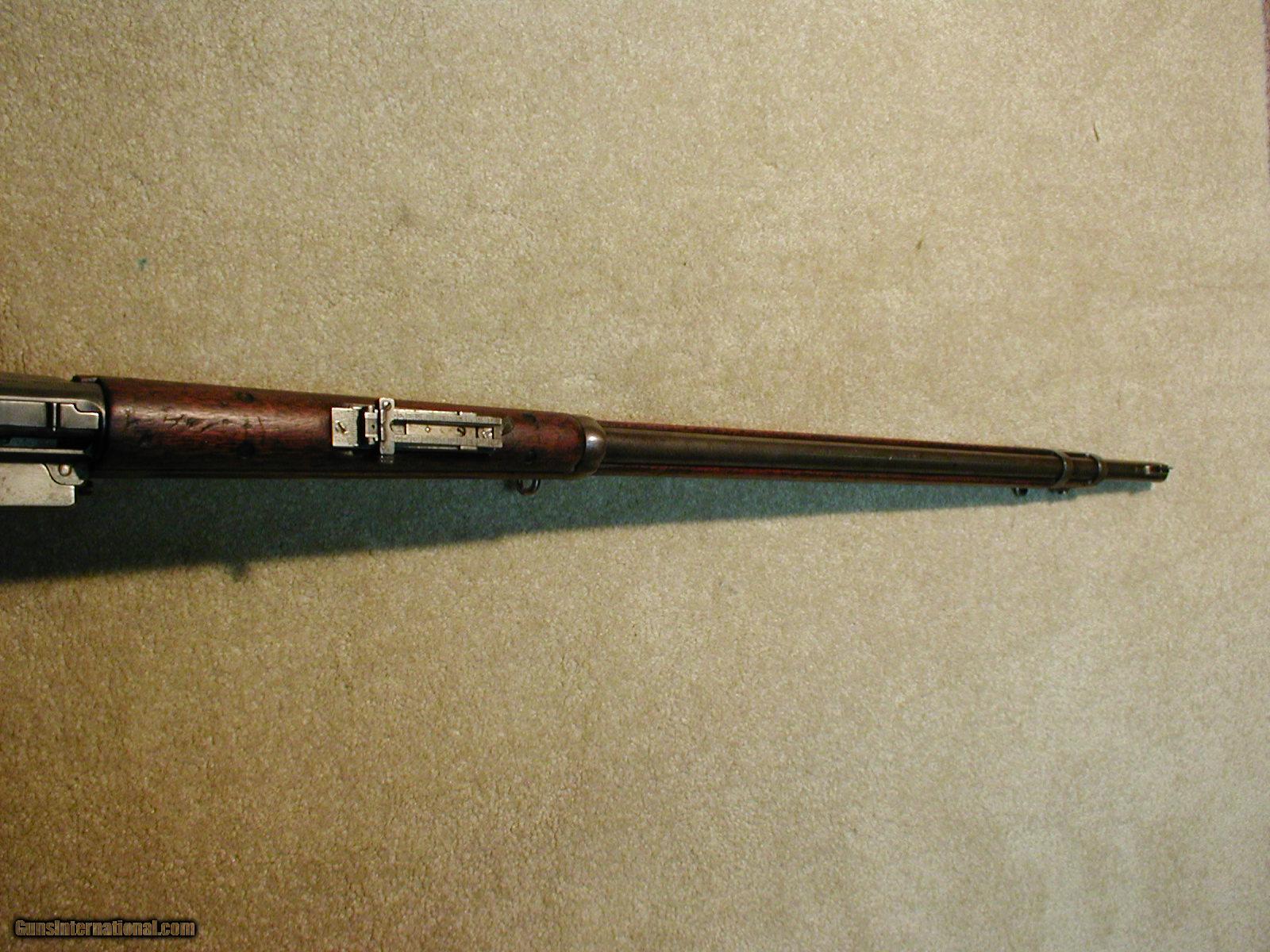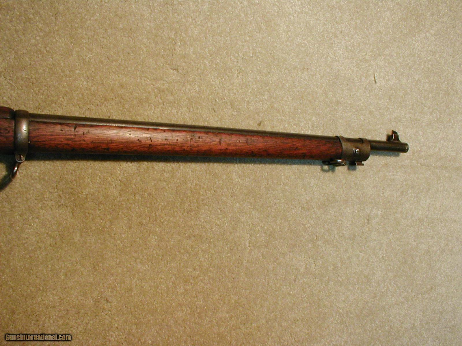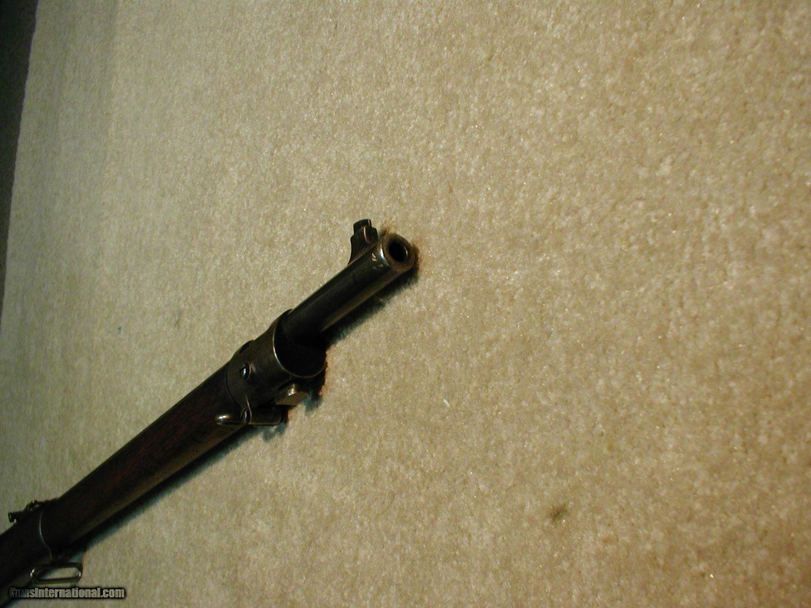 Description: 1898 KRAG RIFLE, .30-40 CALIBER, #388XXX, MADE 1902, a nice honest example with good 1902 dated stock cartouche, overall an obviously issued rifle that was used but well maintained, wood overall shows handling but is solid and never sanded, correct swivels, barrel blue is thinned and mixing gray but smooth, mottled gray receiver with good blue on the extractor, exc. bore, tight action, sight lever screw is a replacement, overall a good Krag with an excellent bore and cartouche. SOLD Curio/Relic: Yes Manufacturer: SPRINGFIELD Model: 1898 KRAG RIFLE Serial Number: 388XXX Caliber Info: .30-40 KRAG Condition: fine Barrels: 30 |