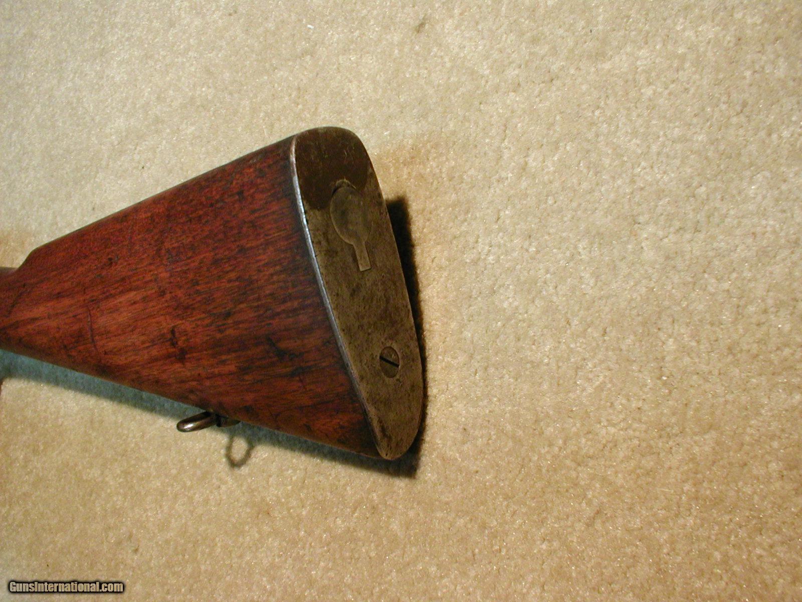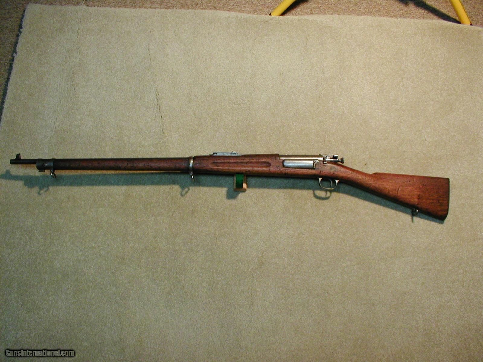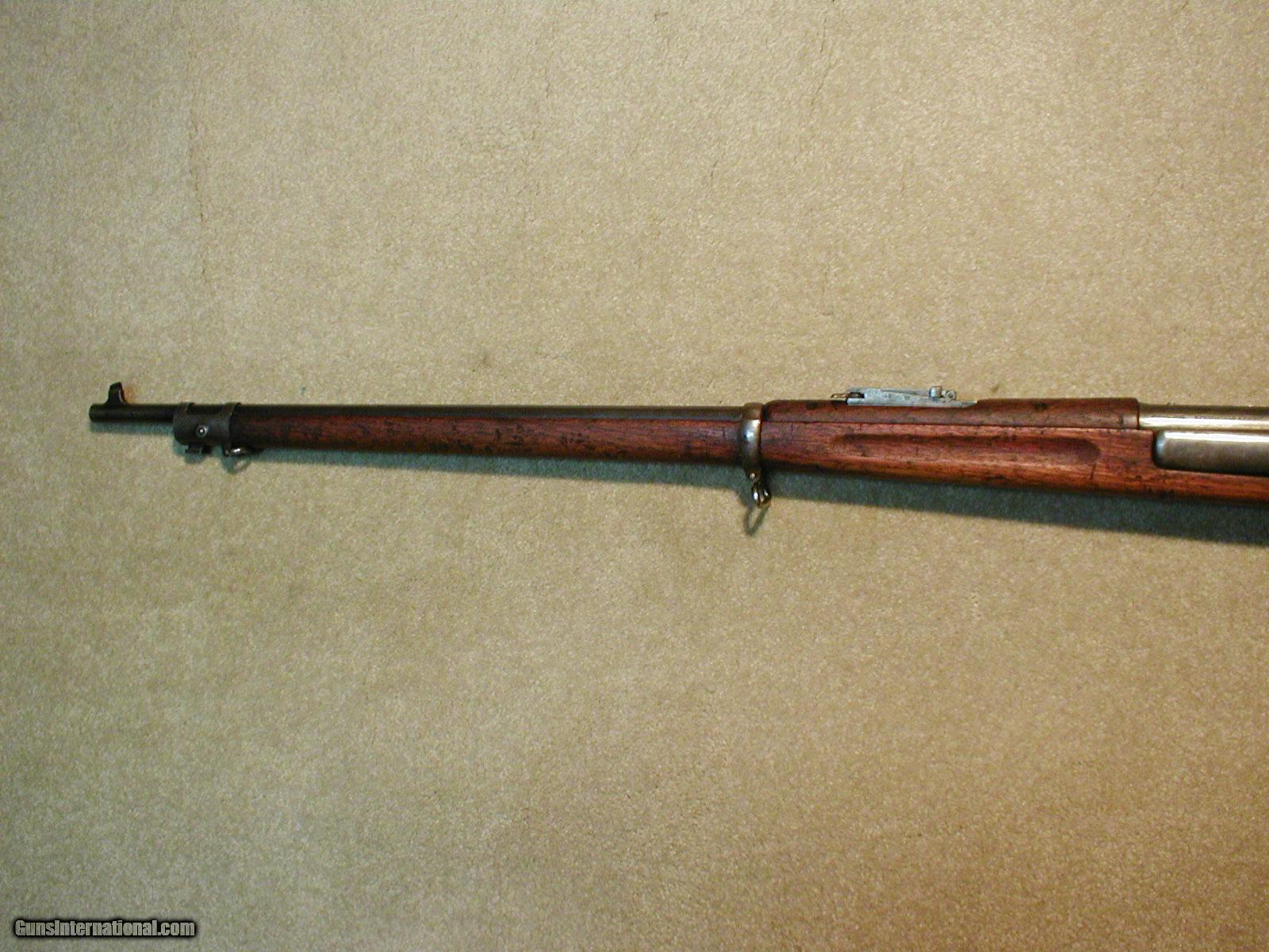 Description: 1898 KRAG RIFLE, .30-40 CALIBER, #388XXX, MADE 1902, a nice honest example with good 1902 dated stock cartouche, overall an obviously issued rifle that was used but well maintained, wood overall shows handling but is solid and never sanded, correct swivels, barrel blue is thinned and mixing gray but smooth, mottled gray receiver with good blue on the extractor, exc. bore, tight action, sight lever screw is a replacement, overall a good Krag with an excellent bore and cartouche. SOLD Curio/Relic: Yes Manufacturer: SPRINGFIELD Model: 1898 KRAG RIFLE Serial Number: 388XXX Caliber Info: .30-40 KRAG Condition: fine Barrels: 30 |