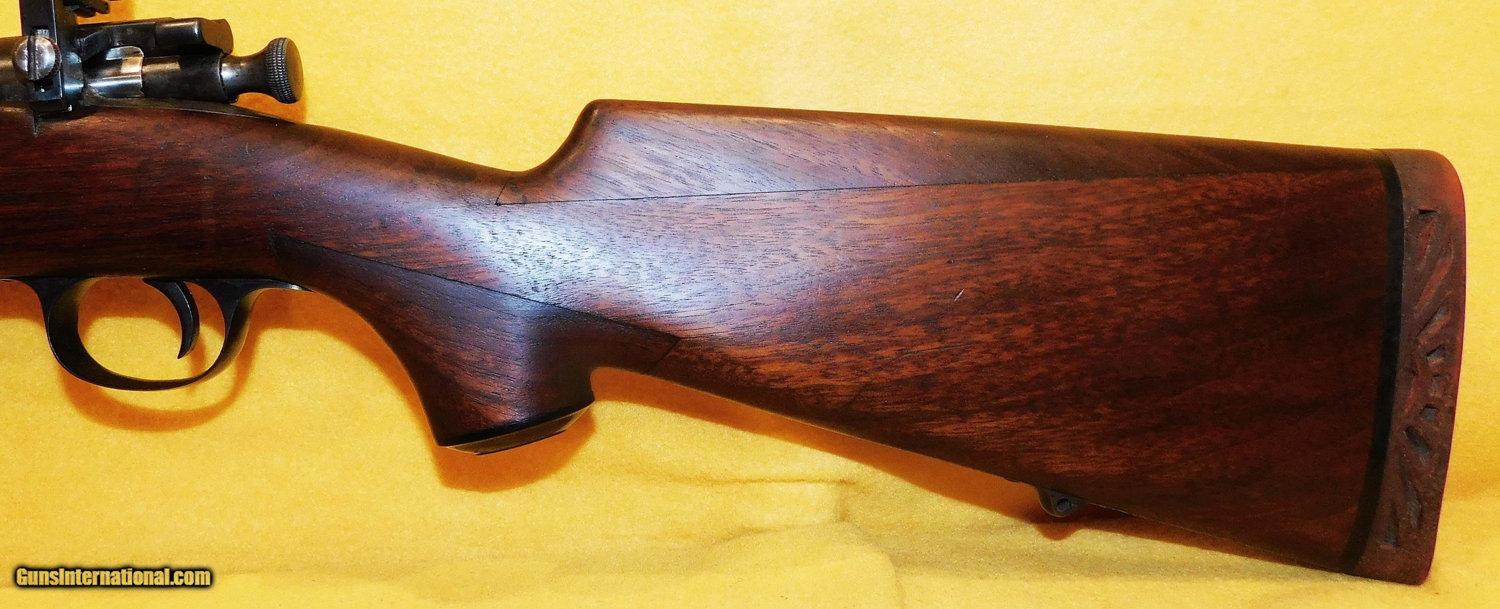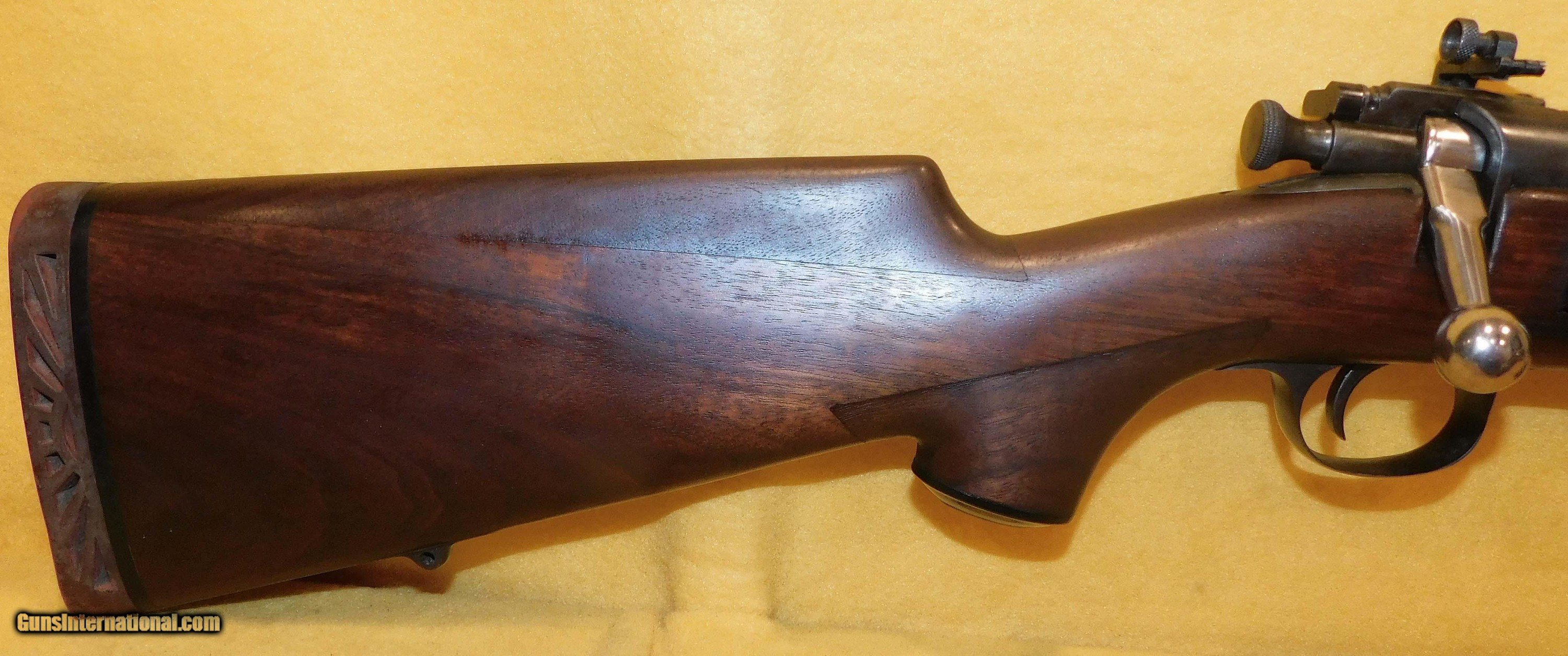 Description: U.S. SPRINGFIELD 1894 KRAG SPORTER IN 30/40 KRAG CAL., WITH 21" BARREL. COLOR BLUE. CONDITION 90%. SERIAL NUMBER 11443. U.S. SPRINGFIELD MODEL 1894 KRAG SPORTER IN .30-40 CALIBER, MIRROR BORE, CUSTOM WALNUT STOCK VERY GOGO TO EXCELLENT, THIS IS A PRE WAR KRAG SPORTER THE STOCK HAS WALNUT STOCK HAS BEEN MASTERFULLY REFINISHED WITH CHEEK PIECE AND PISTOL GRIP, METAL WORK IS EXCELLENT, VERY NICE KRAG SPORTER WITH BYGONE ERA CRAFTSMANSHIP, 90% OVERALL CONDITION, OUR STOCK # D3485 SOLD |