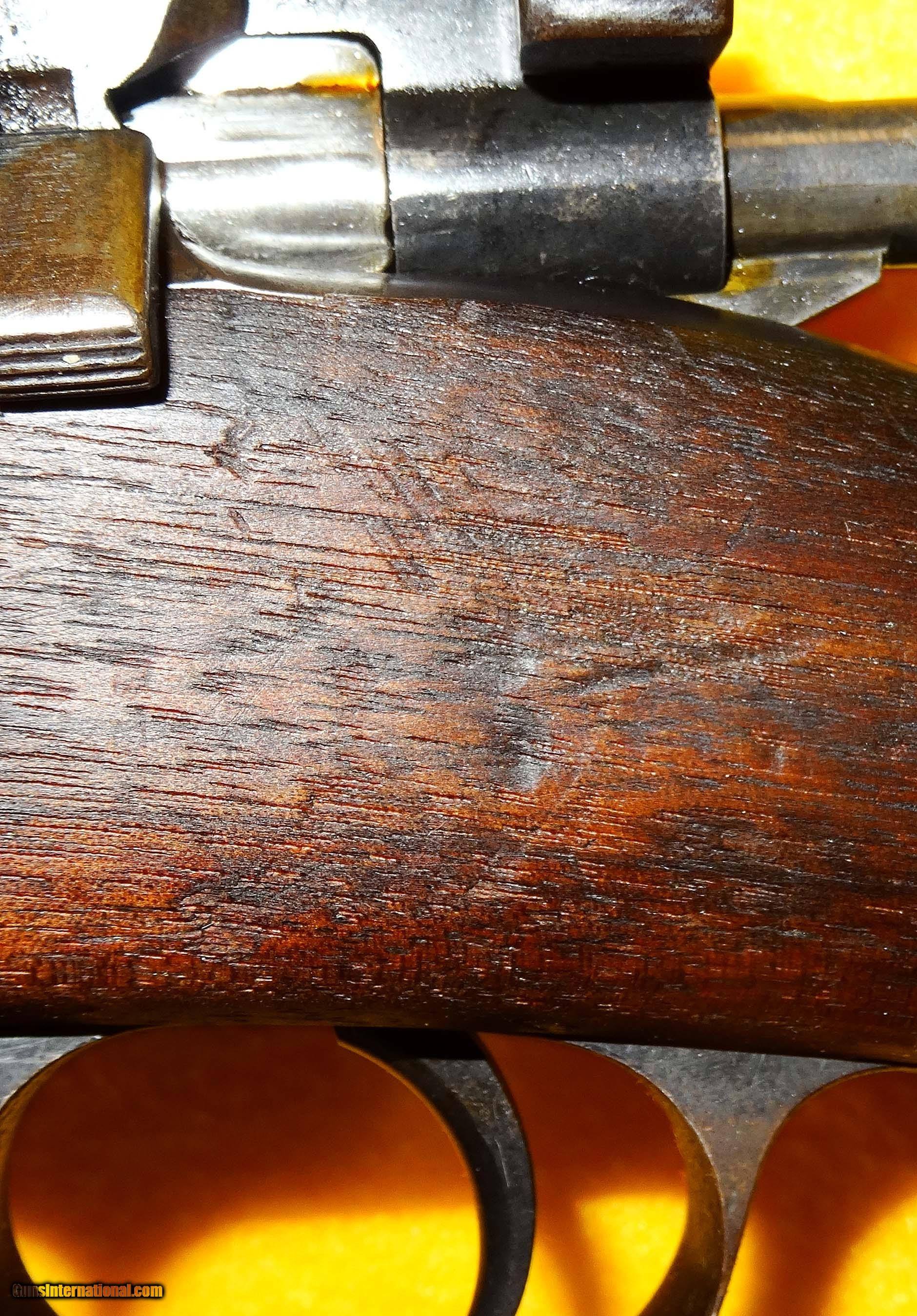 Description: U.S. SPRINGFIELD ARMORY 1898 KRAG-JORGENSEN IN .30-40 KRAG CALIBER WITH 30" BARREL. COLOR BLUE. CONDITION 75%. SERIAL NUMBER 170270. U.S. SPRINGFIELD ARMORY MODEL 1898 KRAG-JORGENSEN IN .30-40 KRAG CALIBER, THIS FIREARM HAS BEEN IN A U.S. ARSENAL FOR THE LAST 100 PLUS YEARS AND NEVER IN CIVILIAN HANDS, COMES WITH A BRIGHT SHINY MIRROR BORE, NICE (P) PROOF WITH NO CARTOUCHE, 1901 REAR WINDAGE LADDER SIGHT, STOCK CONDITION IS GOOD WITH SERVICE WEAR, METAL FINISH IS 80% WITH NICE PATINA, OVERALL CONDITION IS 75%, OUR STOCK # D637. SOLD |