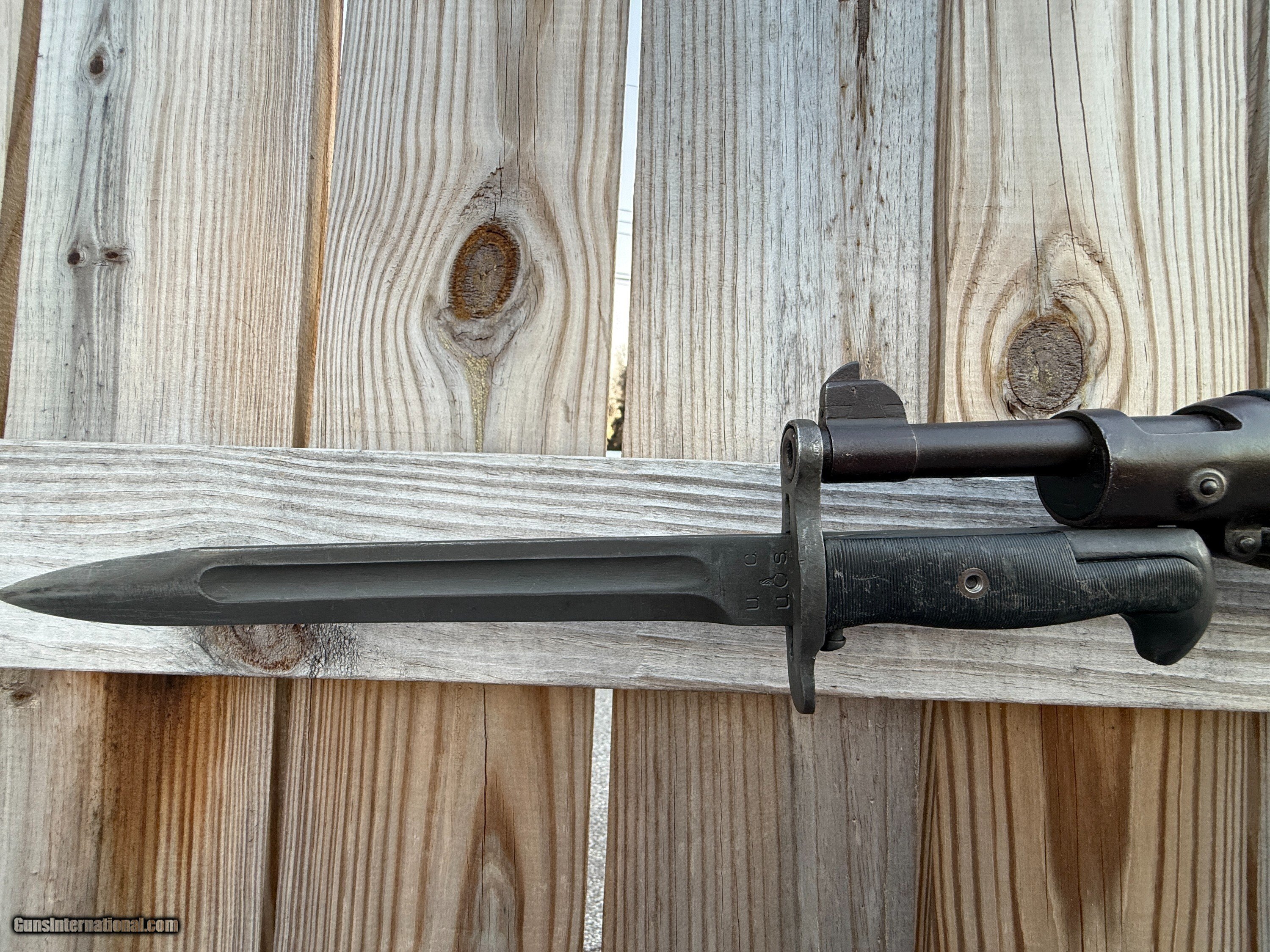 Description: Here we have a U.S. Springfield Armory 1903 chambered in 30-06 manufactured in towards the end of WWI in 1918. The M1903 is an iconic American bolt-action rifle and is known for its accuracy, ruggedness, and long service in U.S. conflicts from WWI through Vietnam, featuring a five-round internal magazine, Mauser-style action, and wood stock. The stamp on the stock indicates thst this rifle was at the Augusta Arsenal where the barrel was replaced, the date on the barrelis 7-32. The stock shows its age but overall the rifle is in very good condition. Curio/Relic: Yes Rifle Caliber: .30-06 Springfield Manufacturer: U.S. Springfield Model: 1903 Serial Number: 861217 Barrel Length: 24 Bore Info: Good Condition: Good Metal Condition: Good Wood Condition: Good Bore Condition: Good Manufacture Date: 1918 Price: $1,400.00 Contact Seller |
