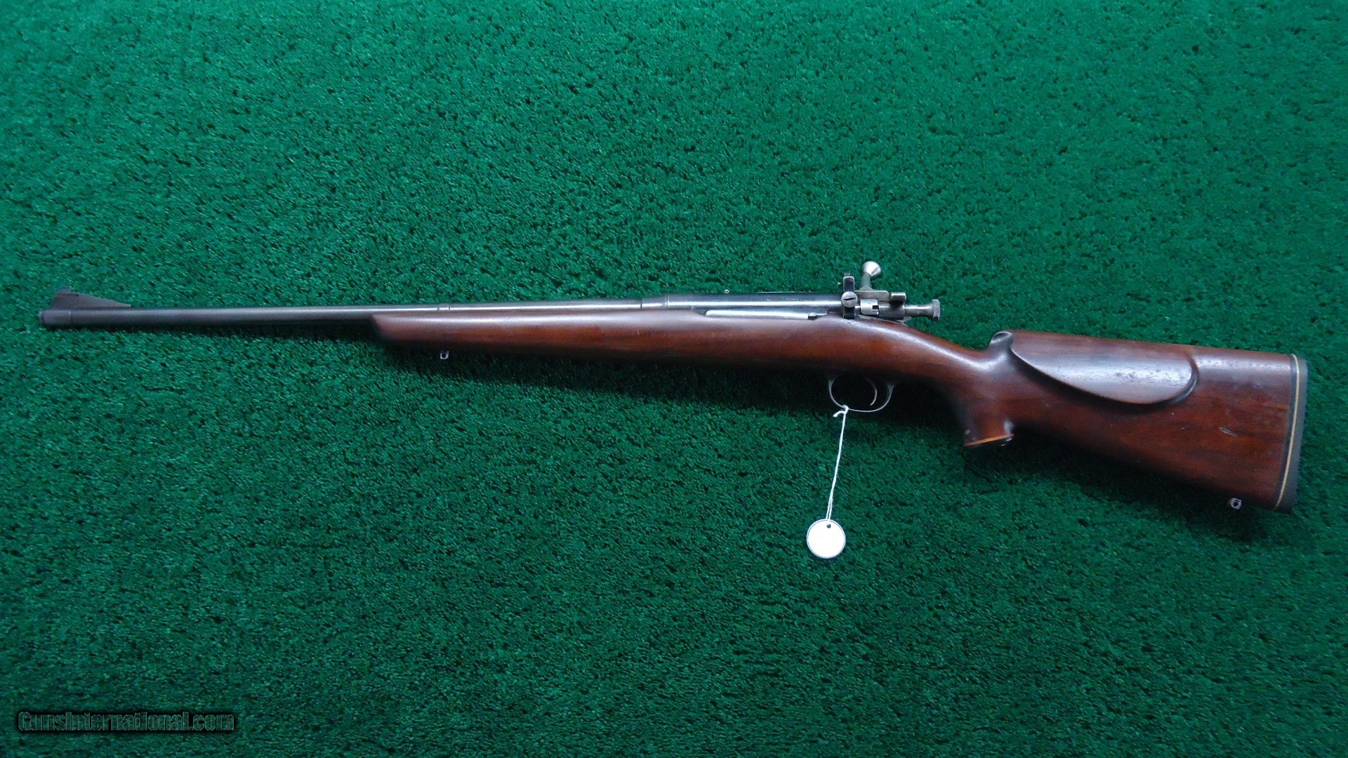 Description: Sporterized Bolt Action Model 1894 rifle with 22 inch round barrel chambered in 30-40 Krag caliber with a very good bore. Barrel has thinning blue and is a blue/gray color. Receiver has most blue remaining with a spot of light corrosion on the magazine . Sights include a ramped front and a Pacific receiver sight. Smooth action. Custom walnut capped pistolgrip stock with cheek piece. BRECKHEIMER recoil pad on the Monte Carlo buttstock. Sling eyes. Made in 1896. Leroy Merz Antique Firearms specializes in antique and vintage Winchesters and other fine American firearms. Since 1965 Mr. Merz has taken part in the world of firearms and has been a contributor to many well known reference books. We have hundreds of additional guns in every price range at our home online. Search for Merz Antiques in google. SOLD Antique: Yes Rifle Caliber: .30-40 Krag |