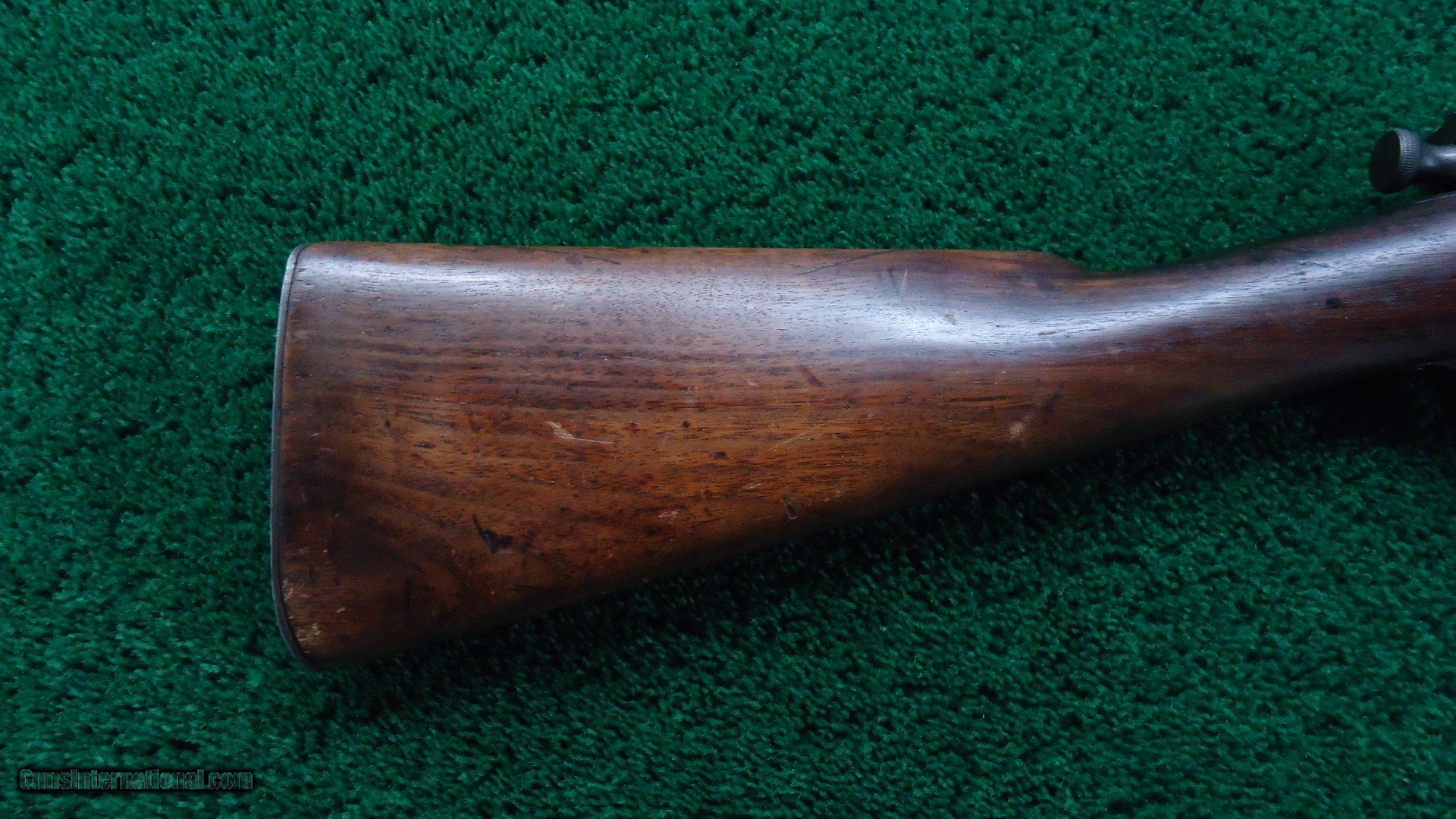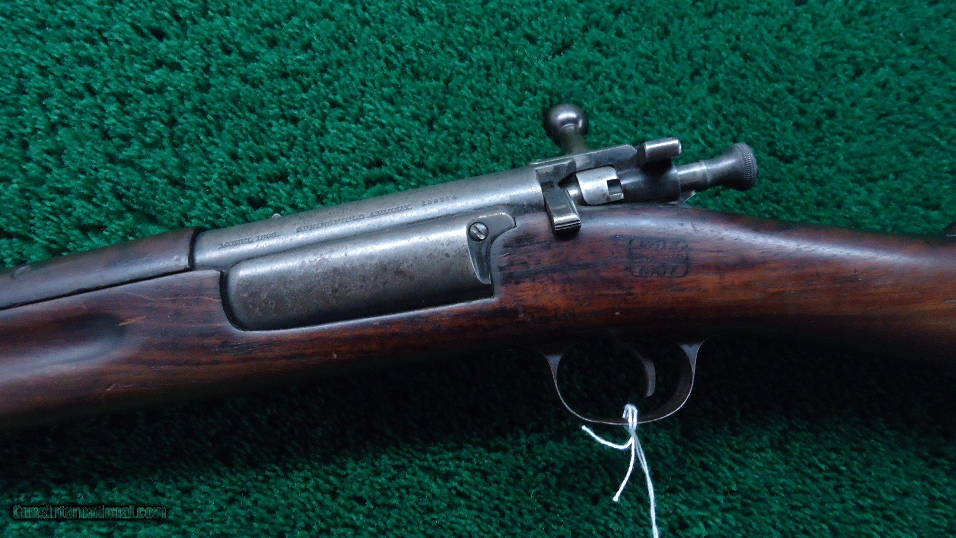 Description: Bolt action Model 1898 Carbine with 22 inch round barrel chambered in 30-40 Krag caliber that has a very good bore with strong rifling. Barrel has about 30% thinning blue remaining while the action is mostly an aged grey color. Walnut stock has several handling bruises but is solid. There is a visible cartouche on the left side and the "P" in a circle behind the triggerguard. This is a good example of one of these hard to come by original 1898 carbines. These are quite rare as there were only 5002 made and this one was made in 1899. Leroy Merz Antique Firearms specializes in antique and vintage Winchesters and other fine American firearms. Since 1965 Mr. Merz has taken part in the world of firearms and has been a contributor to many well known reference books. We have hundreds of additional guns in every price range at our home online. Search for Merz Antiques in google. SOLD Curio/Relic: Yes Rifle Caliber: .30-40 Krag |