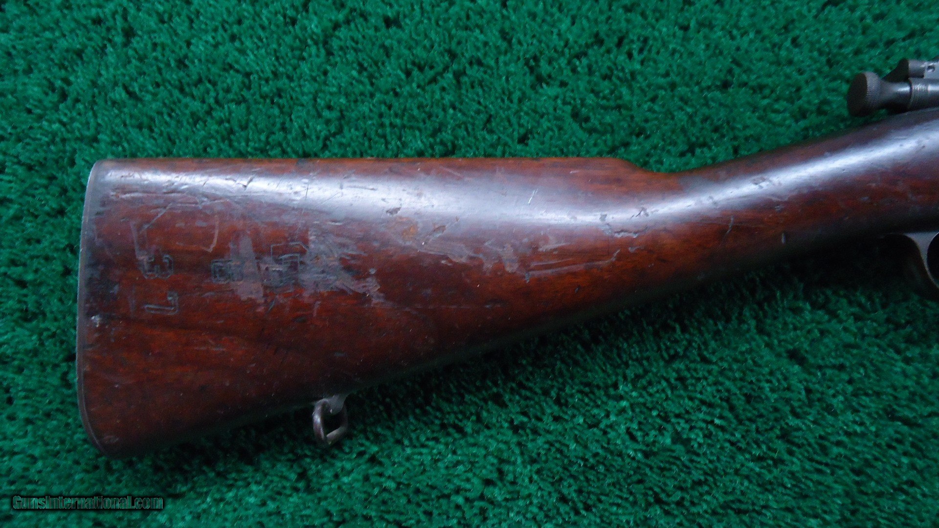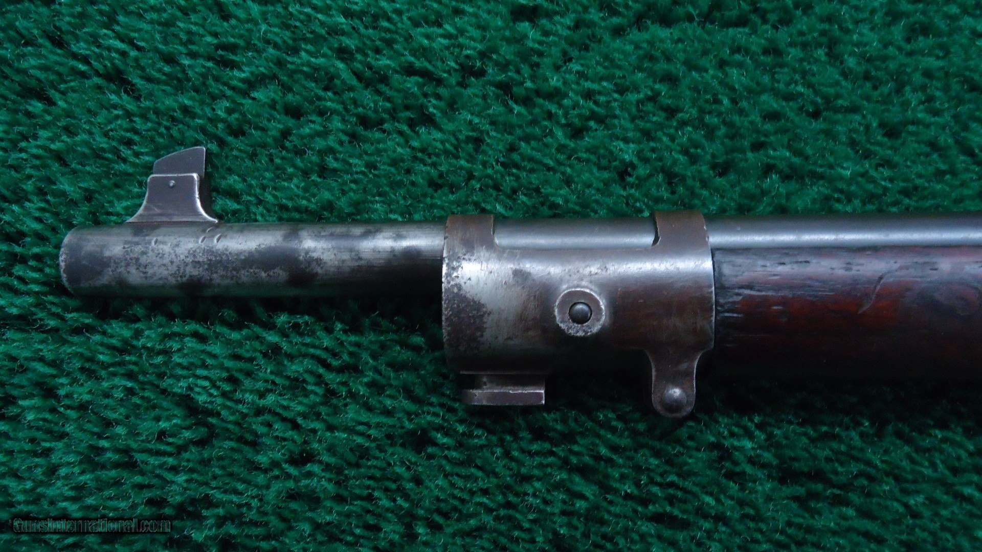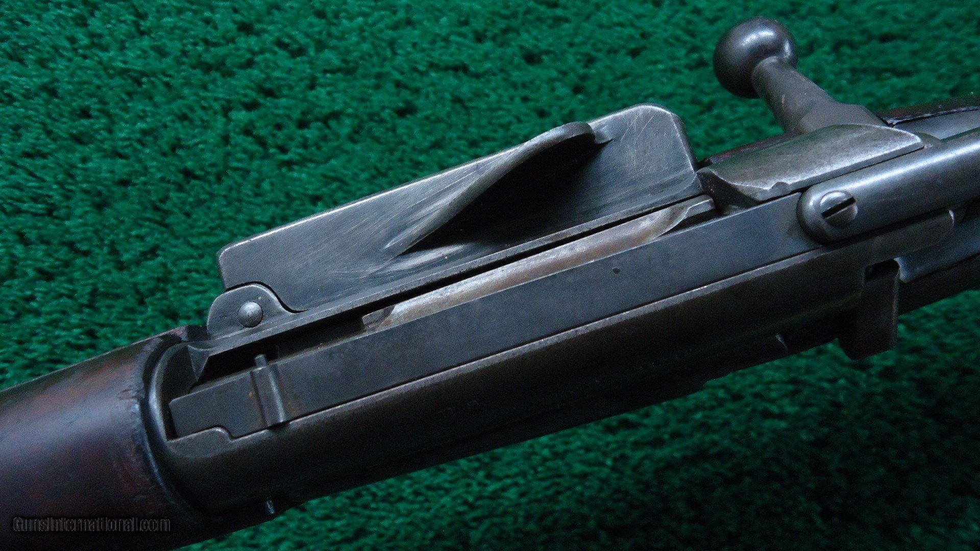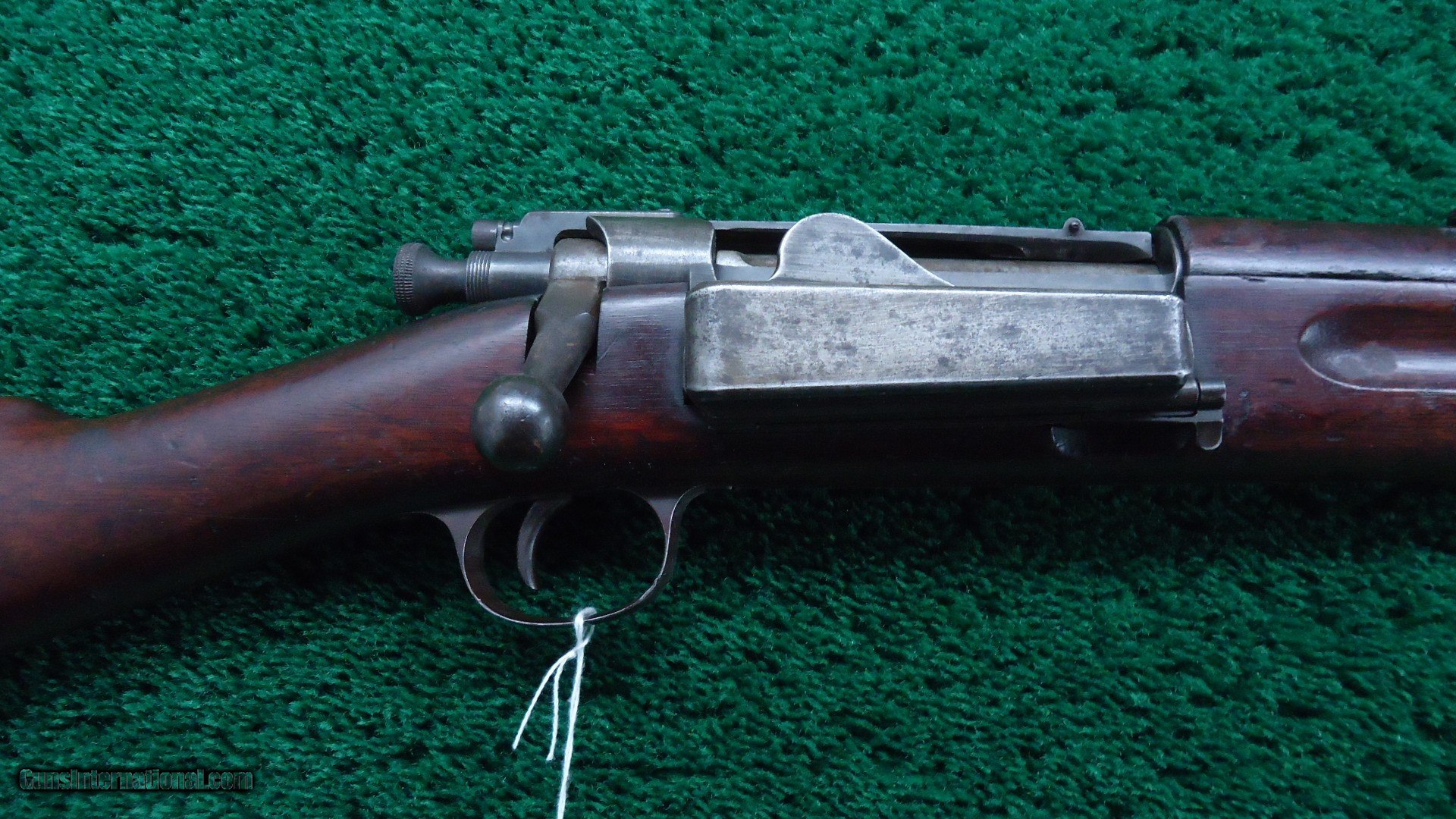 Description: Bolt action Model 1898 Rifle with 30 inch round barrel chambered in 30-40 Krag caliber that has a bore could use a good cleaning but overall has strong rifling. 1902 rear sight. Walnut stocks with a trapdoor buttplate. Type 5 hand guard. Front band has a bayonet lug. Left side of the walnut stock has "JSA-1899" cartouche. Wood is generally good overall. Some handling mars and dings but sound and solid. About 50% blue turning a plum color. Not a bad old military rifle. 188k serial range made in 1899. Leroy Merz Antique Firearms specializes in antique and vintage Winchesters and other fine American firearms. Since 1965 Mr. Merz has taken part in the world of firearms and has been a contributor to many well known reference books. We have hundreds of additional guns in every price range at our home online. Search for Merz Antiques in google. SOLD Curio/Relic: Yes Rifle Caliber: .30-40 Krag |