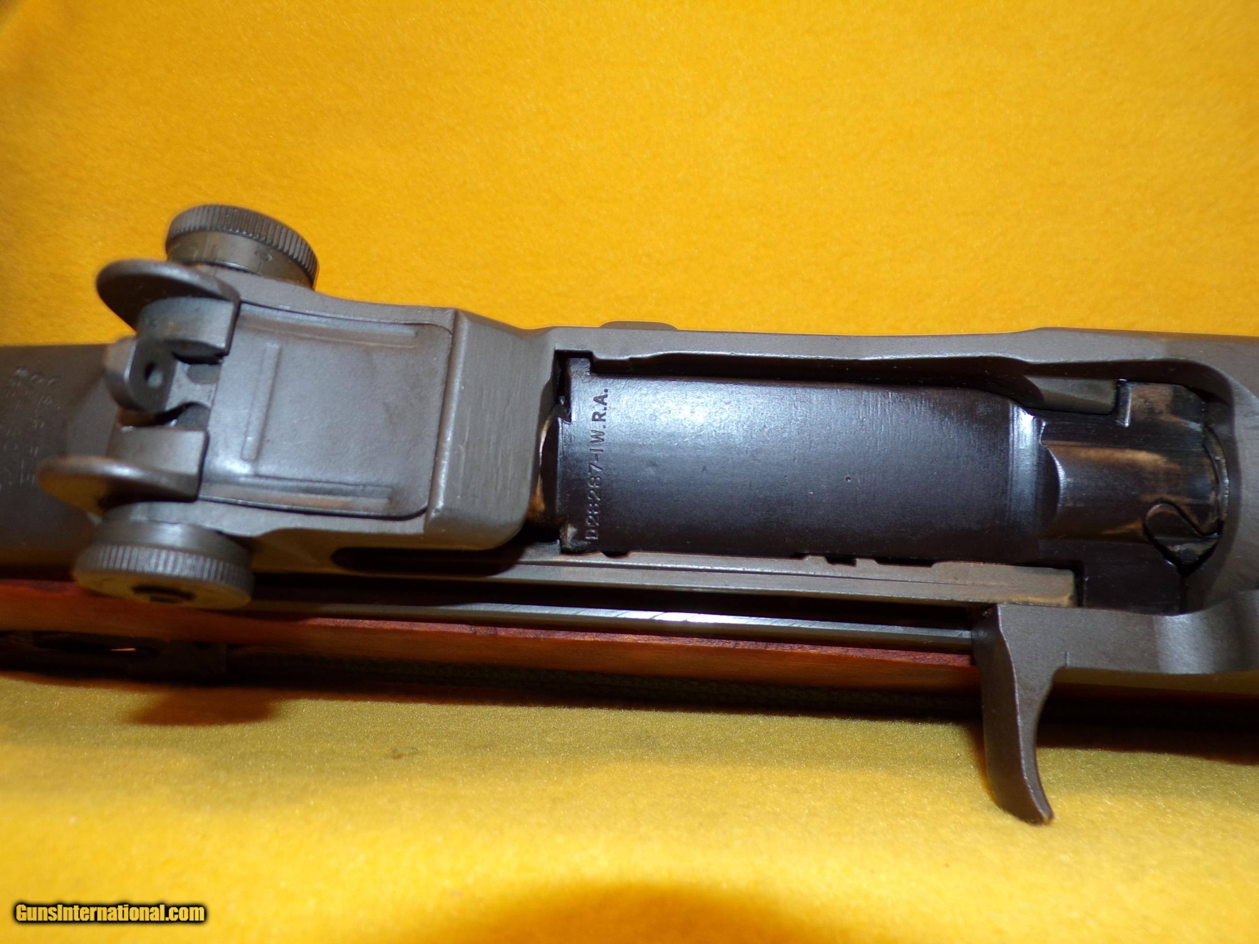 Description: U.S. SPRINGFIELD M1 GARAND IN 30-06 WITH 24" BARREL. COLOR PARKERIZED. CONDITION 98% . SERIAL NUMBER 1084625. U.S. SPRINGFIELD MODEL M1 GARAND IN 30/06 CALIBER, EXEL/GARDNER MASS. IMPORT, NOVEMBER 1942 RECEIVER, BRIGHT SHINY BORE, WOOD IS EXCELLENT, WINCHESTER BOLT AND TRIGGER GROUP, FERRO MARKED (1956 AY P) BARREL, 98% OVERALL CONDITION, OUR STOCK # D1910 SOLD |