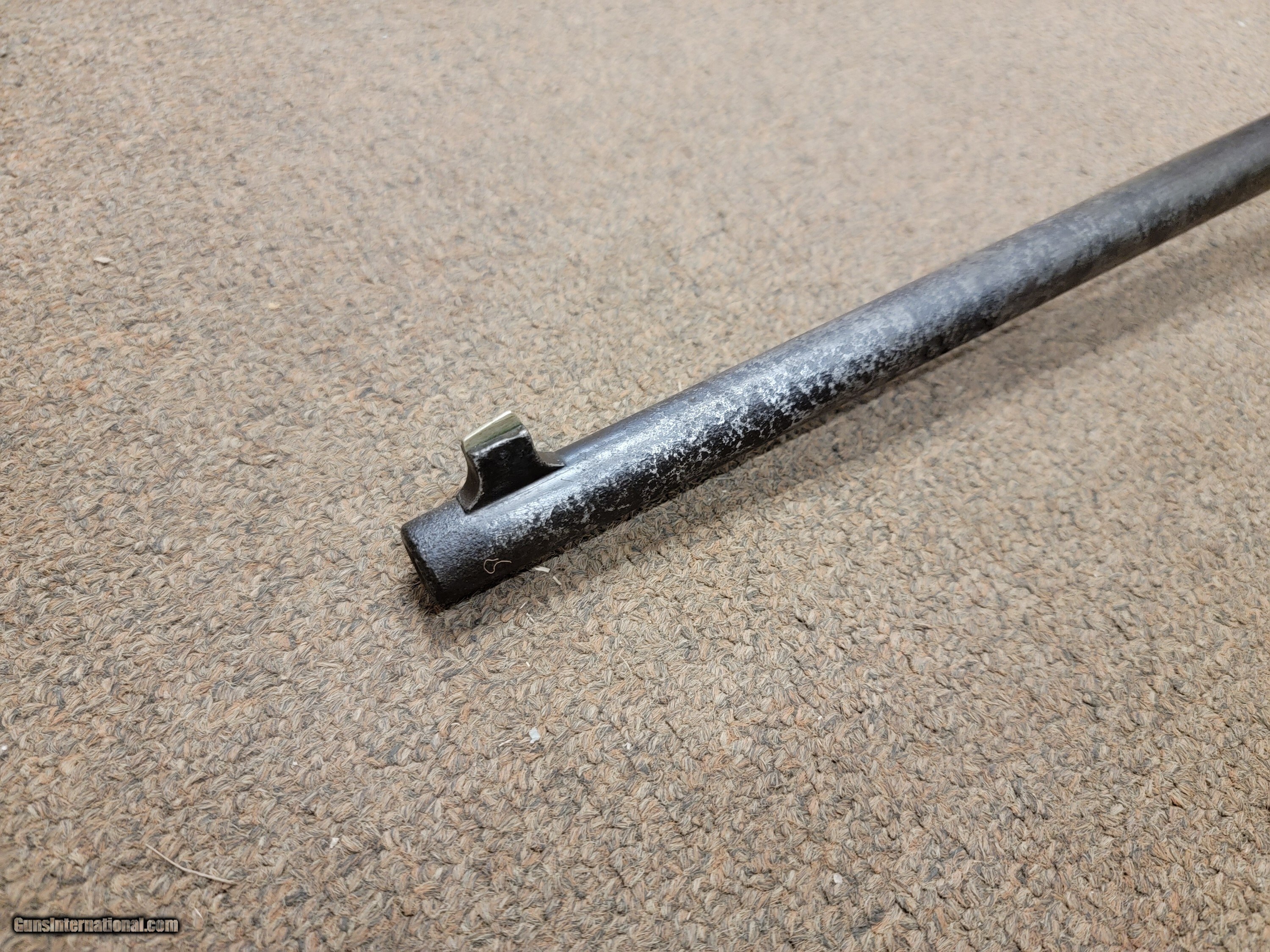 Description: From a nationally known US Springfield Krag collection and author. we present a guaranteed original US Springfield 1899 Krag Carbine barreled action. This Carbine is listed in Springfield Armory Carbine serial number range. Also note that the barrel timing marks are matched and the barrel is correctly proof "P" marked. The bore is excellent and 9/10 mirror bright with excellent rifling. Has a great Carbine "issued" look. Your chance to buy an original 1899 Carbine. You'll need your choice of a stock and rear sight. Restore to a 1899 Calvary carbine, or make a hunting sporting rifle. Layaway available Add 3%for CC payment C+R accepted from most states Questions; Mark msbobbettkimbersinc Curio/Relic: Yes Rifle Caliber: .30-40 Krag Manufacturer: US Springfield Model: 1899 Serial Number: 354xxx Barrel Length: 22 Bore Info: 9/10 excellent rifling Metal Condition: Honest Calvary scabbard Carried ware/look Wood Condition: None Bore Condition: Mirror bright, No pitting or frosting Price: $885.00 Buy Now Contact Seller |