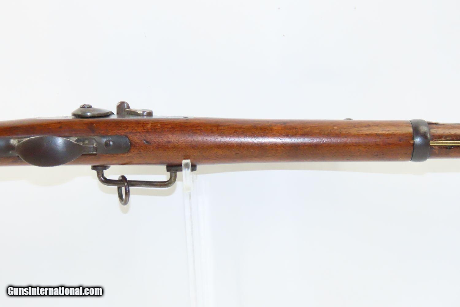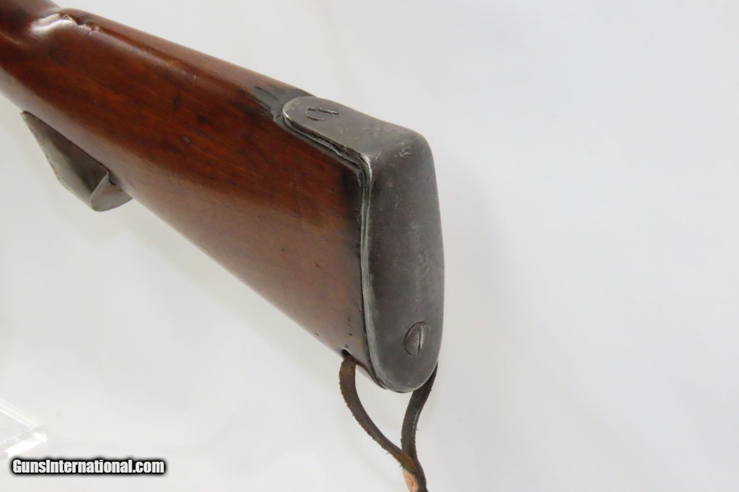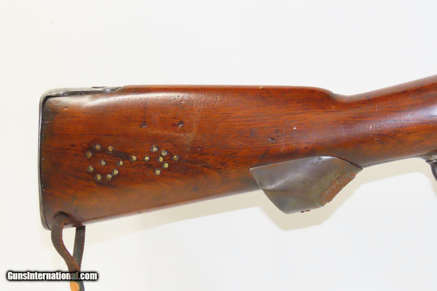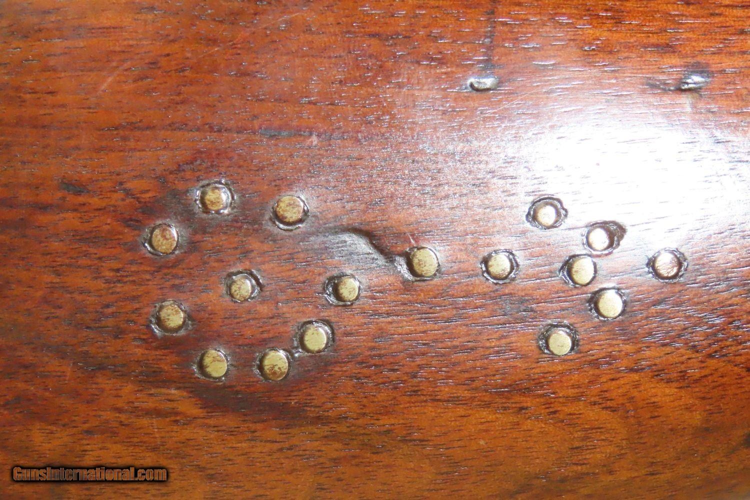 Description: .45-70 GOVT Antique SPRINGFIELD ARMORY 1879 Loading TRAPDOOR SPORTING Rifle With Some Interesting Modifications Here we present an antique U.S. Springfield Model 1879 Trapdoor Rifle, made at the Springfield Armory in Springfield, Massachusetts, circa 1880. This rifle has had the barrel shortened (front sight replaced), as well as the stock at both ends. The butt stock has been reduced so that the length of pull is now only 11 inches. The right side of the stock has a little tack decoration and the toe of the stock has been drilled to accommodate the leather thong with a claw affixed to the end. The front of the receiver has some little remnant of what looks like another type of decoration. Finally, a sling ring bar and pistol grip have been added. Someone really turned this old US military rifle into their own, and it looks like they used it plenty! The overall condition is good. Excellent action. Nice bore with strong rifling. There is a thin, stable crack under and around the sling ring bar; other than that, the walnut stock is solid. “1873” dated trapdoor and lock. Neat brass tack inlays on the right buttstock. This example has a unique steel pistol grip that is sometimes seen on surplus trapdoors. A unique adaptation of the venerable trapdoor Springfield! Own the original! This is a legitimate antique and not a reproduction. Barrel is 26-1/4 inches. Caliber: .45-70 Government Overall condition as seen in photos. Very Fast. Very Safe. FREE SHIPPING WORLDWIDE. Delivered directly to your door by express mail! Guaranteed AUTHENTIC & Includes CERTIFICATE OF AUTHENTICITY. ancestryguns $1235 #210445 SOLD Curio/Relic: Yes Antique: Yes |