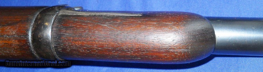 Description: ANTIQUE 1873 U.S. SPRINGFIELD DATED LOCK PLATE TRAPDOOR .45-70 CALIBER INDIAN WARS ERA SADDLE RING CARBINE. 22" BARREL, GOOD BORE WITH DISTINCT RIFLING THAT WILL CLEAN BETTER. METAL SURFACES APPEAR TO HAVE BEEN REDONE AT SOME POINT AND RETAINS OVER 90% BLUE FINISH, GOOD FACTORY MARKINGS. 1873 DATED BREECH BLOCK . WALNUT STOCK IN VERY GOOD CONDITION AS LIGHTLY CLEANED, NO VISIABLE CARTOUCH or FIRING PROOF. MINIMAL HANDLING MARKS. "C" MARKED BUFFINGTON REAR SIGHT. ACTION IS CRISP & TIGHT WITH 3 CLICK HAMMER. MAY PROVE TO BE AN ACCURATE SHOOTER. VERY AFFORDABLE EXAMPLE FOR YOUR COLLECTION OF MILITARY ARMS, AS PICTURED. SHIPS DIRECT TO BUYER ANYWHERE THAT'S OK ! $45.00 S&H EAST OF THE BIG RIVER $50.00 BEYOND PRIORITY INCLUDES $500.00 POSTAL INSURANCE. SOLD Antique: Yes Manufacturer: U. S. SPRINGFIELD Model: 1873 Caliber Info: .45-70 Bore: VERY GOOD Condition: GOOD AS PICTURED Wood Condition: AS PICTURED |