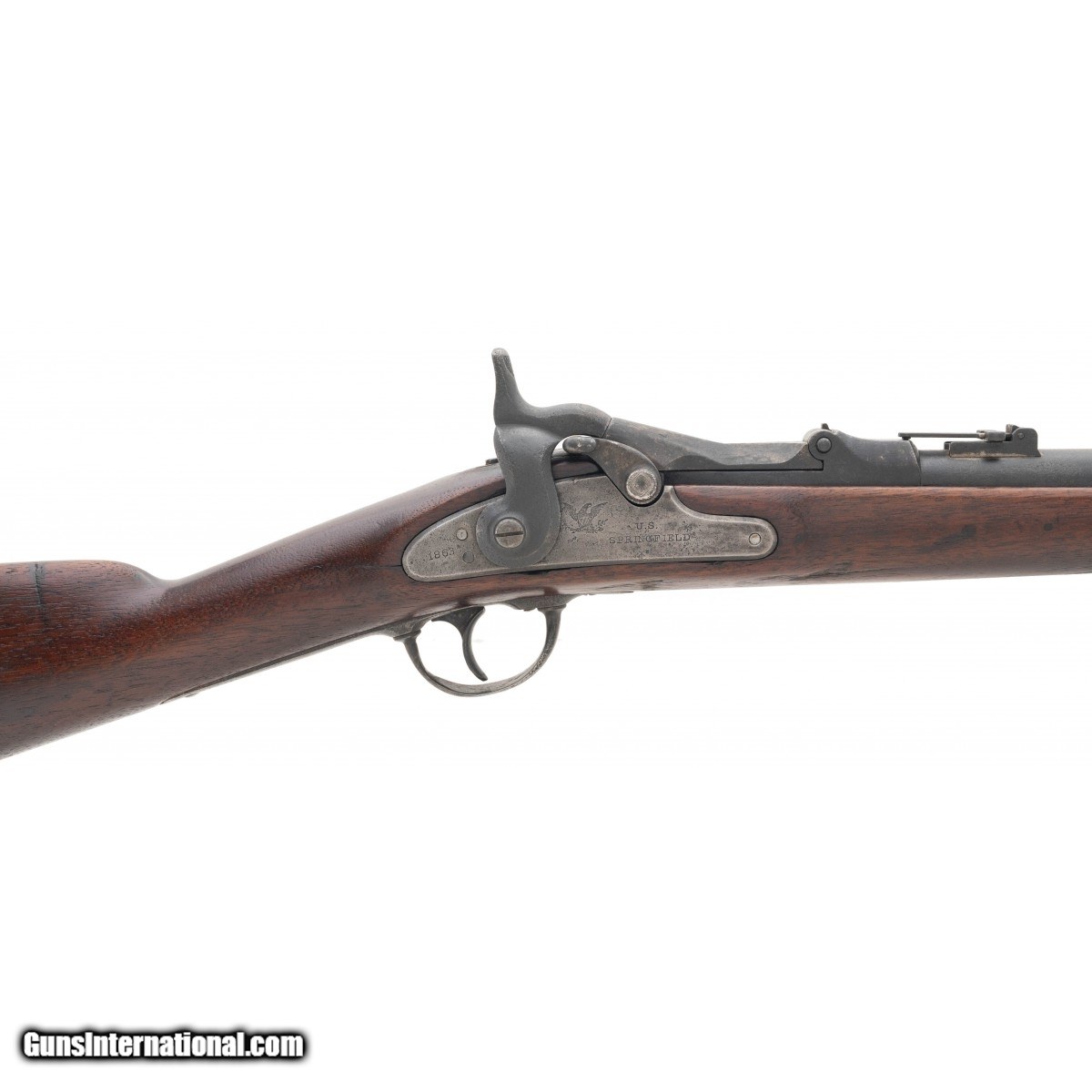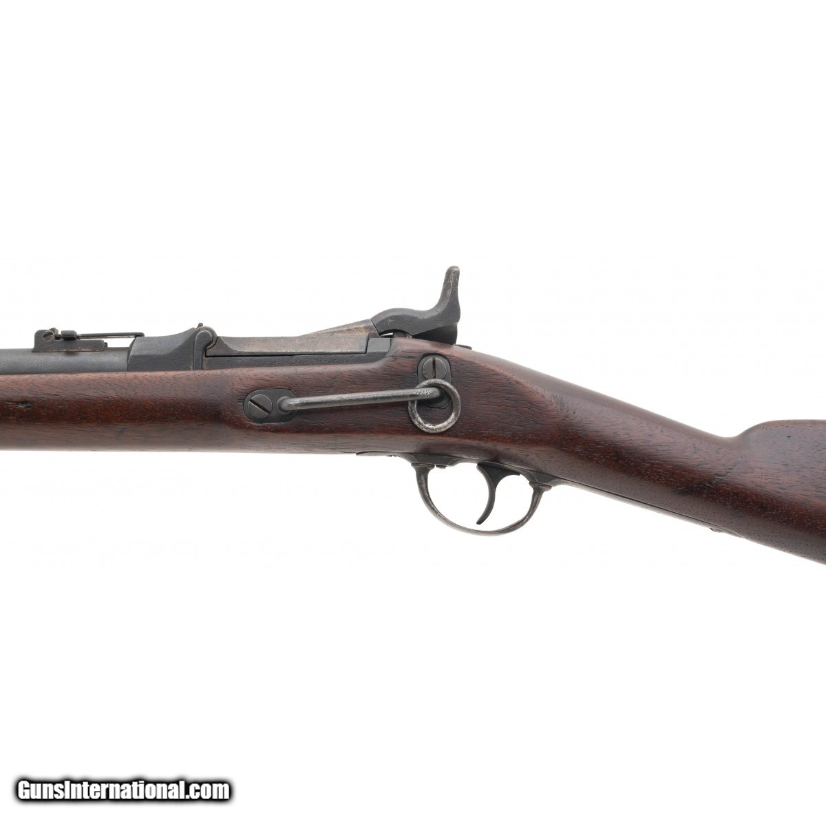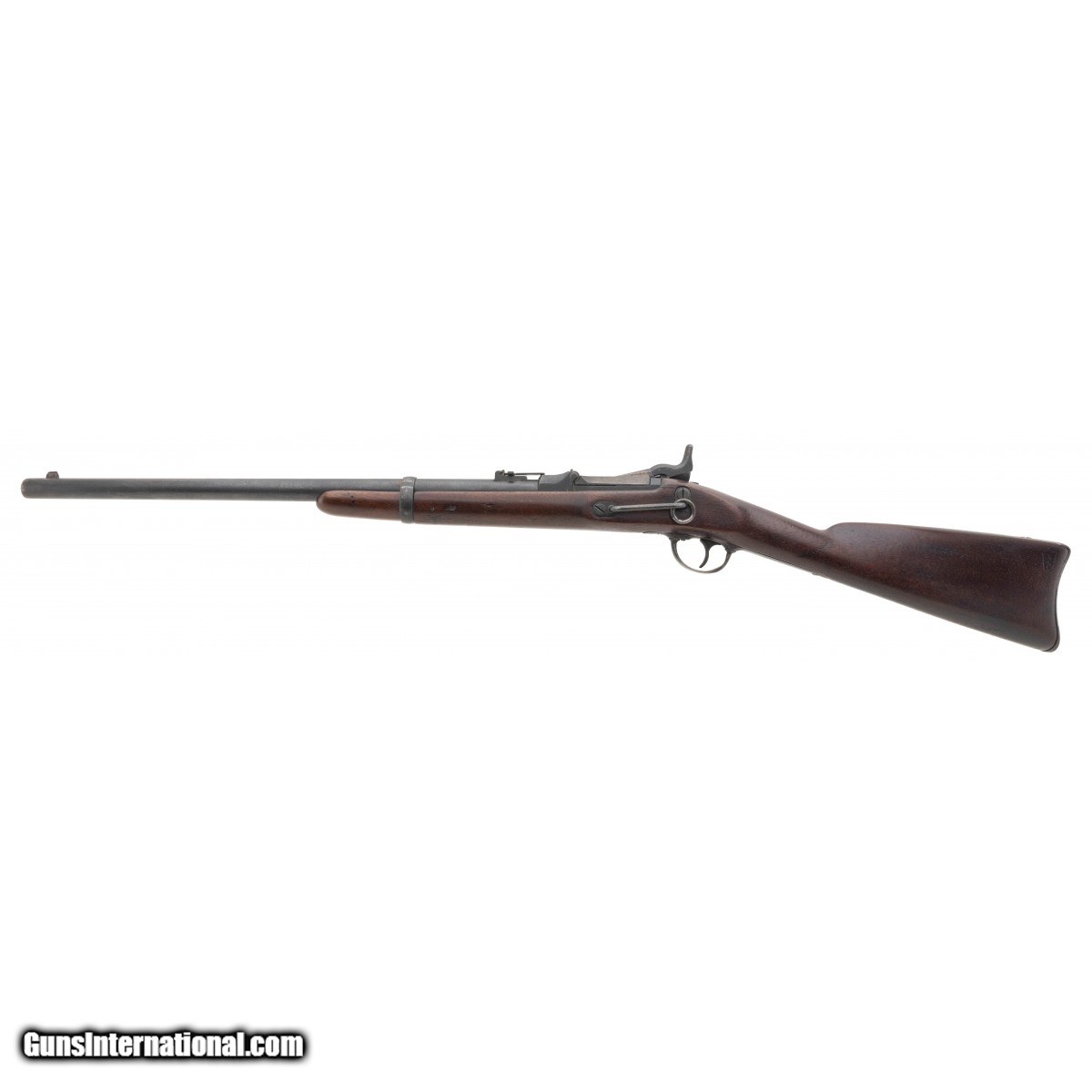Description: " Faux U.S. Springfield Model 1870 trapdoor carbine chambered in 50-70. Metal is a grey patina, breech is marked 1870. Barrel is 22"" in length, bore is fair with pitting noted in the grooves. Action functions correctly. Orginal 1870 carbines fetch high prices. Here is a chance to own a great looking example. SOLD Antique: Yes |