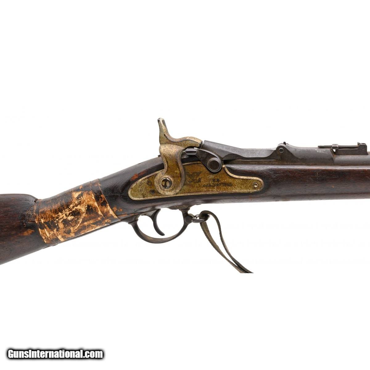 SN: 31261. Made circa early 1870's. 50-70 Govt. with a 32.5"" barrel. Bore is dull with moderate rifling. U.S. breech loading rifle. Rifle has a dark brown patina noted throughout. U.S. markings are noted on the breech block and top of butt plate. Stock shows handling wear throughout with chips, scratches and dings noted. A crack is noted on both sides of the wrist with leather wrapped around the wrist. Rifle comes with sling. Overall fair condition. (Consignment)