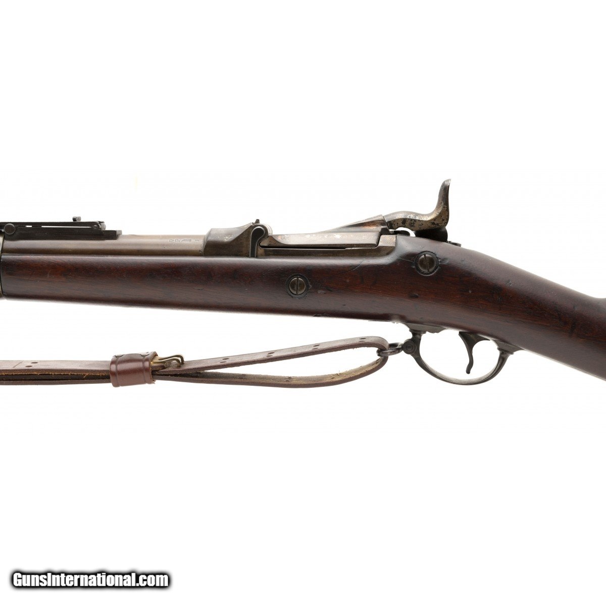 Description: " US Military rifle made in the late 1880s. Metal has a mostly brown patina. Wood is very good with some nicks and dings. Bore is excellent. Good to very good overall condition. Reasonably priced. Comes with a reproduction sling. SOLD Antique: Yes |