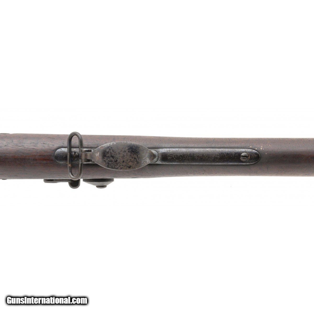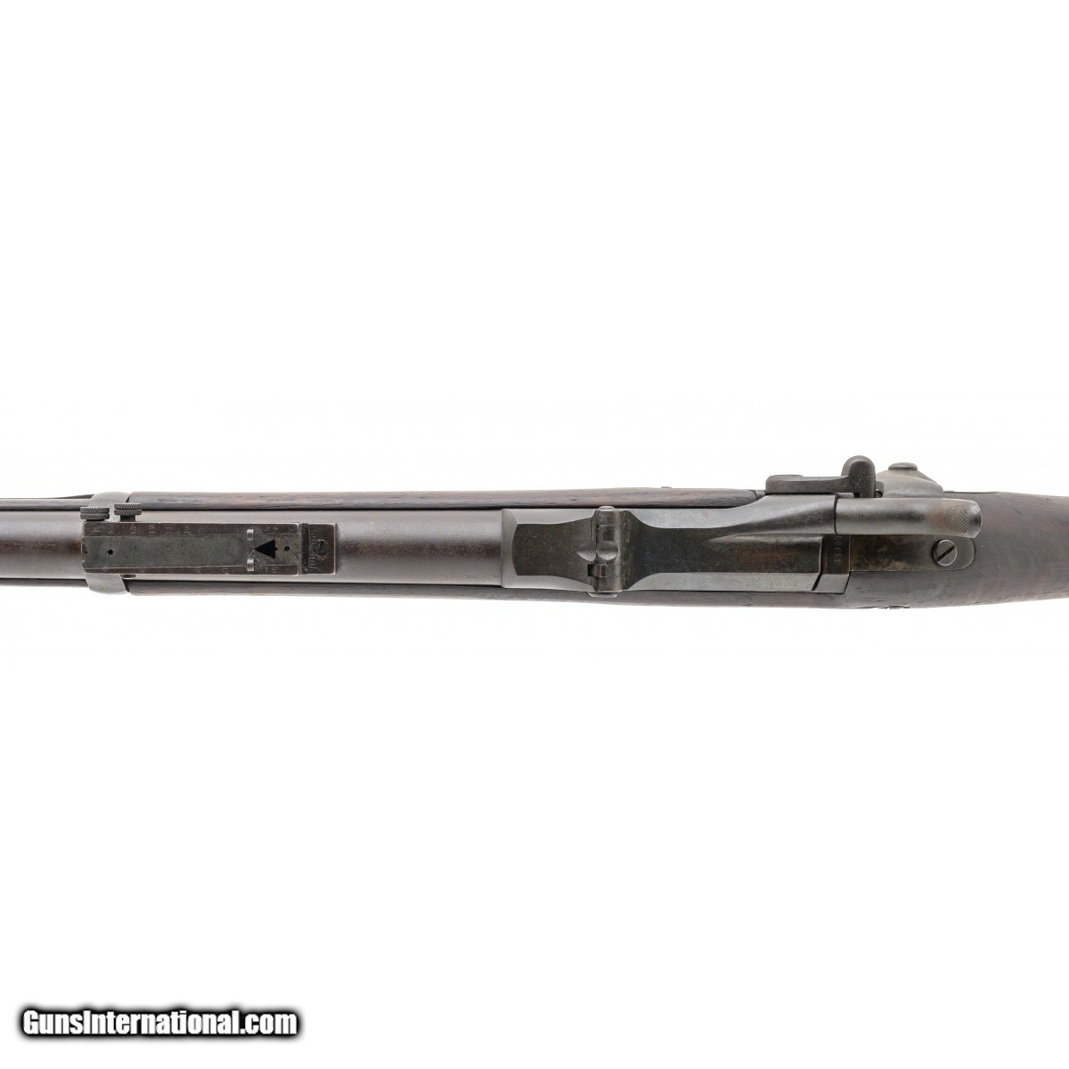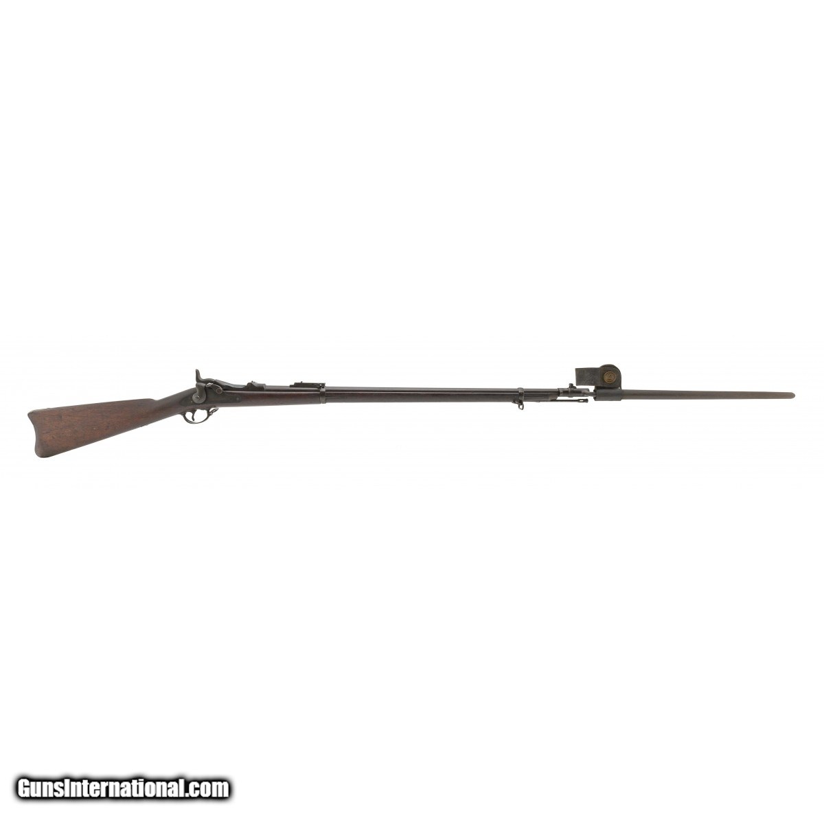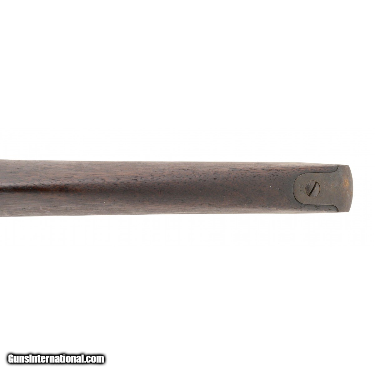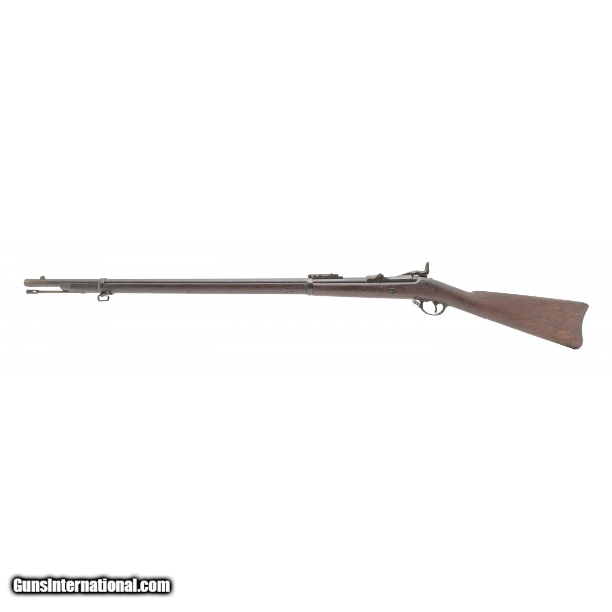 Description: " SA: 329559. Made in 1886 with a 32.5-inch barrel & chambered for the .45-70 Government cartridge. Overall good condition with a bright bore with strong rifling & a wood stock that is in better shape than you would expect for a military service rifle that is more than a century old. The stock has some dents & dings but it is otherwise solid & serviceable. A maker cartouche is faintly visible on the left side of the stock just above the trigger. Rifle is equipped with a Buffington rear sight assembly & it comes with a cleaning rod as well as a 21-inch Model 1873 socket bayonet with metal scabbard & belt hanger. Consignment SOLD Antique: Yes |