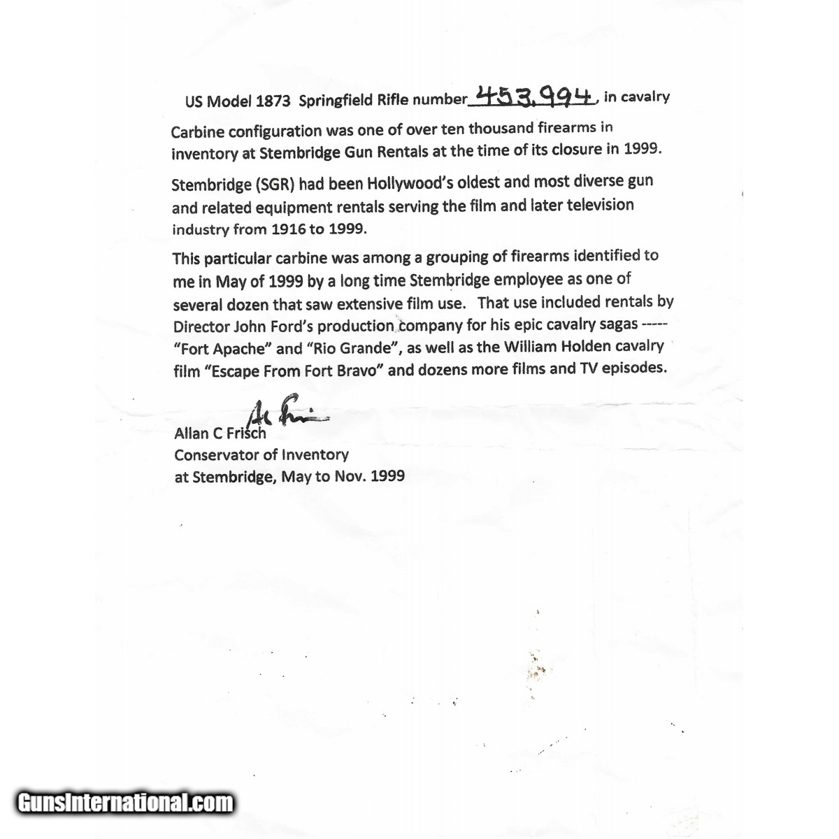 "Stembridge Studio Used Springfield Trapdoor Carbine Movie Gun (AL7504)
