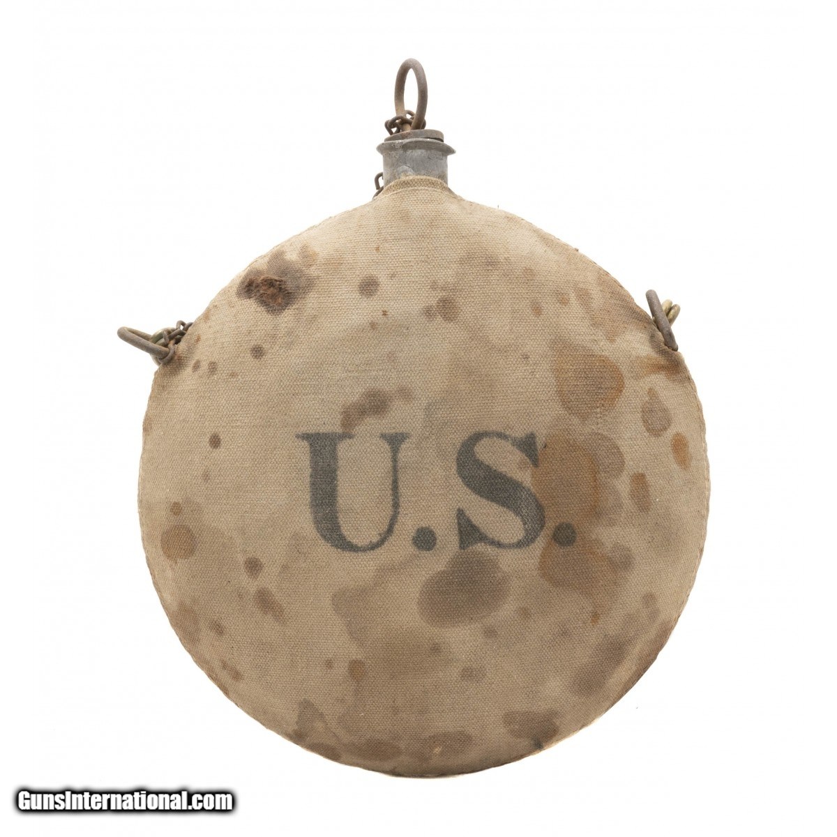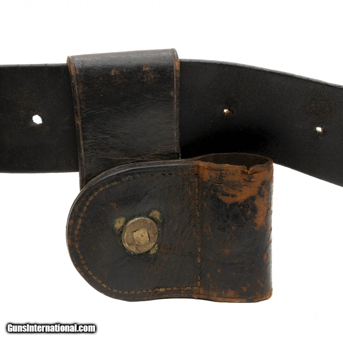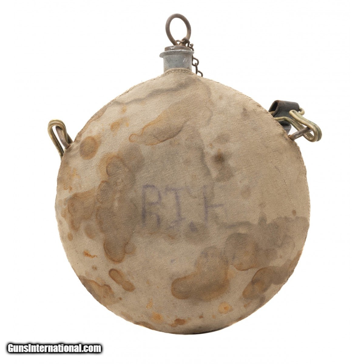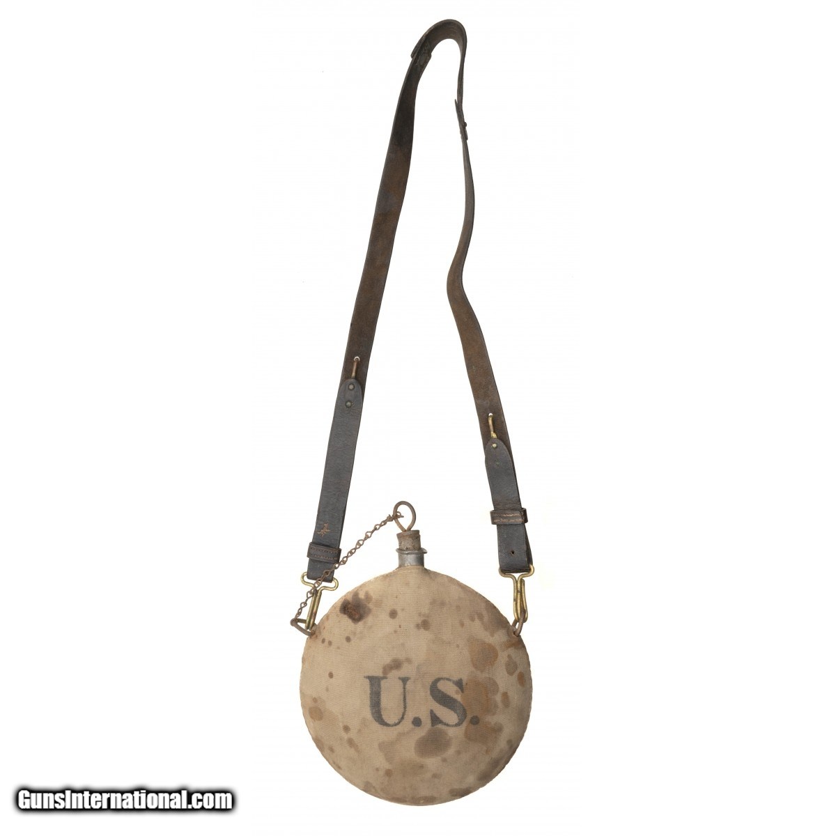 Description: " This historical set up comes with the inessentials an Infantry soldier would have carried during his time at the fort. Kit comes with an U.S. Pattern Model 1878 canteen with sling. Outside cover does so staining but the ""U.S."" is still visible. The original cork is also present. Sling is in over good condition with flaking noted on the surface. 4TH Model Mckeever Cartridge box in overall good condition. Box is chambered for 45-70 and was manufactured at the Watervliet Arsenal. Leather is still supple with some flaking noted. Indian Wars period US belt buckle. Original leather is very good with some crazing. Belt buckle has an aged mellow patina and looks great, also attached is a standard issued bayonet and scabbard in overall very good condition with some flaking noted on the leather. Now for the best part! This 45 Government (45-70) trapdoor Model 1879 rifle was made in 1882. The 32 5/8"" barrel has an excellent bore. It has the standard V over P over eagle inspection and proof marks. The correct buckhorn rear sight is marked R for rifle. It still retains its original headless attaching screws. The breechblock is correctly marked U.S. over MODEL over 1873. The lock plate is marked US over SPRINGFIELD with an eagle forward of the hammer. All the metal has a smooth blue-brown patina with the breechblock having visible case colors. The stacking and sling swivels and ramrod are present. The stock is good with a visible firing proof and strong SWP over 1882 final inspection stamp on the left wrist. It has the nicks, cents, and scrapes expected of an issued Indian Wars gun. The action functions correctly. Original condition trapdoor rifles of this period are surprisingly hard to find. SOLD Antique: Yes |
