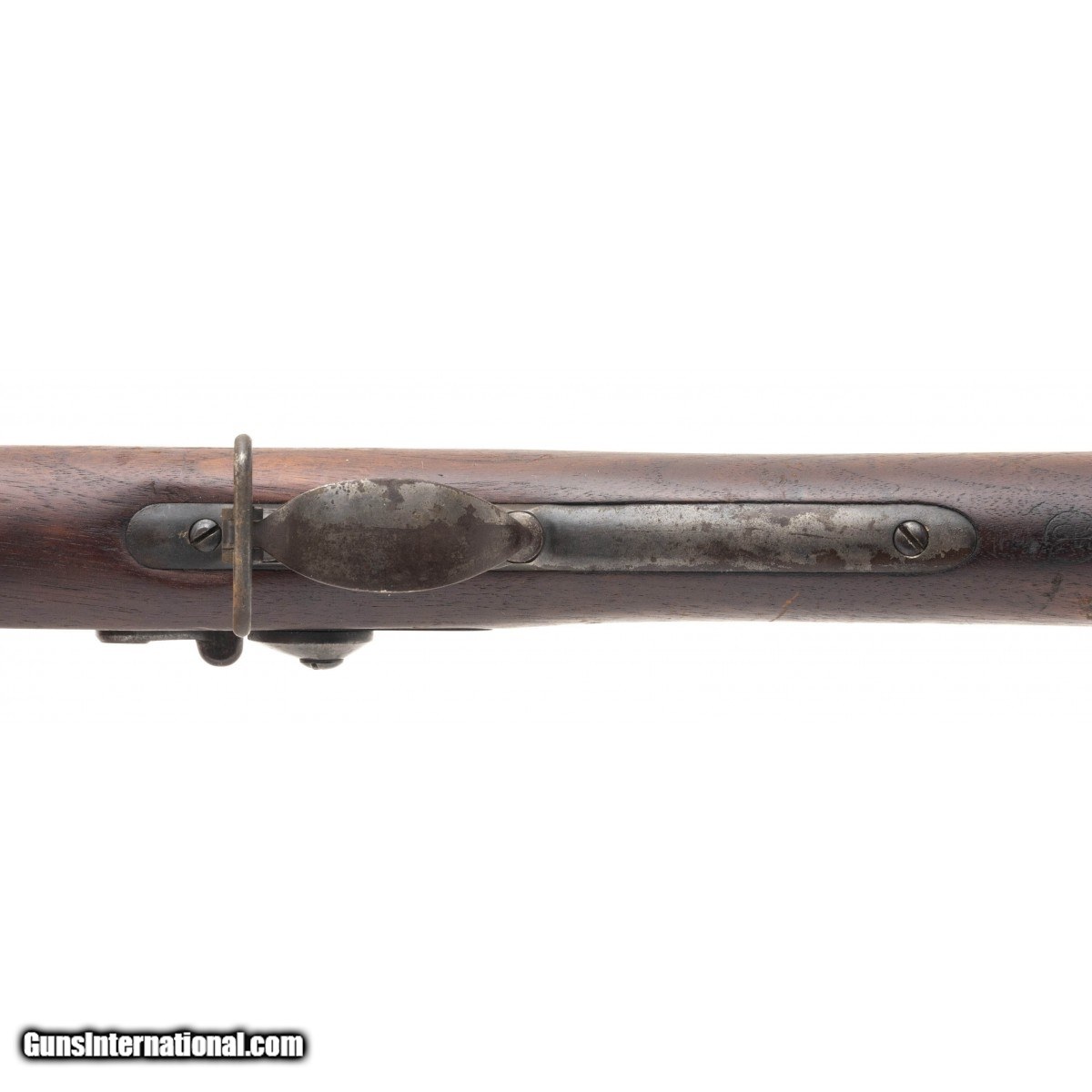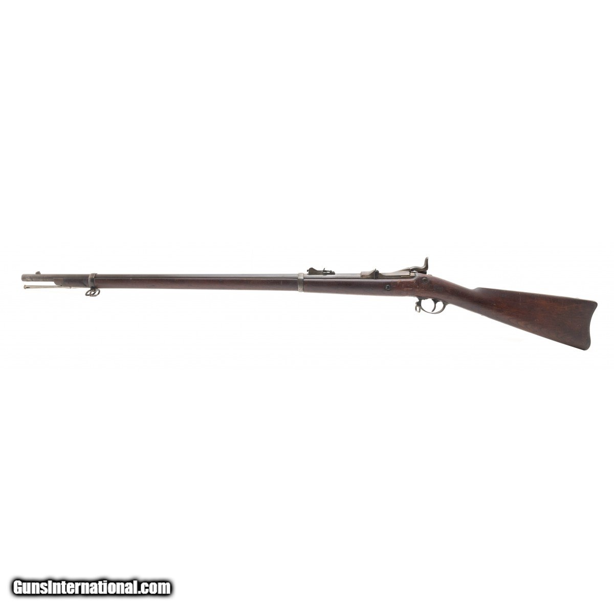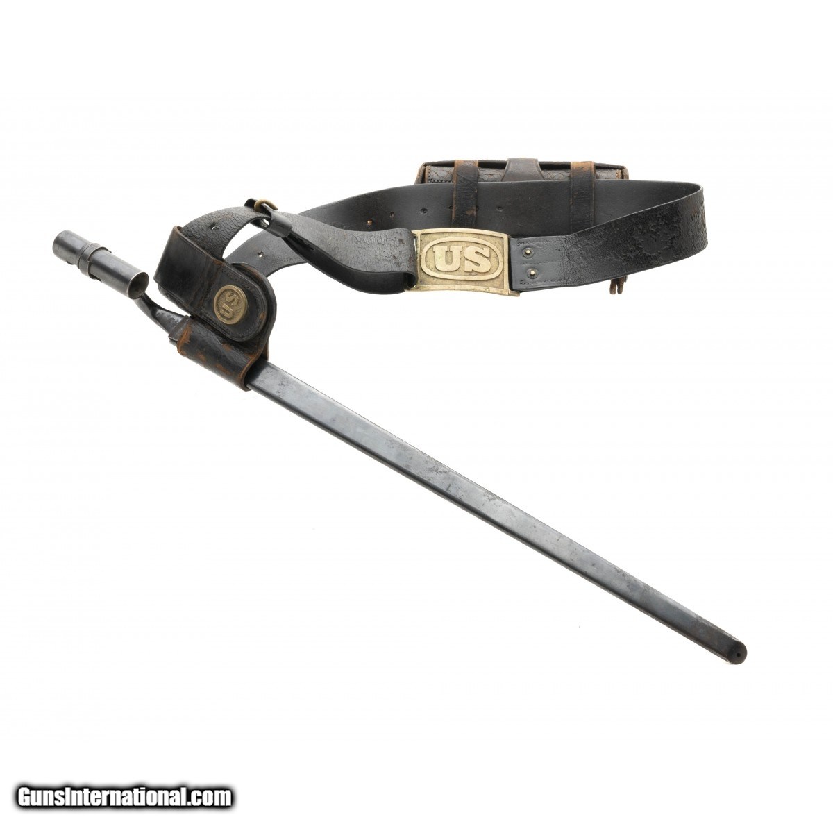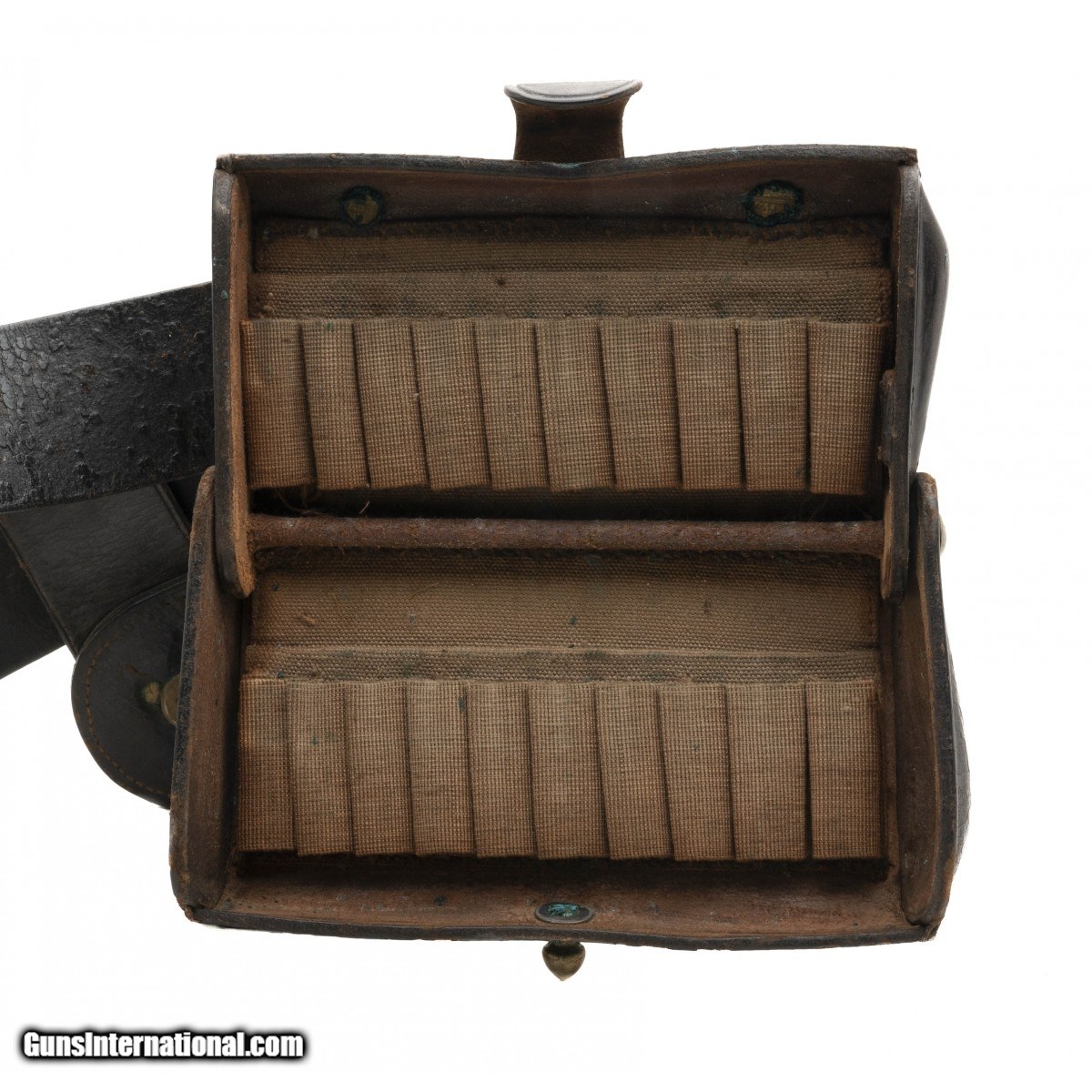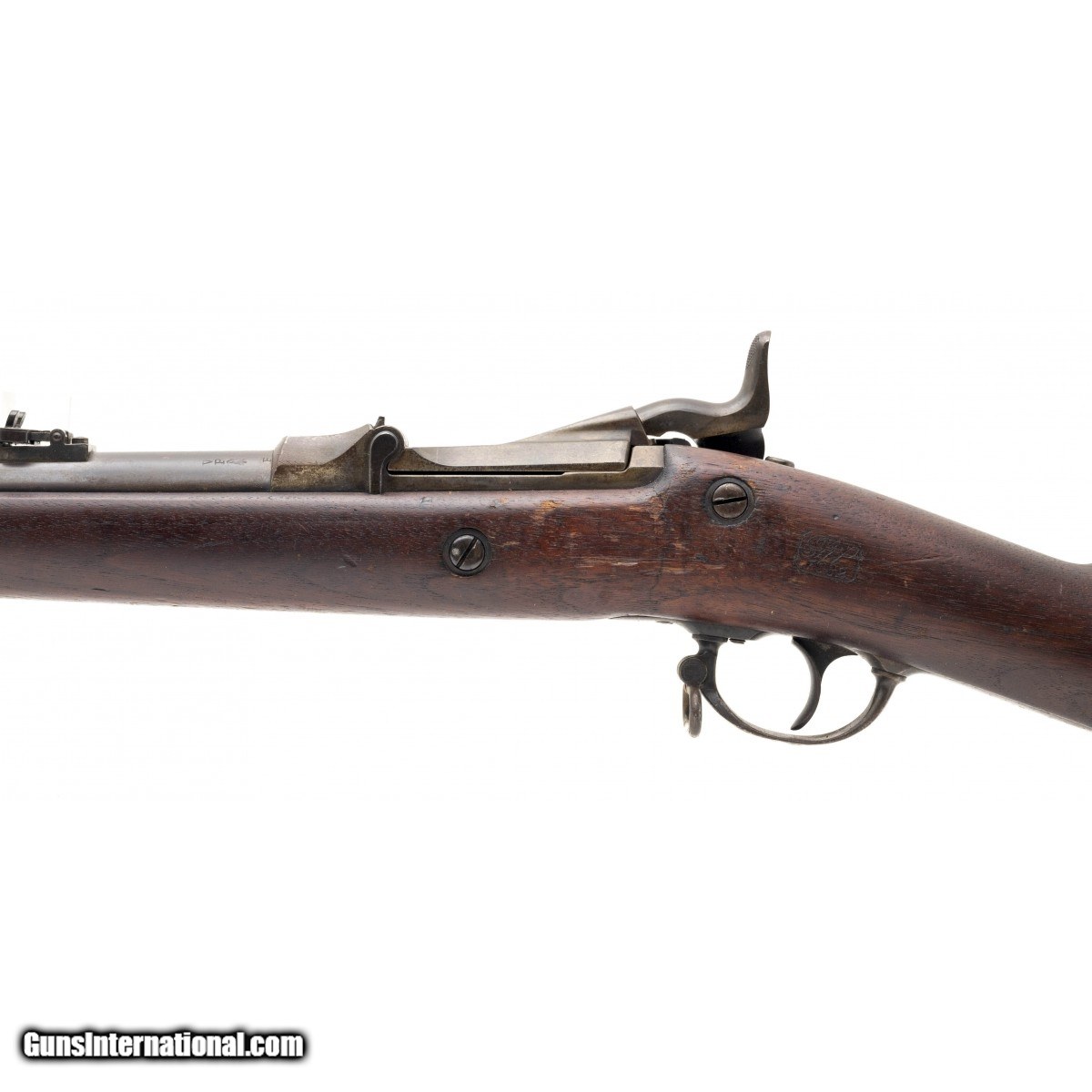Description: " This historical set up comes with the inessentials an Infantry soldier would have carried during his time at the fort. Kit comes with an U.S. Pattern Model 1878 canteen with sling. Outside cover does so staining but the ""U.S."" is still visible. The original cork is also present. Sling is in over good condition with flaking noted on the surface. 4TH Model Mckeever Cartridge box in overall good condition. Box is chambered for 45-70 and was manufactured at the Watervliet Arsenal. Leather is still supple with some flaking noted. Indian Wars period US belt buckle. Original leather is very good with some crazing. Belt buckle has an aged mellow patina and looks great, also attached is a standard issued bayonet and scabbard in overall very good condition with some flaking noted on the leather. Now for the best part! This 45 Government (45-70) trapdoor Model 1879 rifle was made in 1882. The 32 5/8"" barrel has an excellent bore. It has the standard V over P over eagle inspection and proof marks. The correct buckhorn rear sight is marked R for rifle. It still retains its original headless attaching screws. The breechblock is correctly marked U.S. over MODEL over 1873. The lock plate is marked US over SPRINGFIELD with an eagle forward of the hammer. All the metal has a smooth blue-brown patina with the breechblock having visible case colors. The stacking and sling swivels and ramrod are present. The stock is good with a visible firing proof and strong SWP over 1882 final inspection stamp on the left wrist. It has the nicks, cents, and scrapes expected of an issued Indian Wars gun. The action functions correctly. Original condition trapdoor rifles of this period are surprisingly hard to find. SOLD Antique: Yes |