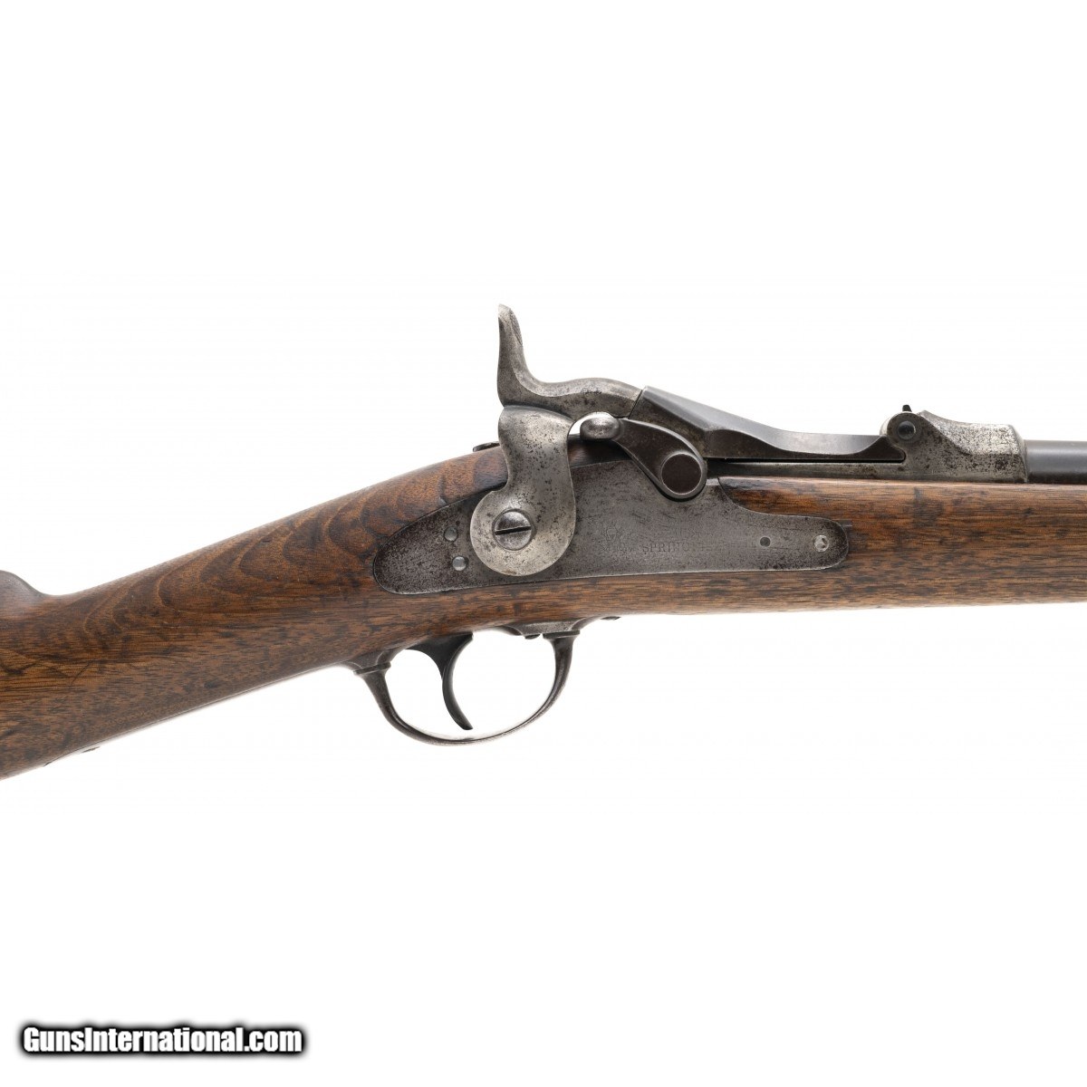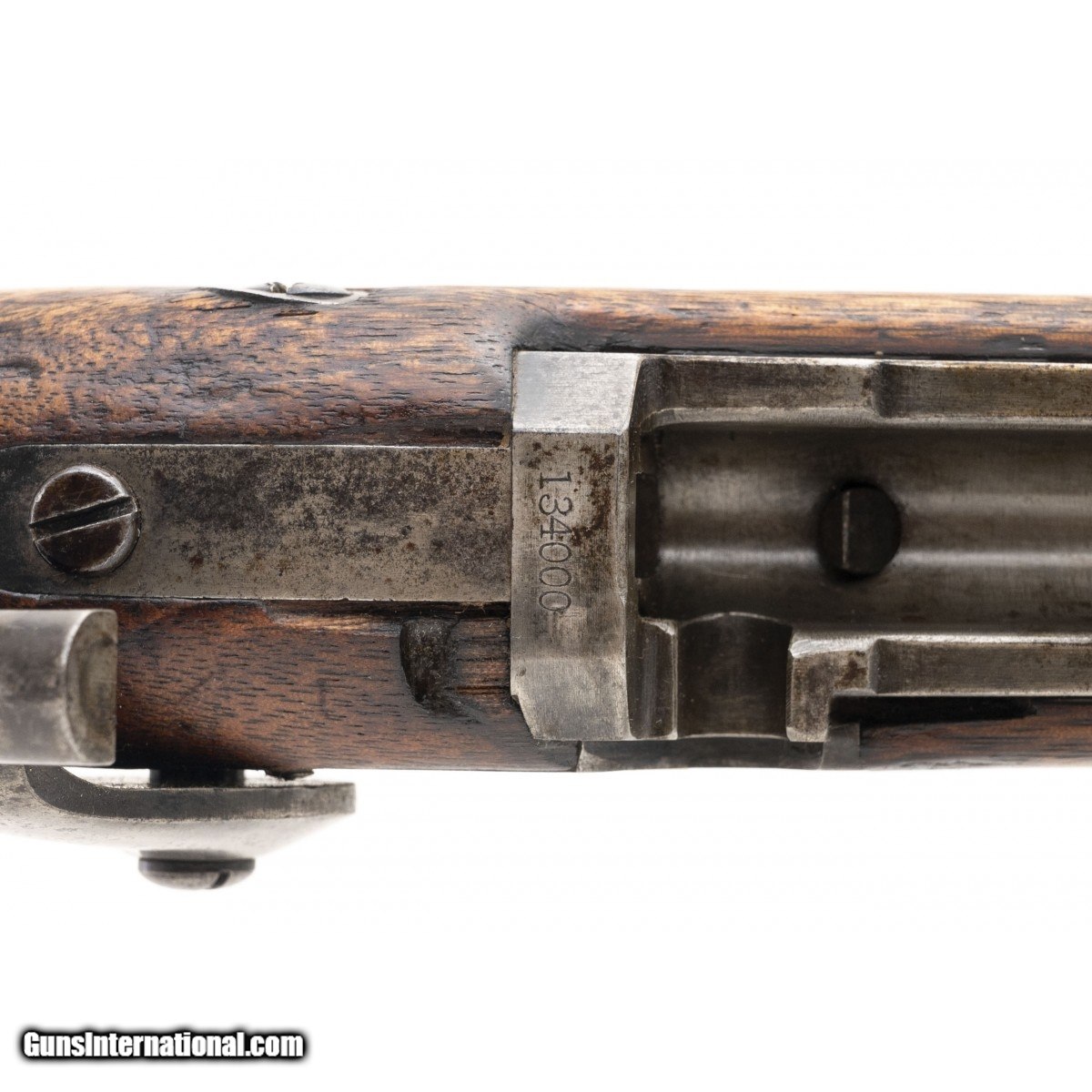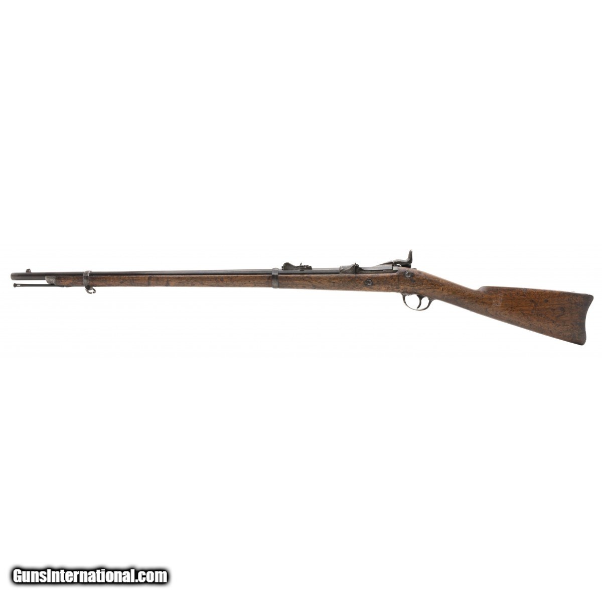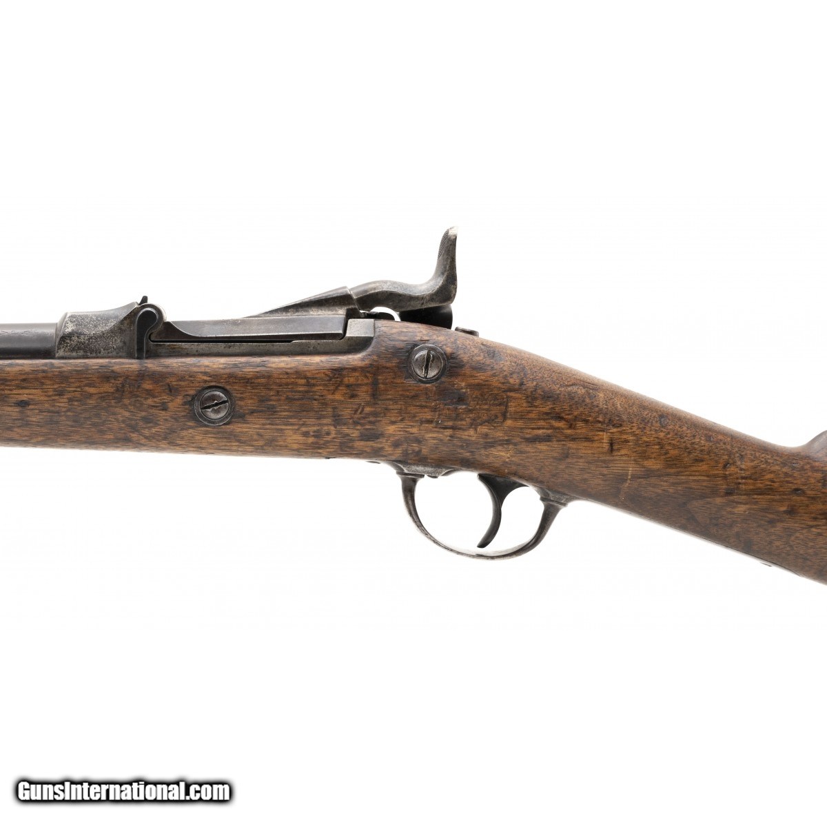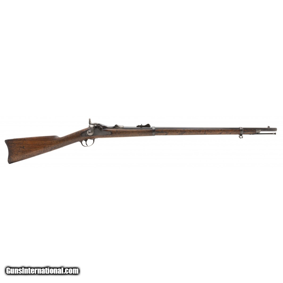 Description: " Serial No.13400 .45-70 29.5"" round barrel U.S. Springfield Model 1873 cadet rifle in overall fair condition. Metal is a dark brown turning plum, lock plate is grey with pin-prick oxidation visible. Wood shows dings, scratches and mars with a faint cartouche noted. Bore is bright and shiny with strong rifling. SOLD Antique: Yes |