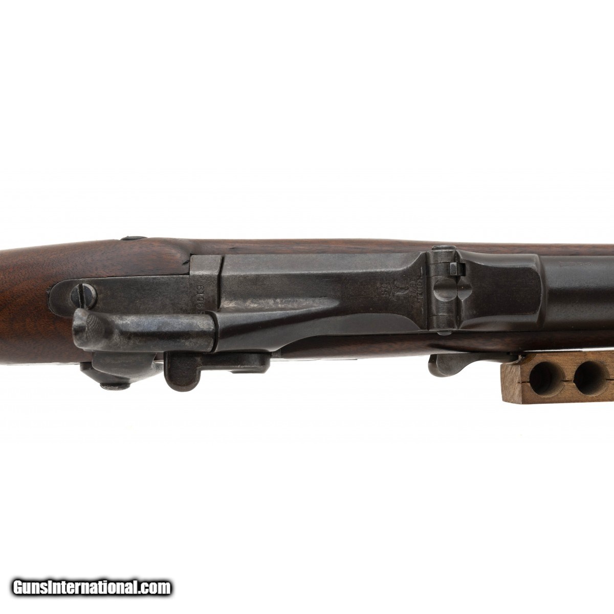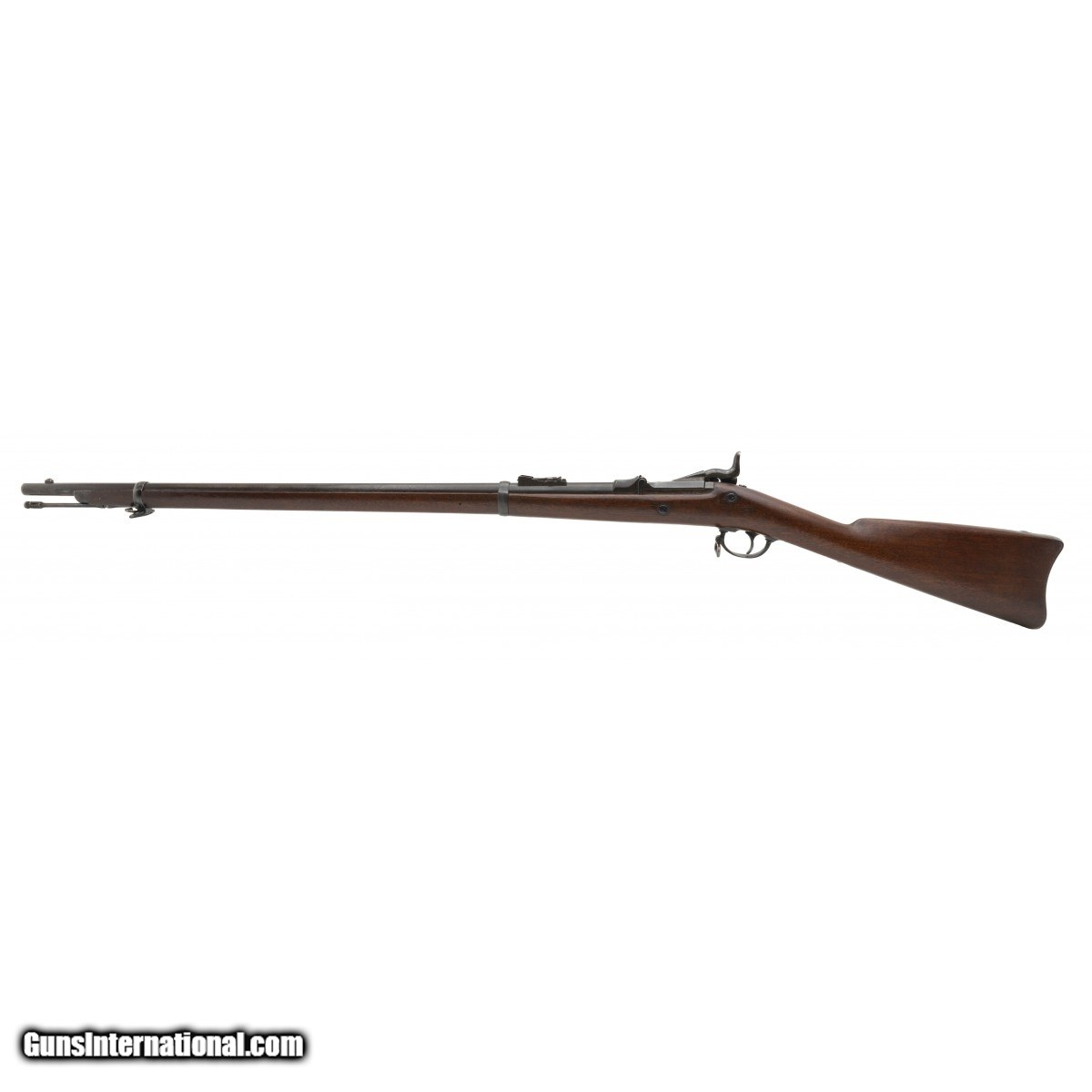 Description: " Serial number 61768 U.S. Springfield Model 1873 Trapdoor rifle chambered in .45-70 with a 32.5"" barrel. Rifle has the rare Metcalf device, metal is a brown patina. Wood is good with a sharp cartouche visible. Bore is good with strong rifling present. Action functions correctly. Rifle is in the correct serial range. SOLD Antique: Yes |