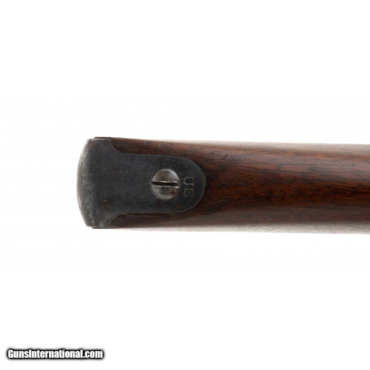 Serial number 61768 U.S. Springfield Model 1873 Trapdoor rifle chambered in .45-70 with a 32.5"" barrel. Rifle has the rare Metcalf device, metal is a brown patina. Wood is good with a sharp cartouche visible. Bore is good with strong rifling present. Action functions correctly. Rifle is in the correct serial range.
