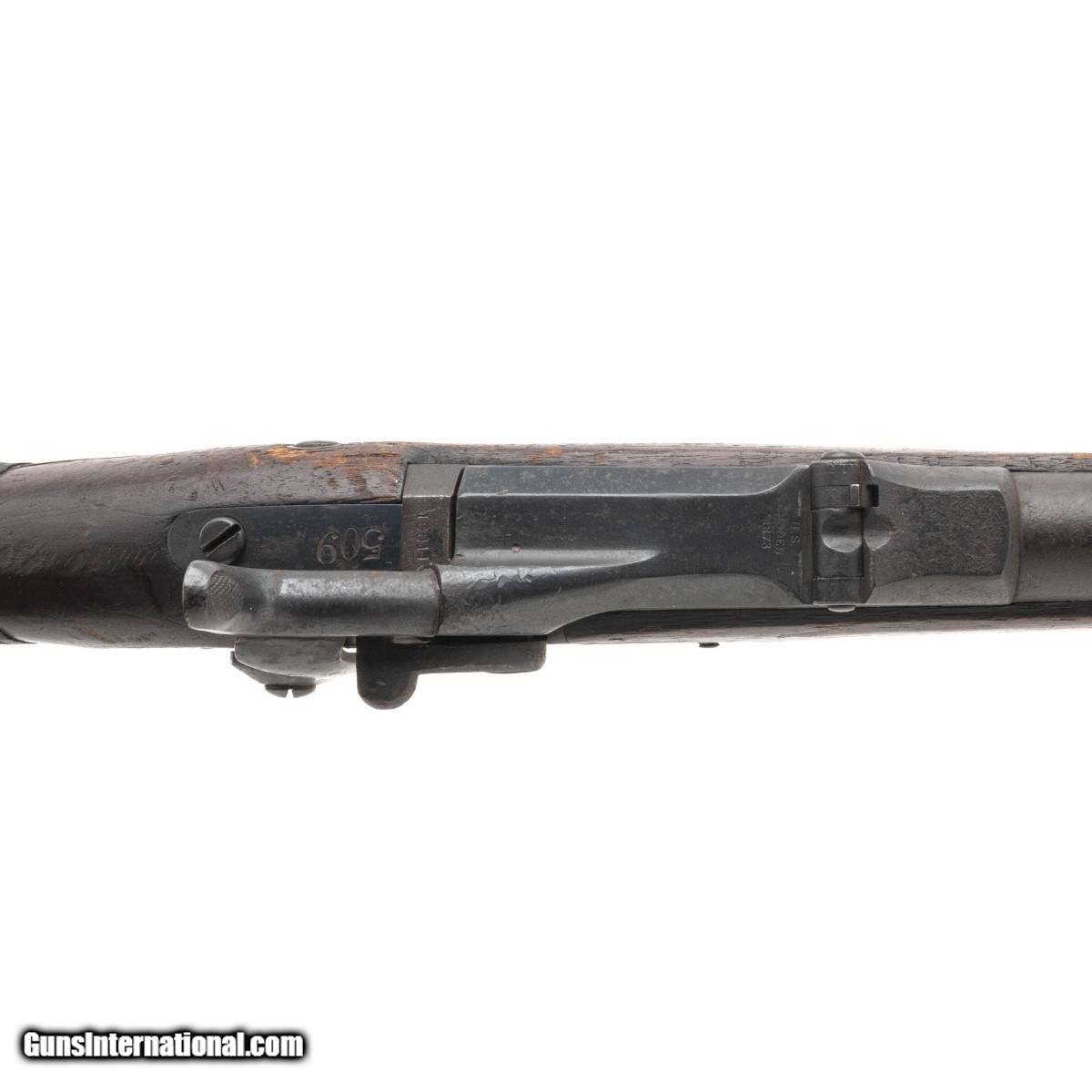 Description: " Serial No. 100112, made in 1878, .45-70, 23.5"" round proofed barrel. Barrel has been cut down, bore is good with scattered areas of pitting visible. Rifling is present and remains strong. Metal is a dark brown patina with surface oxidation visible throughout. Stock has heavy wear with the wrist wrapped due to a possible severe crack. Action does function correctly. Consignment SOLD Antique: Yes |